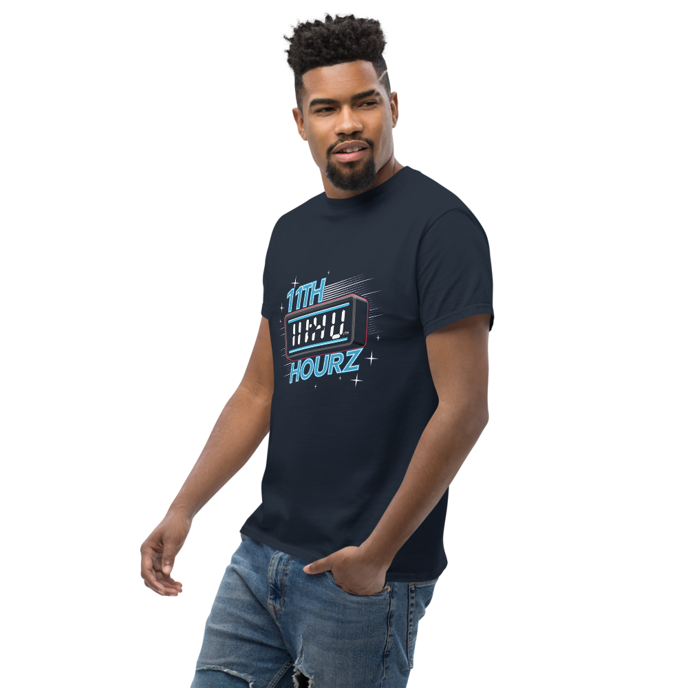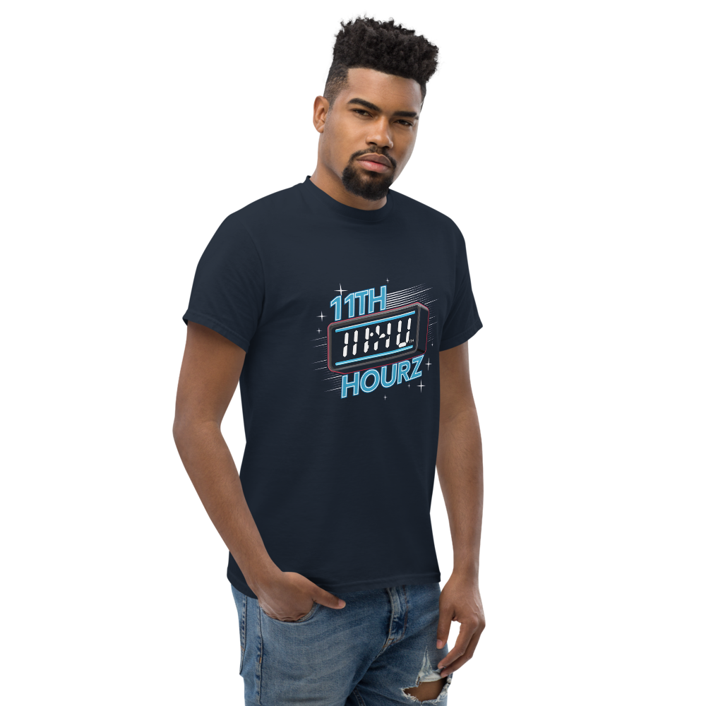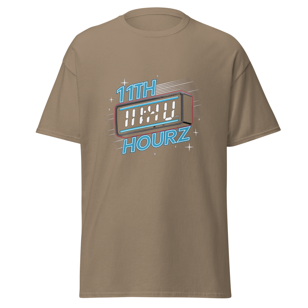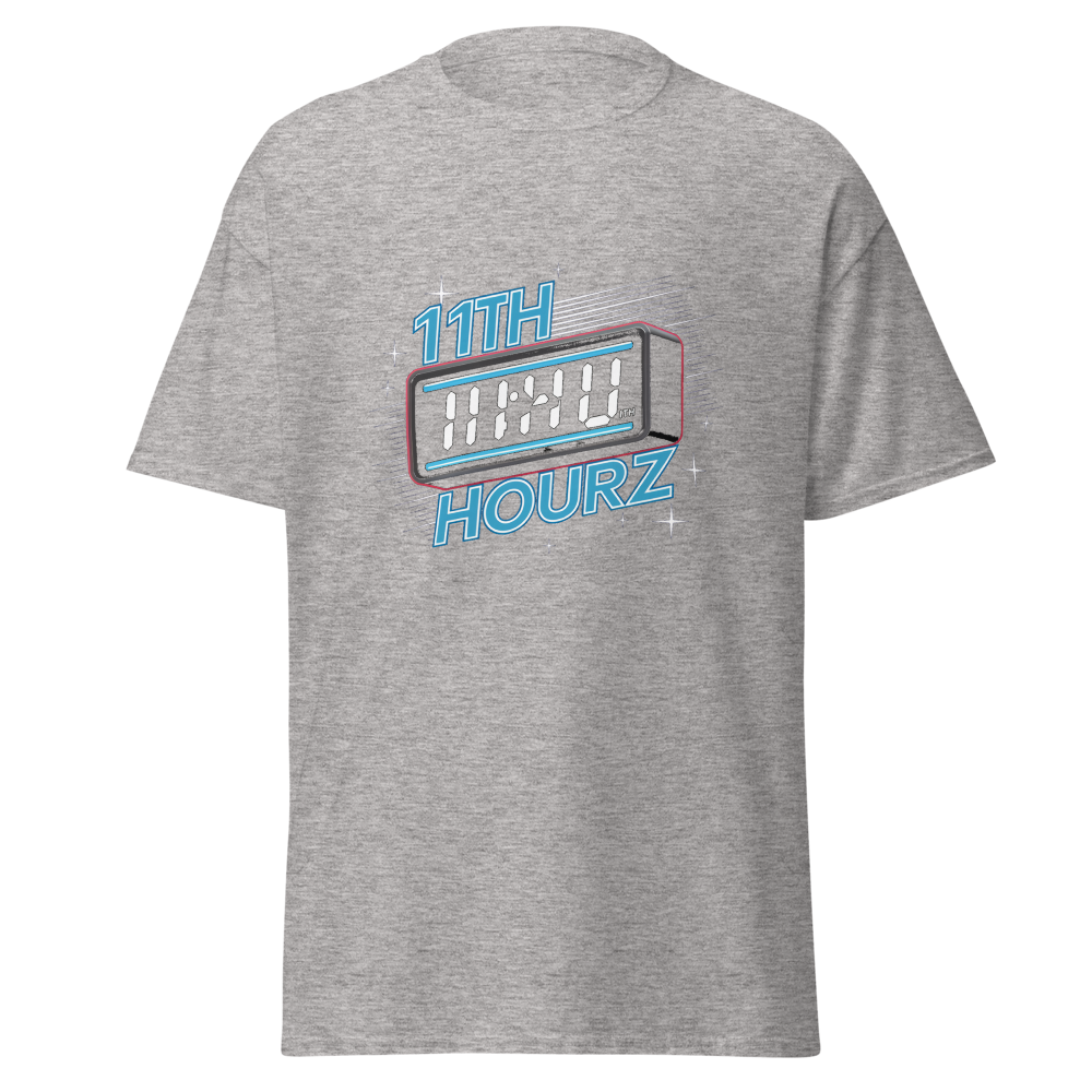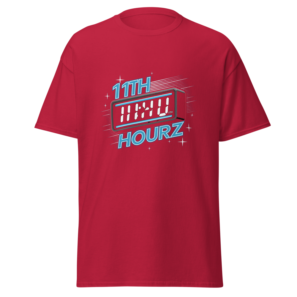A cool blend of nostalgia and modern flair, this t-shirt features a classic digital clock showing 11:00 with a neon glow. The starry background and retro alarm bells complete the vintage vibe, perfect for old school sports fans.This t-shirt is everything you’ve dreamed of and more. It feels soft and lightweight, with the right amount of stretch. It’s comfortable and flattering for all. 100% combed and ring-spun cotton (Heather colors contain polyester) Fabric weight: 4.2 oz./yd.² (142 g/m²) Pre-shrunk fabric Side-seamed construction Shoulder-to-shoulder taping