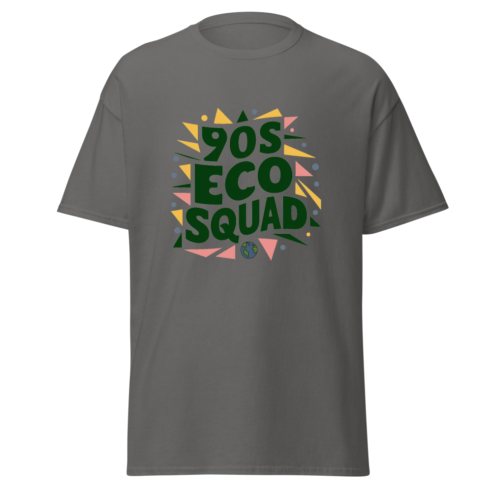 Embrace retro vibes with our 90s Eco Squad tee! This shirt features cool geometric shapes and a small Earth icon that show off your eco-friendly spirit in style. Perfect for any environmentally conscious adult who loves a nostalgic touch.This t-shirt is everything you’ve dreamed of and more. It feels soft and lightweight, with the right amount of stretch. It’s comfortable and flattering for all. 100% combed and ring-spun cotton (Heather colors contain polyester) Fabric weight: 4.2 oz./yd.² (142 g/m²) Pre-shrunk fabric Side-seamed construction Shoulder-to-shoulder taping