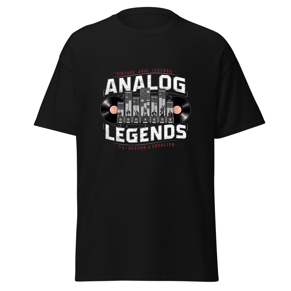 Rock your love for vintage vibes with this tee featuring a classic analog equalizer flanked by vinyl records. Perfect for music enthusiasts who cherish legendary rock icons and the golden age of analog sound.This t-shirt is everything you’ve dreamed of and more. It feels soft and lightweight, with the right amount of stretch. It’s comfortable and flattering for all. 100% combed and ring-spun cotton (Heather colors contain polyester) Fabric weight: 4.2 oz./yd.² (142 g/m²) Pre-shrunk fabric Side-seamed construction Shoulder-to-shoulder taping