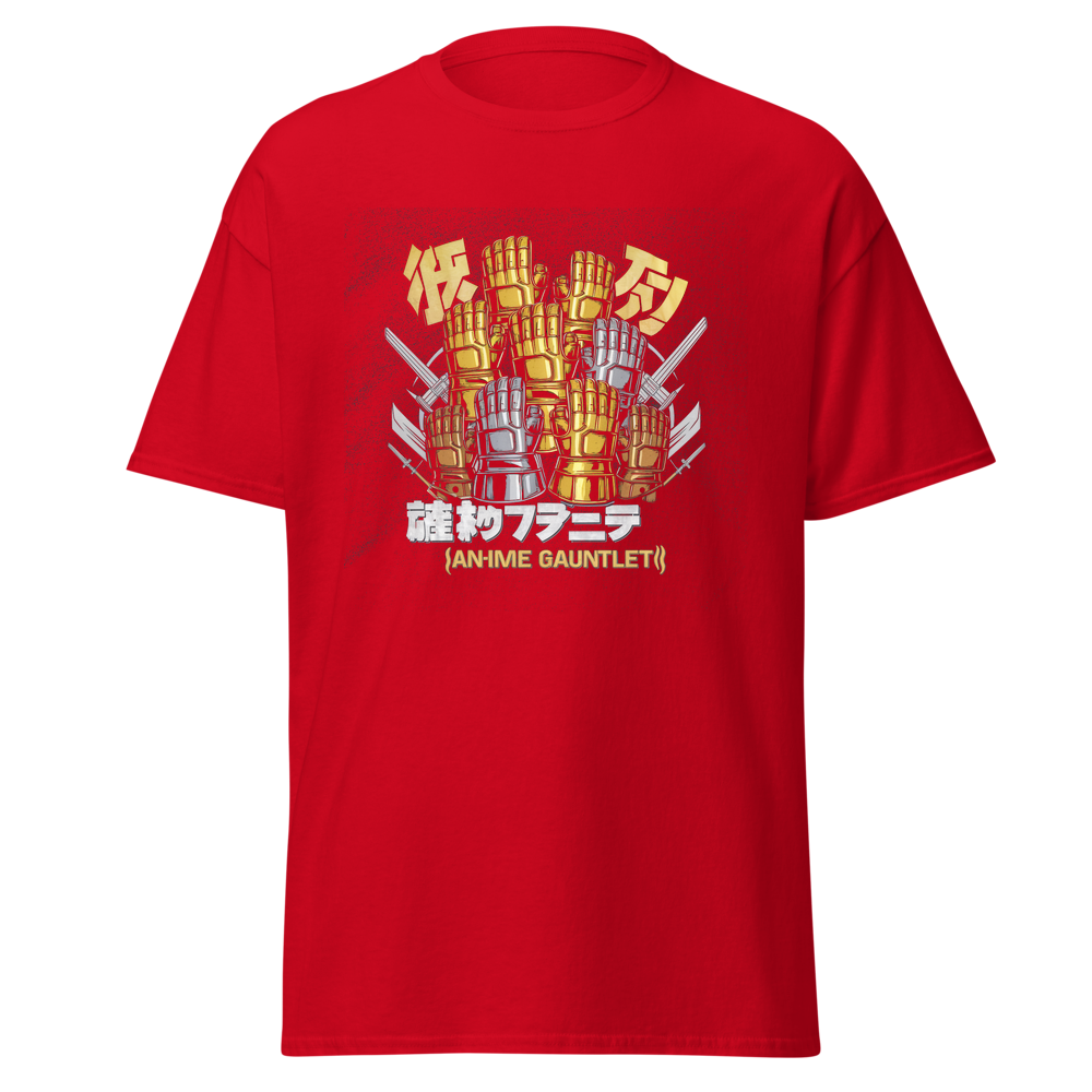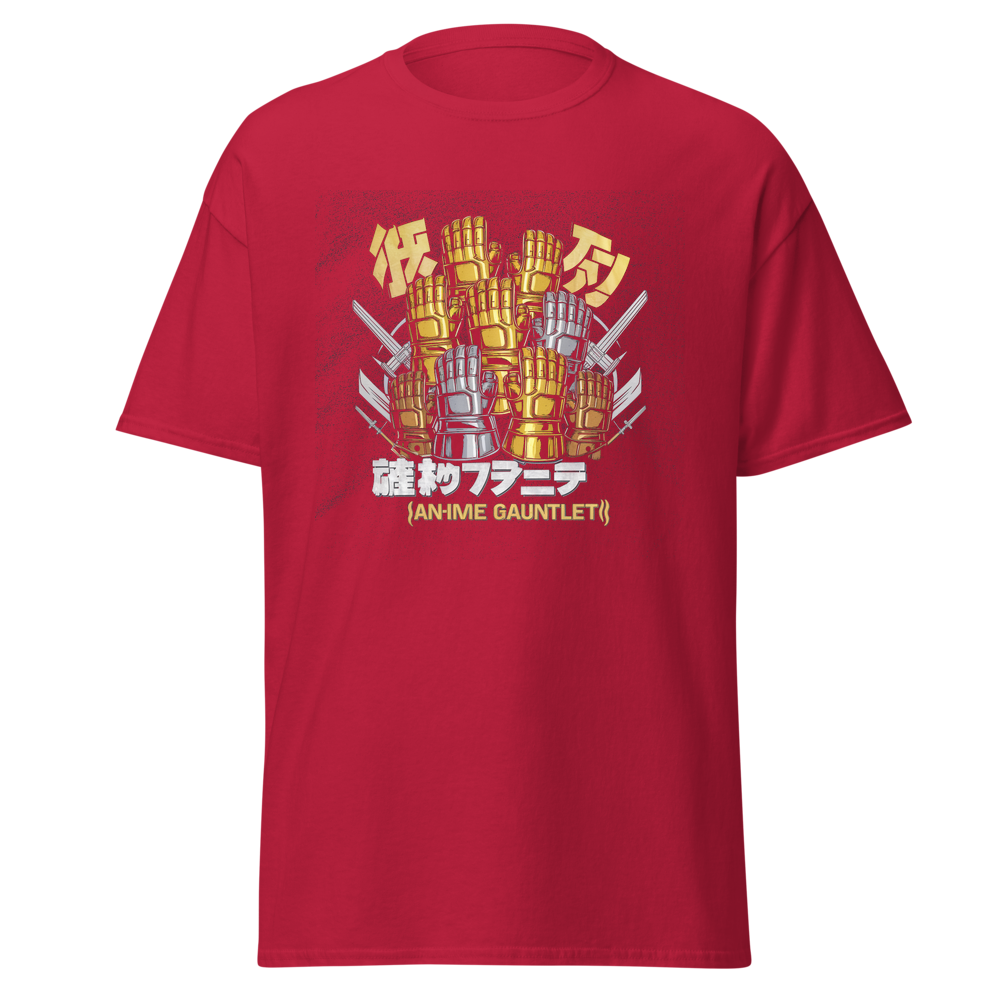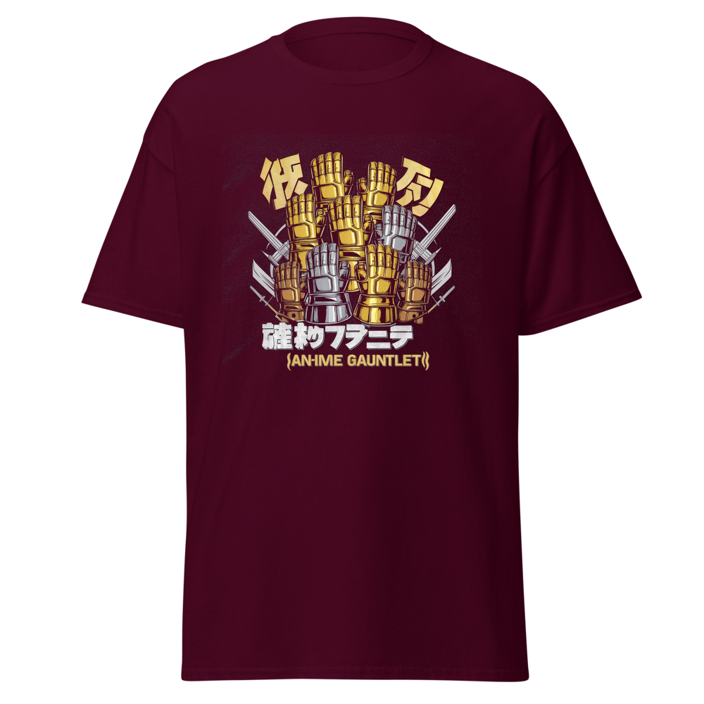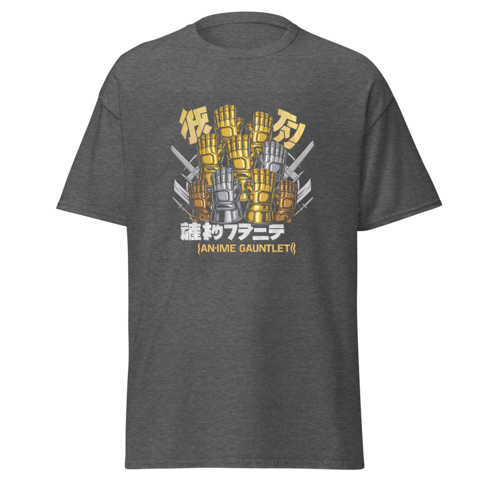 Dive into nostalgia with this vibrant tee featuring a collection of anime-inspired gauntlets and weapons. Perfect for fans of 90s heroes and classic anime action.This t-shirt is everything you’ve dreamed of and more. It feels soft and lightweight, with the right amount of stretch. It’s comfortable and flattering for all. 100% combed and ring-spun cotton (Heather colors contain polyester) Fabric weight: 4.2 oz./yd.² (142 g/m²) Pre-shrunk fabric Side-seamed construction Shoulder-to-shoulder taping
