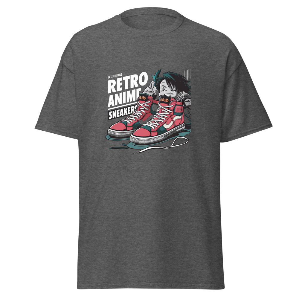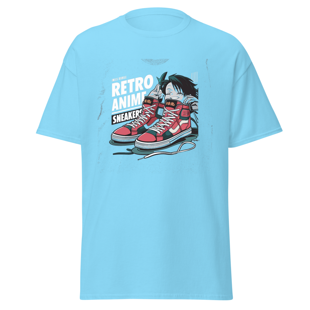 Dive into nostalgia with this awesome design featuring a cool anime character rocking vintage sneakers. Perfect for anime and manga fans, this tee is a great blend of stylish and retro vibes.This t-shirt is everything you’ve dreamed of and more. It feels soft and lightweight, with the right amount of stretch. It’s comfortable and flattering for all. 100% combed and ring-spun cotton (Heather colors contain polyester) Fabric weight: 4.2 oz./yd.² (142 g/m²) Pre-shrunk fabric Side-seamed construction Shoulder-to-shoulder taping