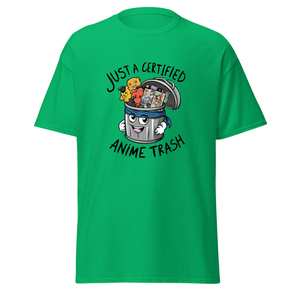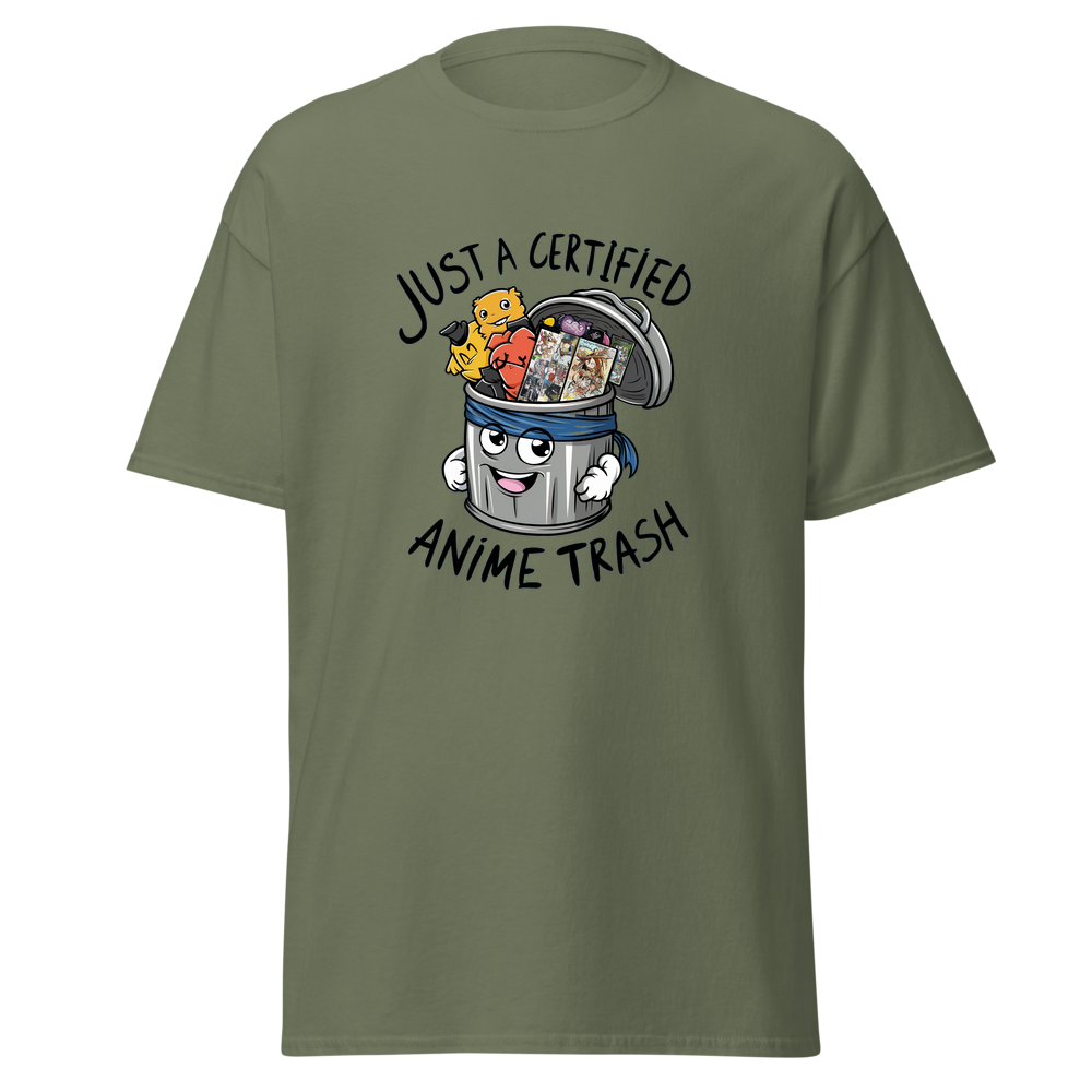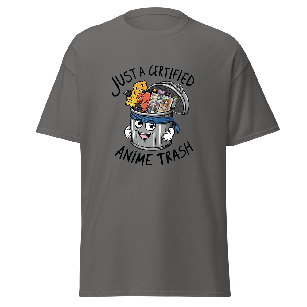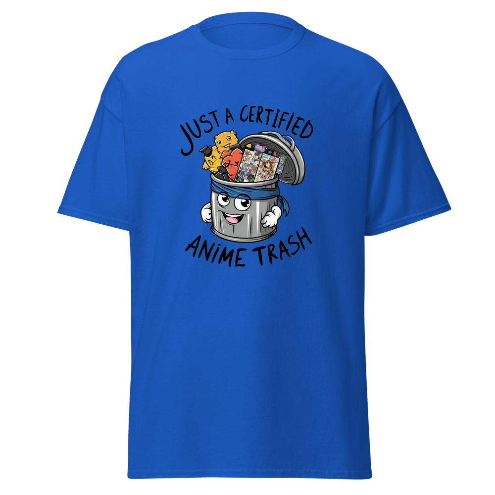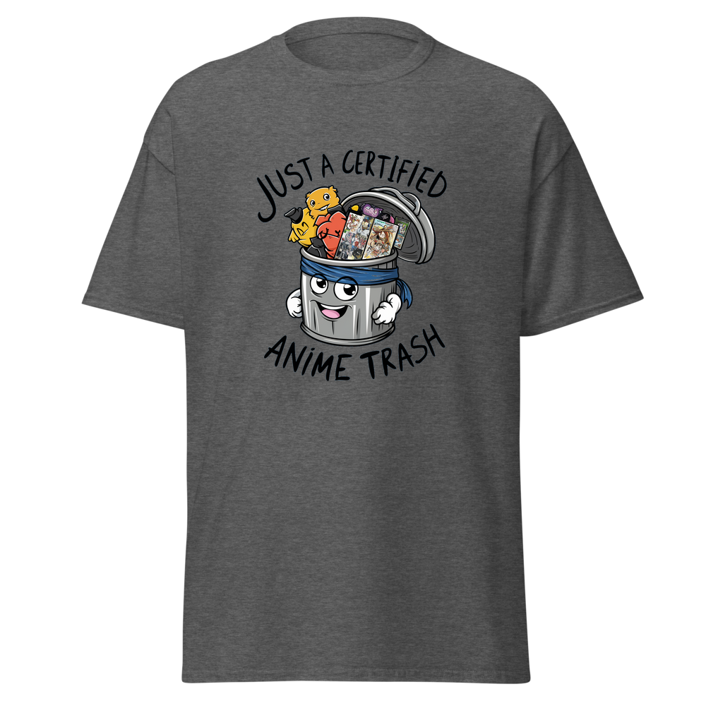 Show off your anime pride with this fun t-shirt featuring a cute trash can mascot, half-open to reveal a stash of anime posters and plushies inside. Perfect for any teen anime fan!This t-shirt is everything you’ve dreamed of and more. It feels soft and lightweight, with the right amount of stretch. It’s comfortable and flattering for all. 100% combed and ring-spun cotton (Heather colors contain polyester) Fabric weight: 4.2 oz./yd.² (142 g/m²) Pre-shrunk fabric Side-seamed construction Shoulder-to-shoulder taping