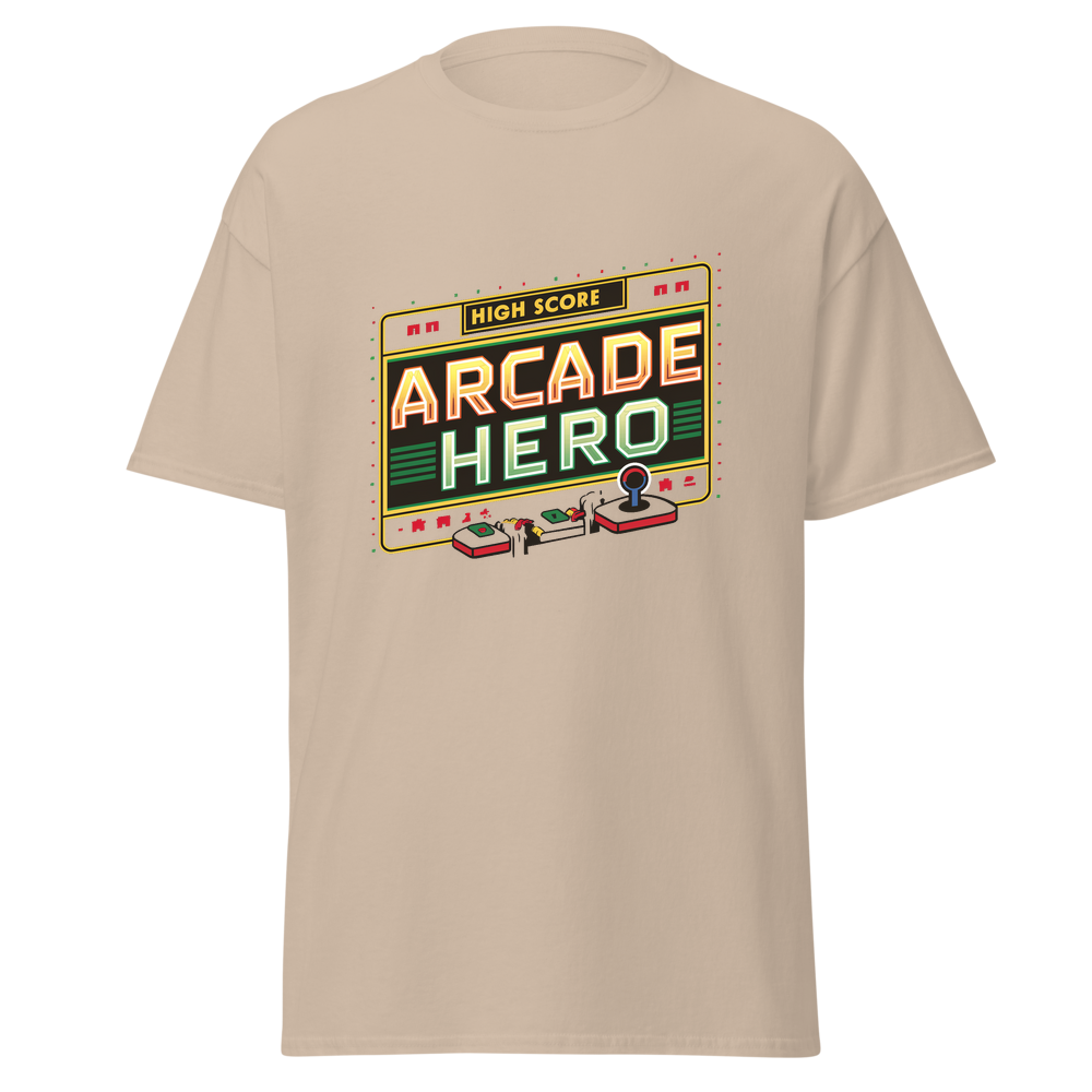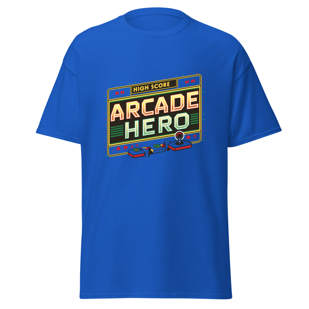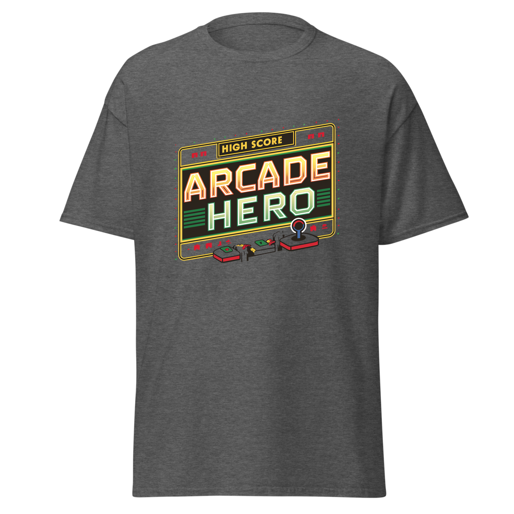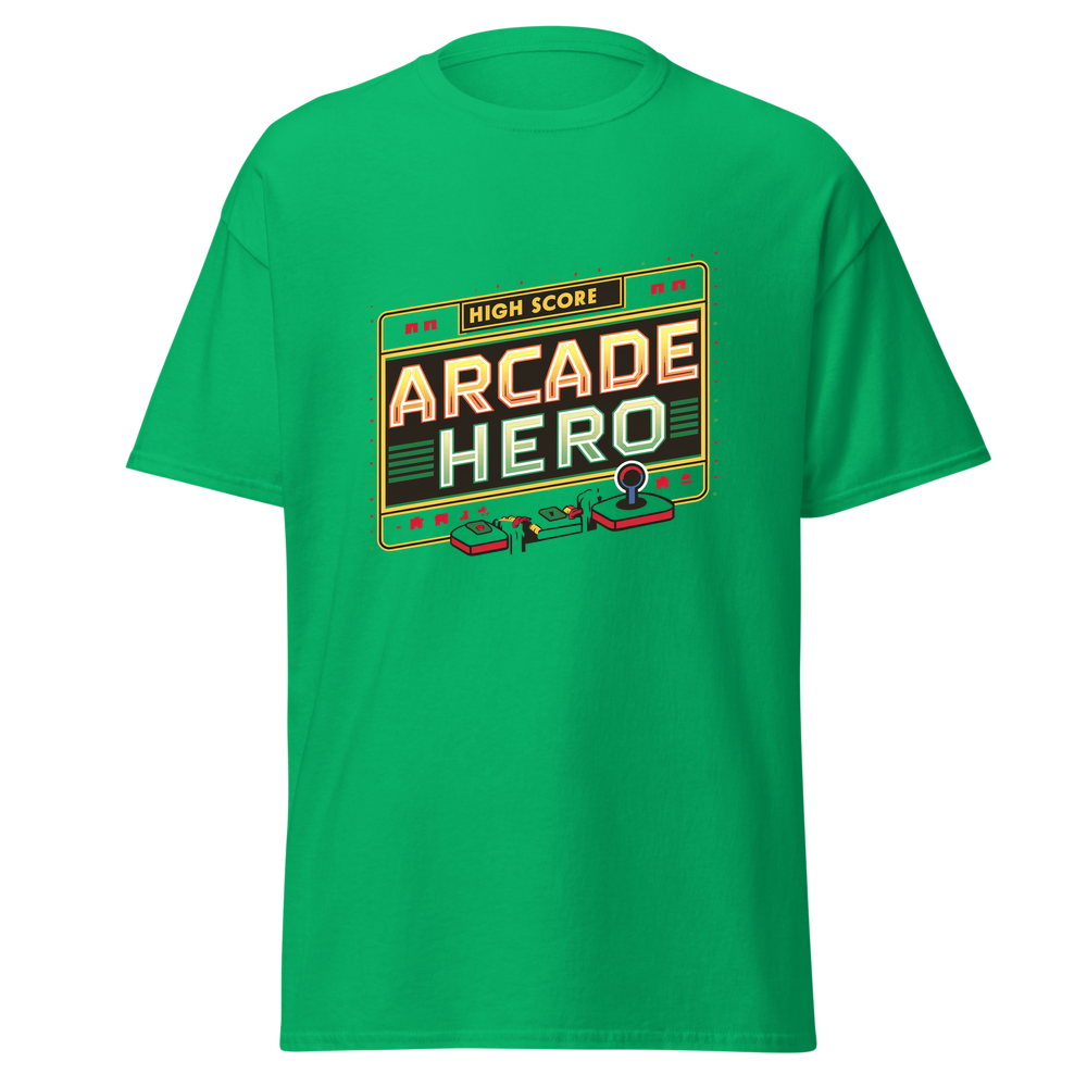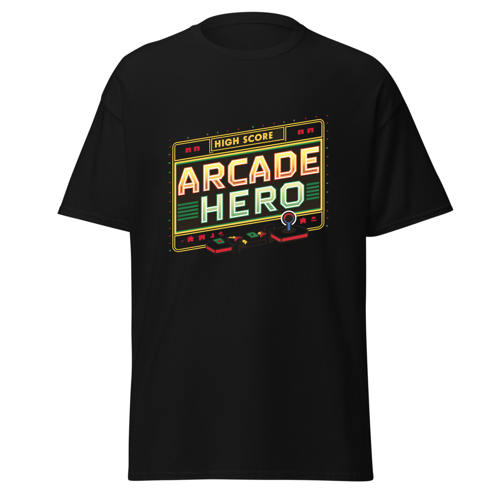 Celebrate your love for retro gaming with this vibrant design! Featuring a pixelated high score screen, colorful “Arcade Hero” banner, and classic gaming elements like a joystick and button-tapping hands, this shirt is a perfect fit for any nostalgic gamer.This t-shirt is everything you’ve dreamed of and more. It feels soft and lightweight, with the right amount of stretch. It’s comfortable and flattering for all. 100% combed and ring-spun cotton (Heather colors contain polyester) Fabric weight: 4.2 oz./yd.² (142 g/m²) Pre-shrunk fabric Side-seamed construction Shoulder-to-shoulder taping