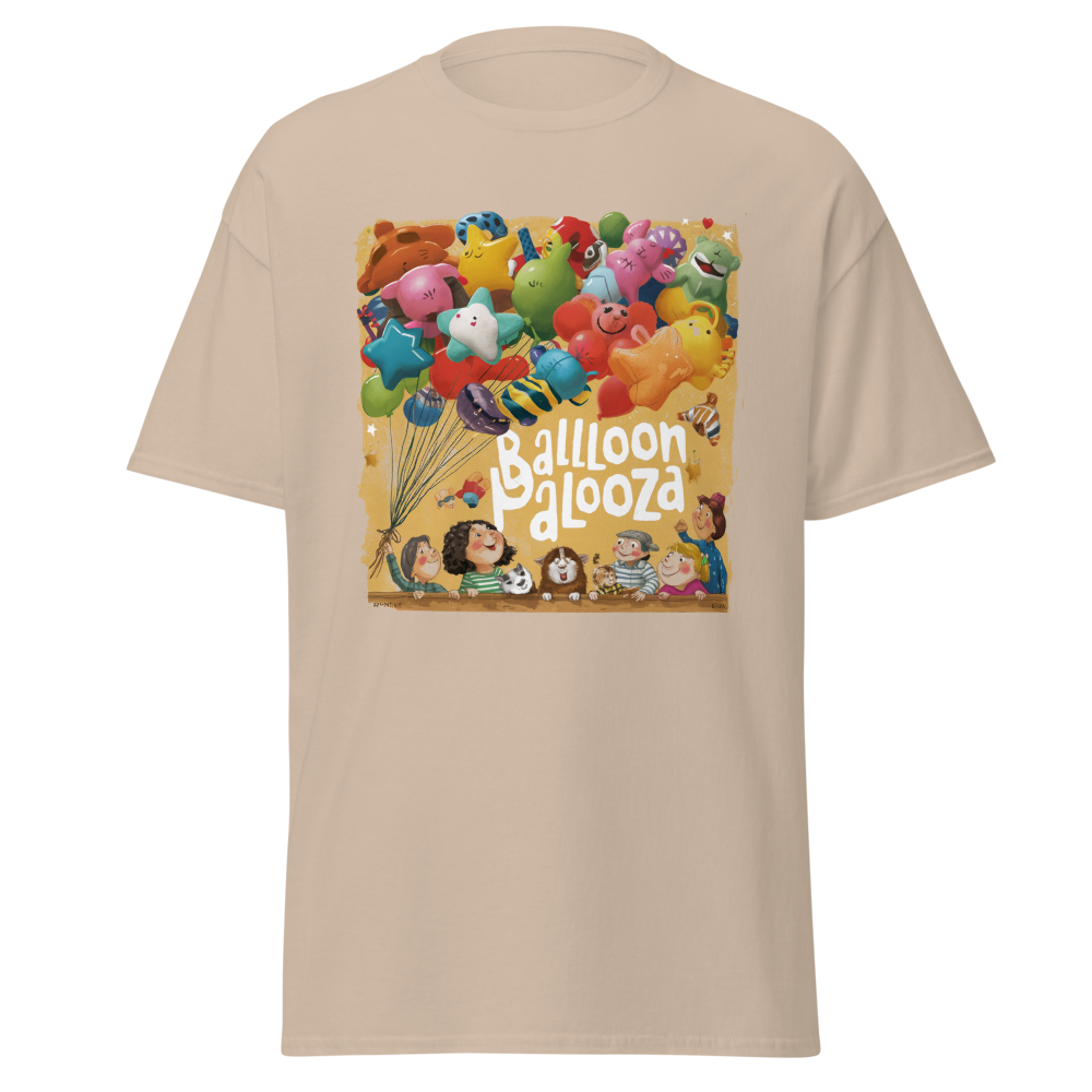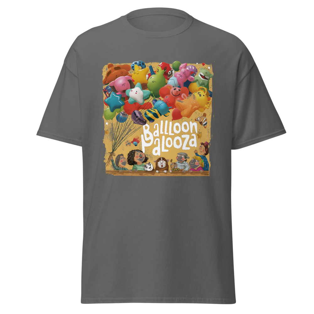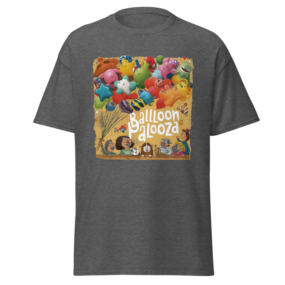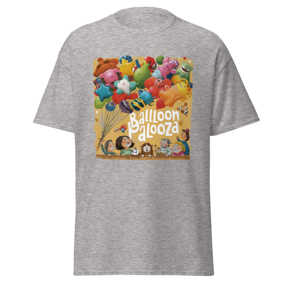 Brighten up your day with a fun scene of colorful balloons in playful shapes like animals, stars, and hearts, all floating up into the sky. Happy kids and cute animals gaze up in wonder, adding a touch of joy to this cheerful design. Perfect for anyone who loves a bit of whimsy!This t-shirt is everything you’ve dreamed of and more. It feels soft and lightweight, with the right amount of stretch. It’s comfortable and flattering for all. 100% combed and ring-spun cotton (Heather colors contain polyester) Fabric weight: 4.2 oz./yd.² (142 g/m²) Pre-shrunk fabric Side-seamed construction Shoulder-to-shoulder taping