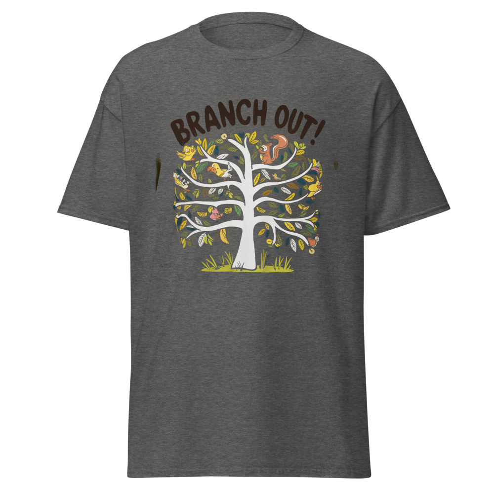 This fun and playful t-shirt features a cartoon tree with branches extending out, each showcasing a different nature element like a bird, squirrel, and leaf. Perfect for kids and nature lovers, this design is both cute and adventurous.This t-shirt is everything you’ve dreamed of and more. It feels soft and lightweight, with the right amount of stretch. It’s comfortable and flattering for all. 100% combed and ring-spun cotton (Heather colors contain polyester) Fabric weight: 4.2 oz./yd.² (142 g/m²) Pre-shrunk fabric Side-seamed construction Shoulder-to-shoulder taping
