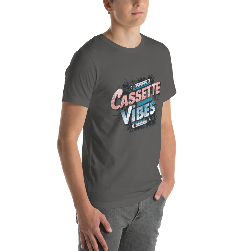 Vintage cassette tapes and a classic walkman take center stage in this retro-inspired design. Perfect for adults and toy collectors, this tee brings back the nostalgic vibes of epic mixtapes and iconic playlists.This t-shirt is everything you’ve dreamed of and more. It feels soft and lightweight, with the right amount of stretch. It’s comfortable and flattering for all. 100% combed and ring-spun cotton (Heather colors contain polyester) Fabric weight: 4.2 oz./yd.² (142 g/m²) Pre-shrunk fabric Side-seamed construction Shoulder-to-shoulder taping
