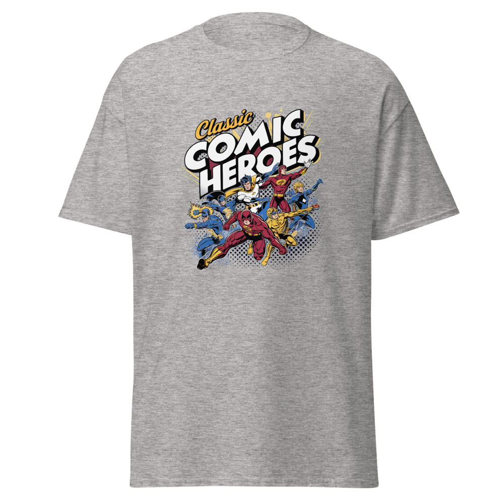Featuring a throwback design with iconic 90s comic book heroes in action, this tee offers a bold retro vibe. The dynamic background and distressed look make it a must-have for any comic book fan.This t-shirt is everything you’ve dreamed of and more. It feels soft and lightweight, with the right amount of stretch. It’s comfortable and flattering for all. 100% combed and ring-spun cotton (Heather colors contain polyester) Fabric weight: 4.2 oz./yd.² (142 g/m²) Pre-shrunk fabric Side-seamed construction Shoulder-to-shoulder taping