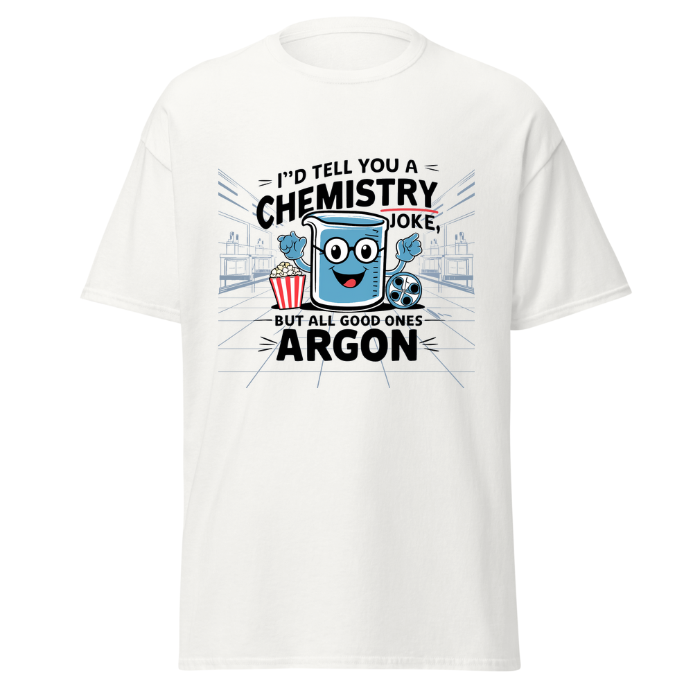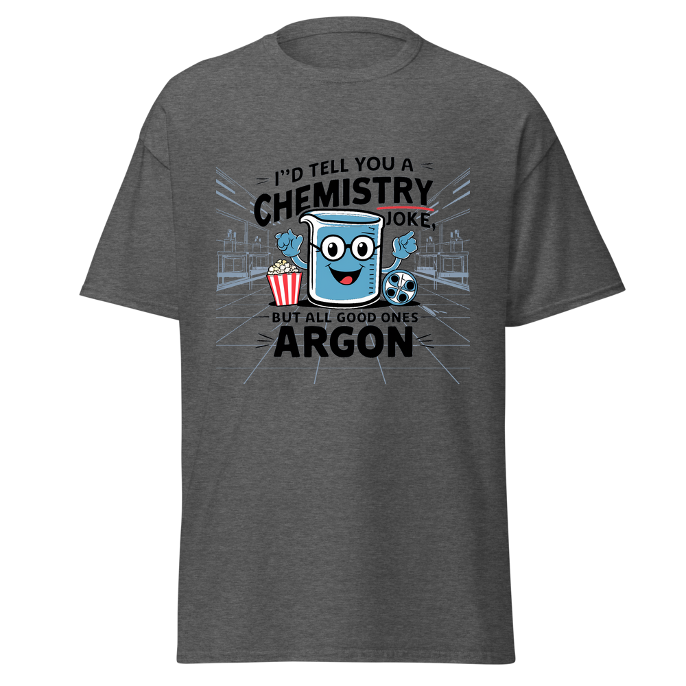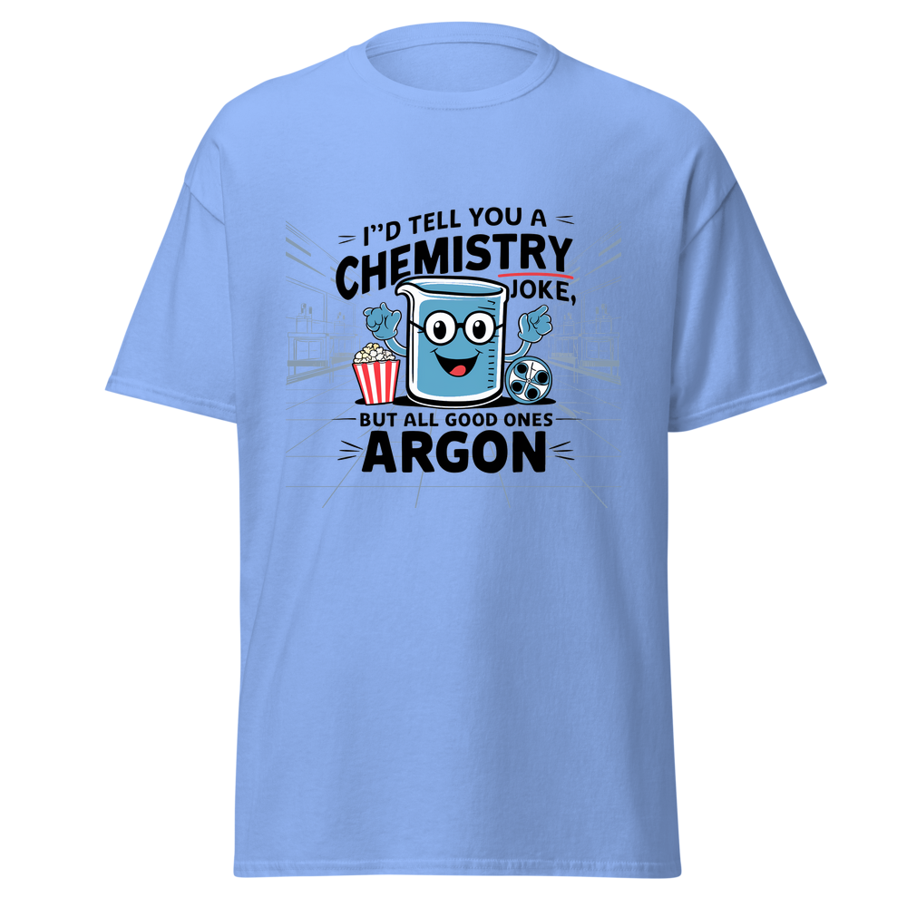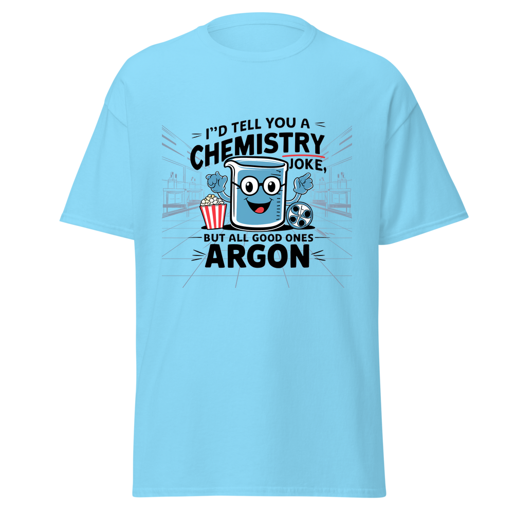 This quirky t-shirt features a cheerful cartoon chemistry beaker surrounded by popcorn and a movie reel. Perfect for movie buffs who love a good laugh and a touch of science!This t-shirt is everything you’ve dreamed of and more. It feels soft and lightweight, with the right amount of stretch. It’s comfortable and flattering for all. 100% combed and ring-spun cotton (Heather colors contain polyester) Fabric weight: 4.2 oz./yd.² (142 g/m²) Pre-shrunk fabric Side-seamed construction Shoulder-to-shoulder taping