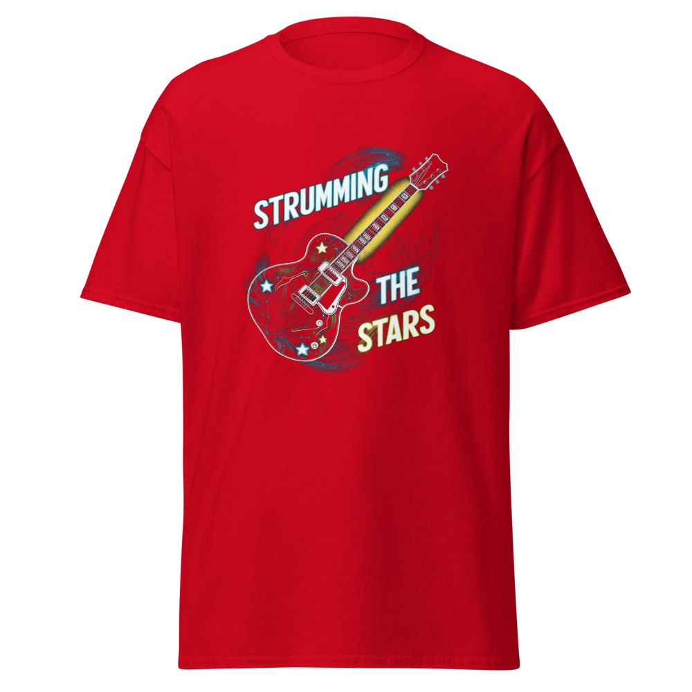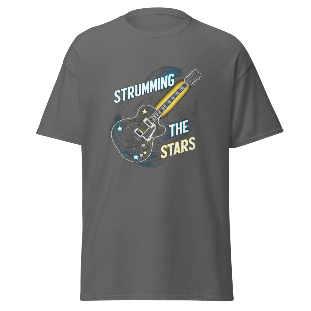 This t-shirt features an abstract guitar with stars as frets, set against a dreamy space pattern. Perfect for anyone who loves music and the cosmos, it’s a unique blend of creativity and cosmic vibes. Ideal for teens and science fiction fans.This t-shirt is everything you’ve dreamed of and more. It feels soft and lightweight, with the right amount of stretch. It’s comfortable and flattering for all. 100% combed and ring-spun cotton (Heather colors contain polyester) Fabric weight: 4.2 oz./yd.² (142 g/m²) Pre-shrunk fabric Side-seamed construction Shoulder-to-shoulder taping