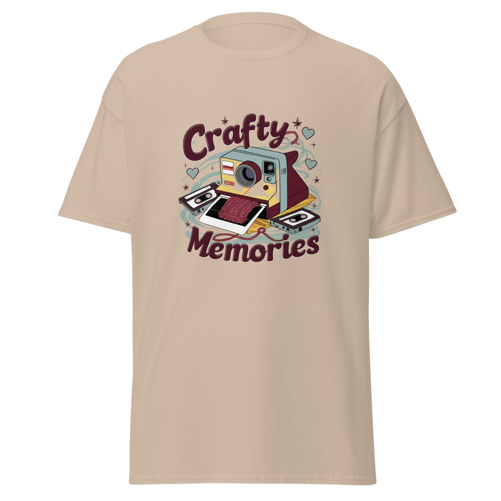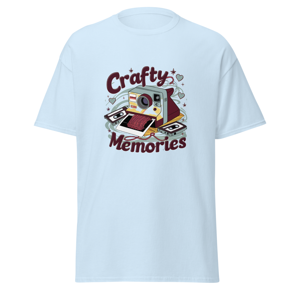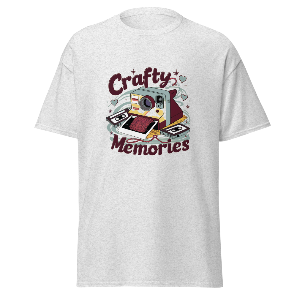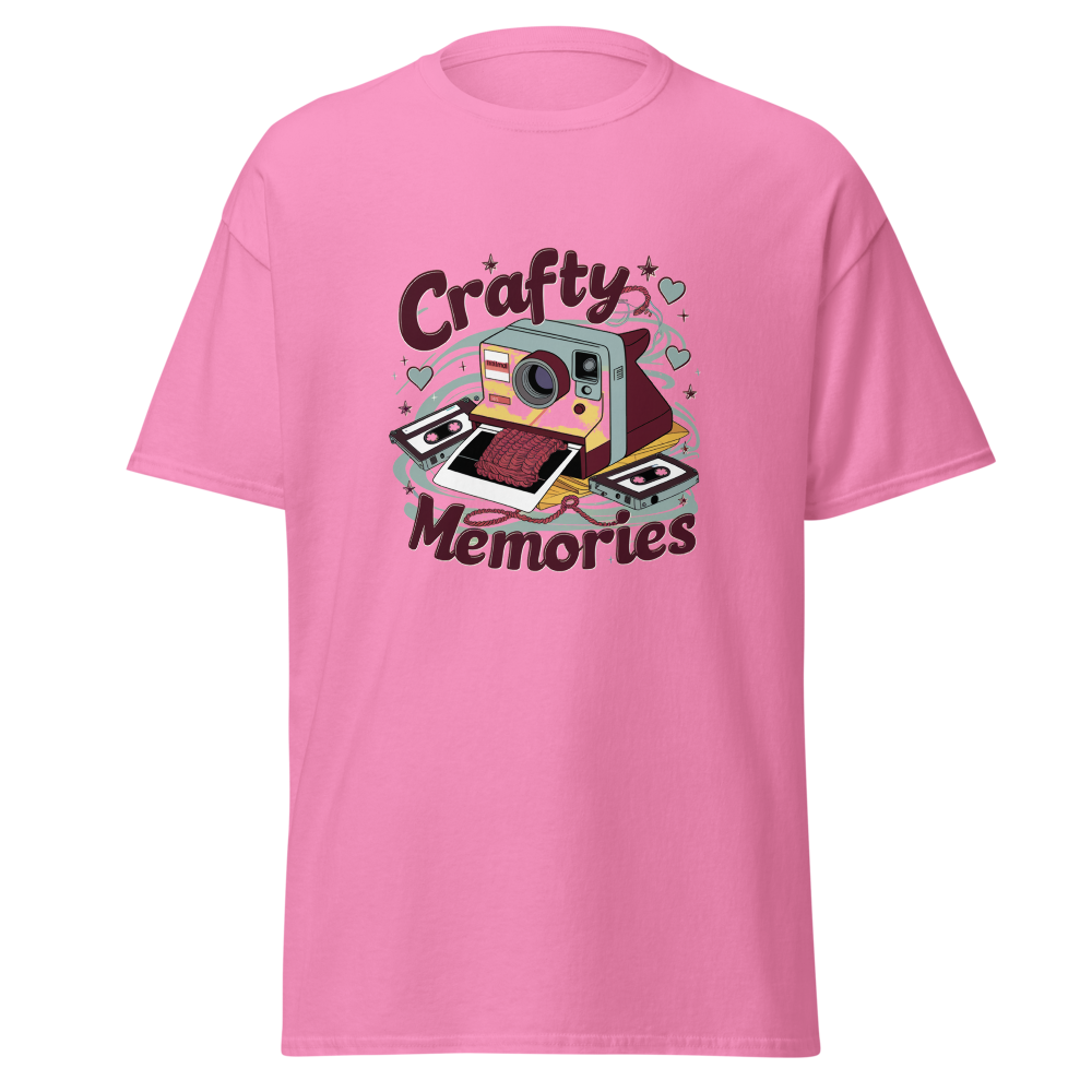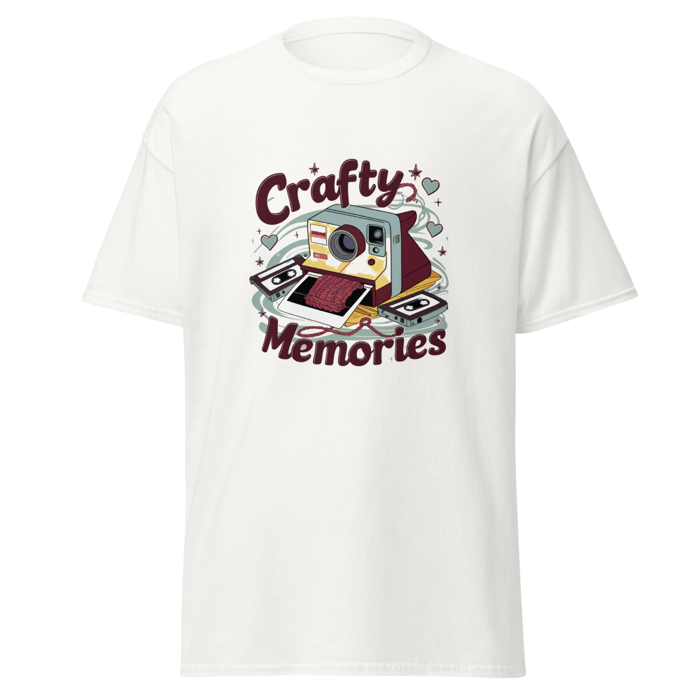 Relive the good old days with this charming design featuring a vintage Polaroid camera snapping out knitted yarn pictures. Surrounded by nostalgic cassette tapes and playful 90s-style stars and hearts, this shirt is perfect for crafty souls who love to mix a bit of retro with their knitting or crocheting passions.This t-shirt is everything you’ve dreamed of and more. It feels soft and lightweight, with the right amount of stretch. It’s comfortable and flattering for all. 100% combed and ring-spun cotton (Heather colors contain polyester) Fabric weight: 4.2 oz./yd.² (142 g/m²) Pre-shrunk fabric Side-seamed construction Shoulder-to-shoulder taping