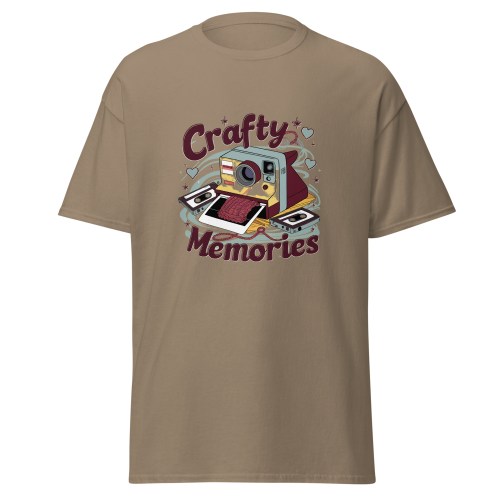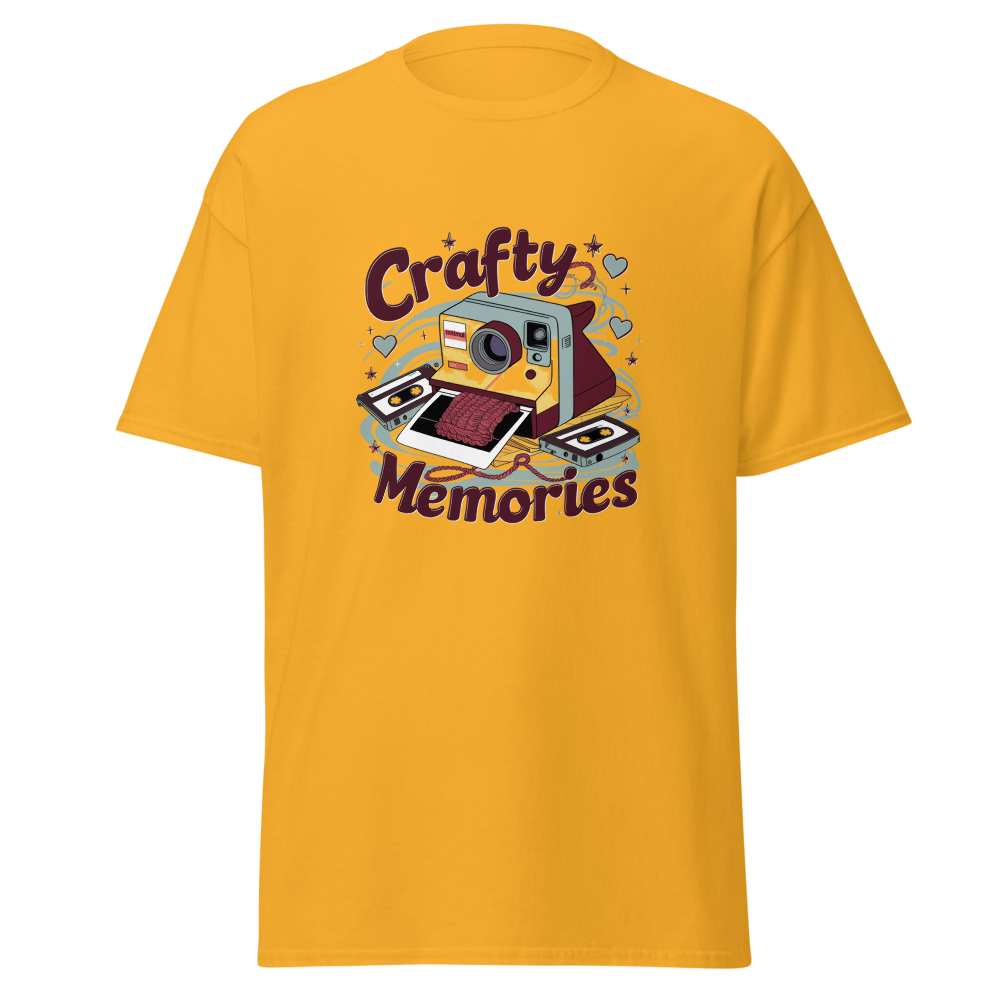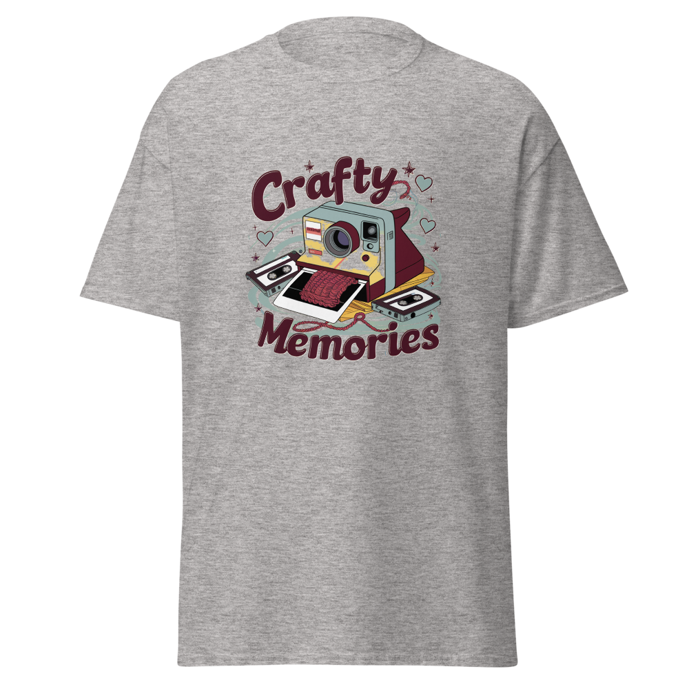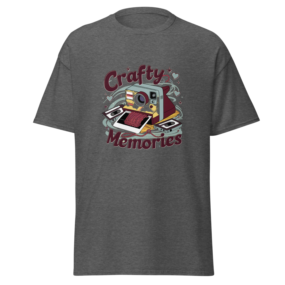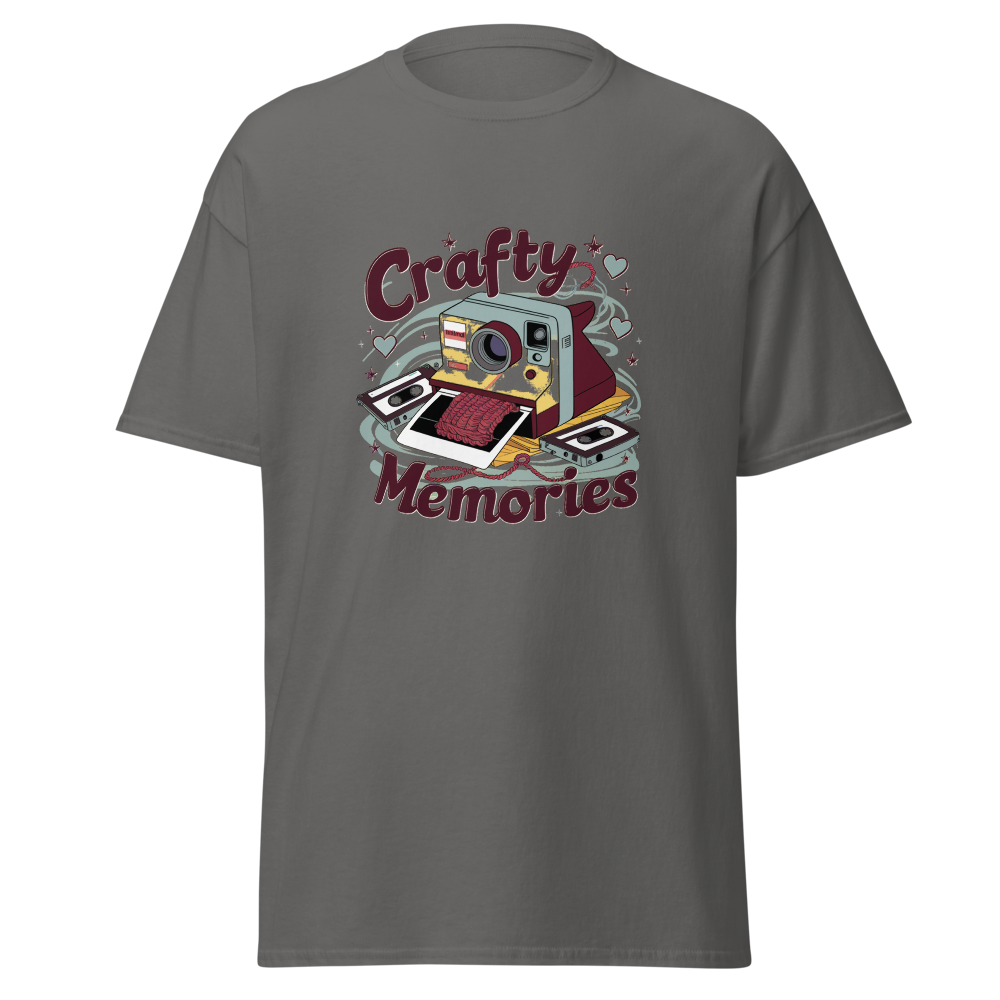 Relive the good old days with this charming design featuring a vintage Polaroid camera snapping out knitted yarn pictures. Surrounded by nostalgic cassette tapes and playful 90s-style stars and hearts, this shirt is perfect for crafty souls who love to mix a bit of retro with their knitting or crocheting passions.This t-shirt is everything you’ve dreamed of and more. It feels soft and lightweight, with the right amount of stretch. It’s comfortable and flattering for all. 100% combed and ring-spun cotton (Heather colors contain polyester) Fabric weight: 4.2 oz./yd.² (142 g/m²) Pre-shrunk fabric Side-seamed construction Shoulder-to-shoulder taping