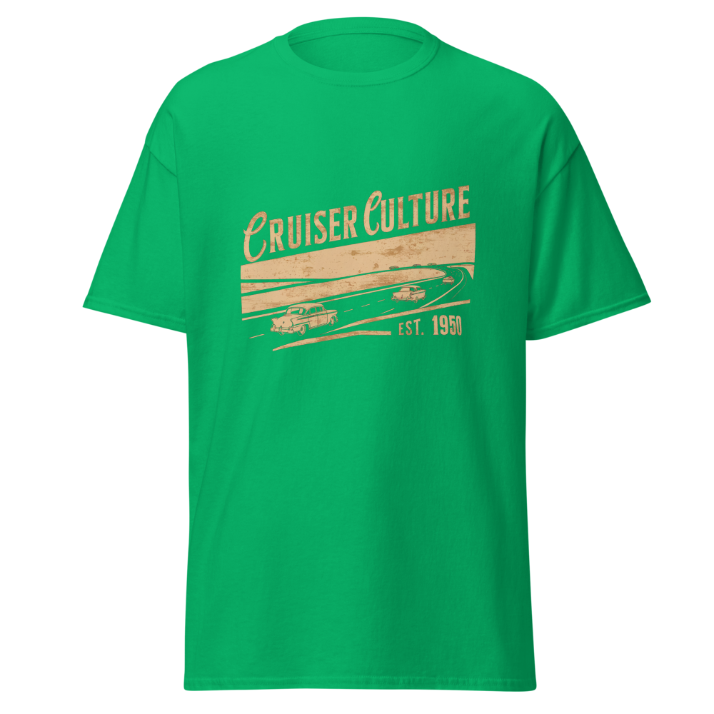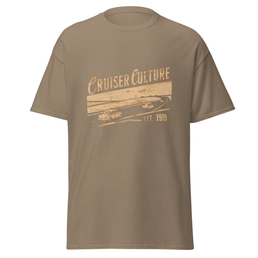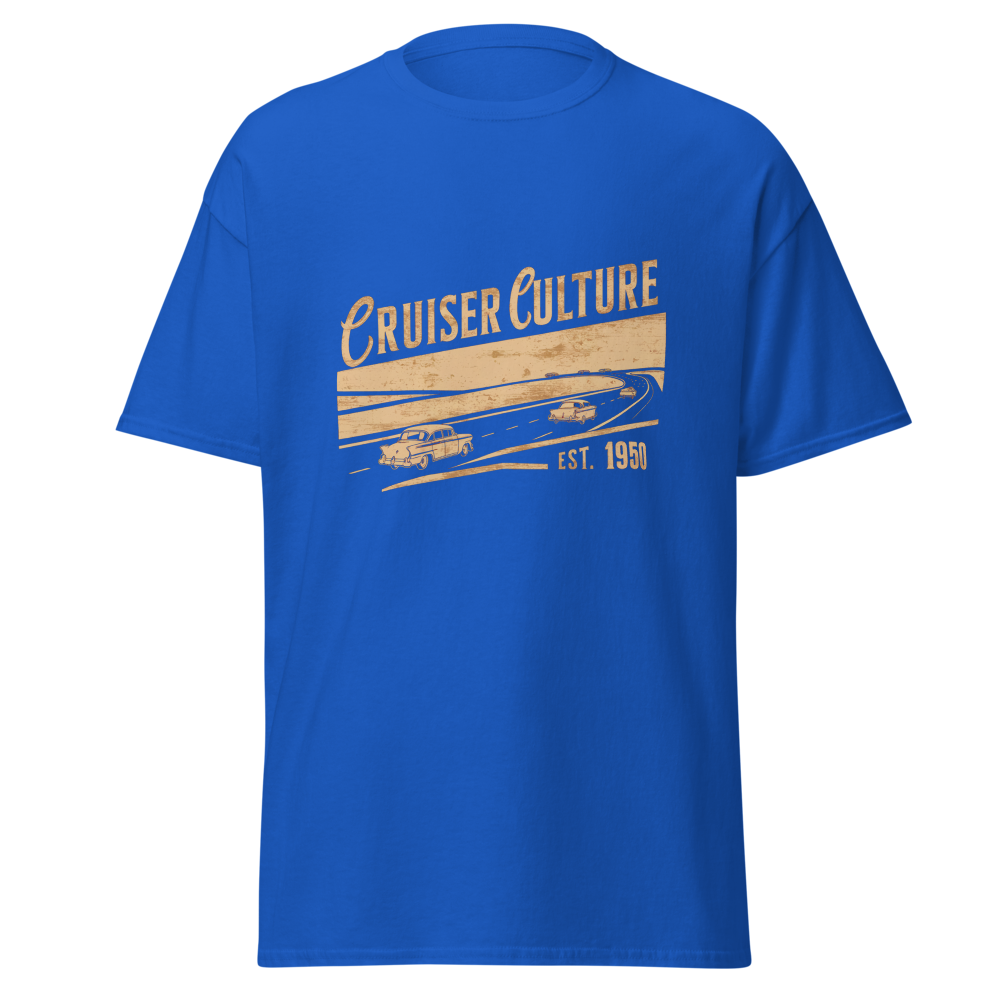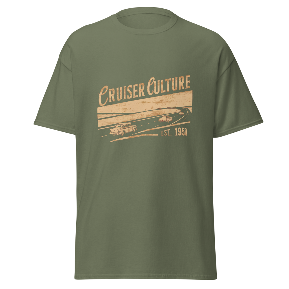 Embrace the spirit of the open road with this nostalgic tee. Featuring classic cars cruising down an open highway, the design has a slightly worn look for that perfect old-school vibe. Perfect for car enthusiasts and lovers of vintage Americana.This t-shirt is everything you’ve dreamed of and more. It feels soft and lightweight, with the right amount of stretch. It’s comfortable and flattering for all. 100% combed and ring-spun cotton (Heather colors contain polyester) Fabric weight: 4.2 oz./yd.² (142 g/m²) Pre-shrunk fabric Side-seamed construction Shoulder-to-shoulder taping