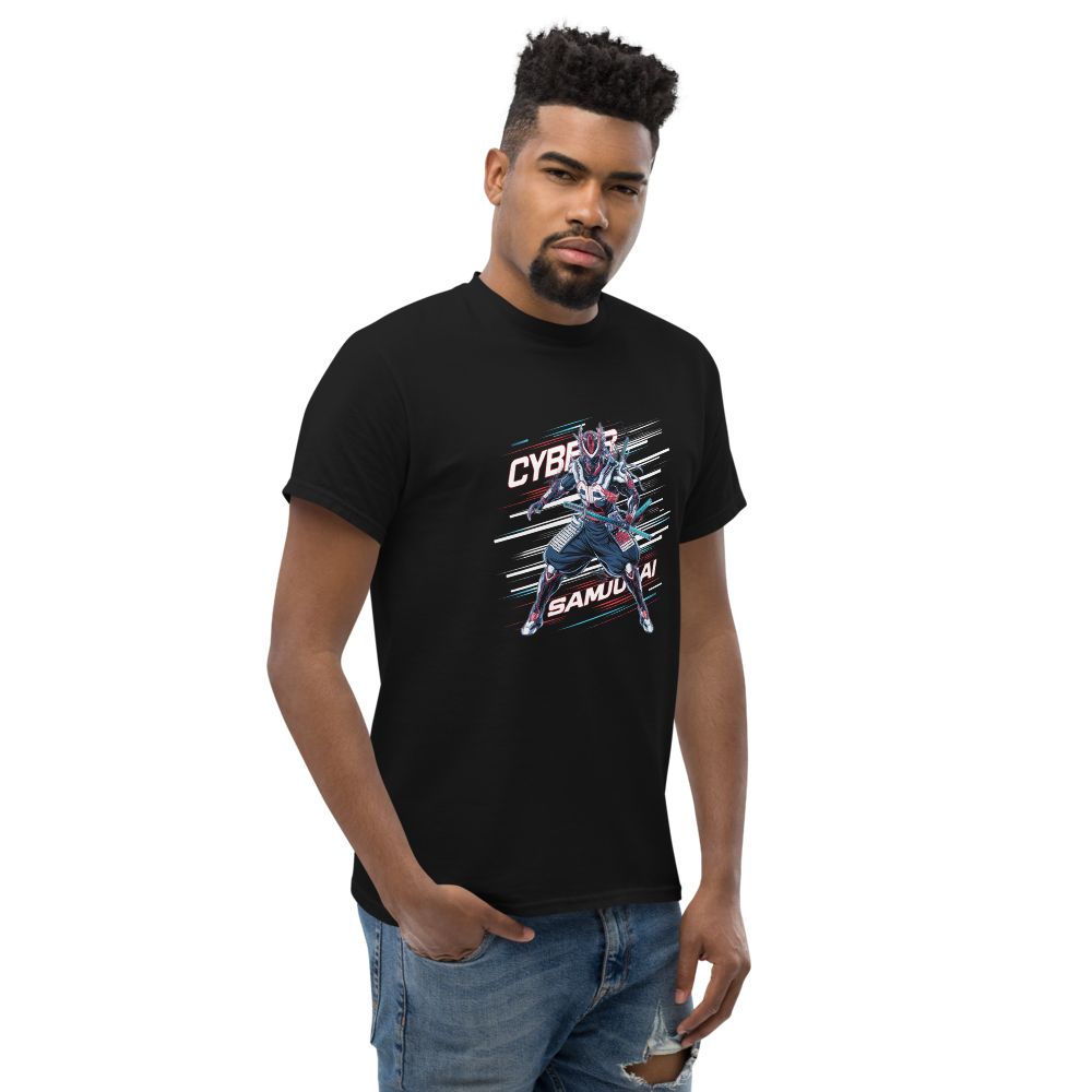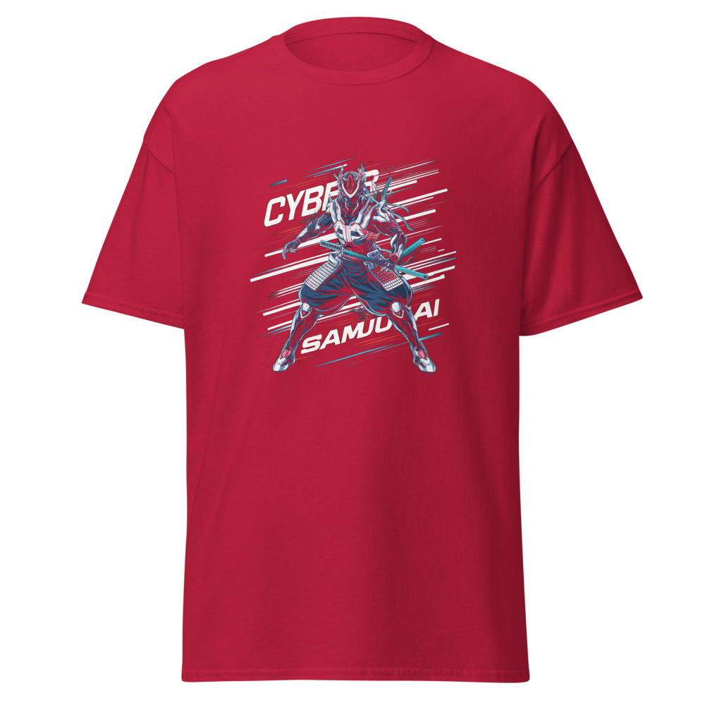 Step into the future with a daring cyber samurai warrior, combining the essence of traditional samurai with sleek, modern elements. This design radiates energy with comic book speed lines and a touch of anime flair, perfect for teens and comic book enthusiasts who want to stand out.This t-shirt is everything you’ve dreamed of and more. It feels soft and lightweight, with the right amount of stretch. It’s comfortable and flattering for all. 100% combed and ring-spun cotton (Heather colors contain polyester) Fabric weight: 4.2 oz./yd.² (142 g/m²) Pre-shrunk fabric Side-seamed construction Shoulder-to-shoulder taping