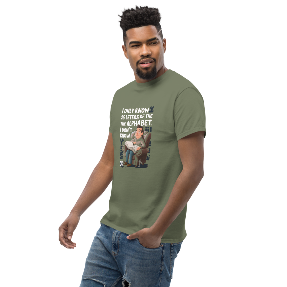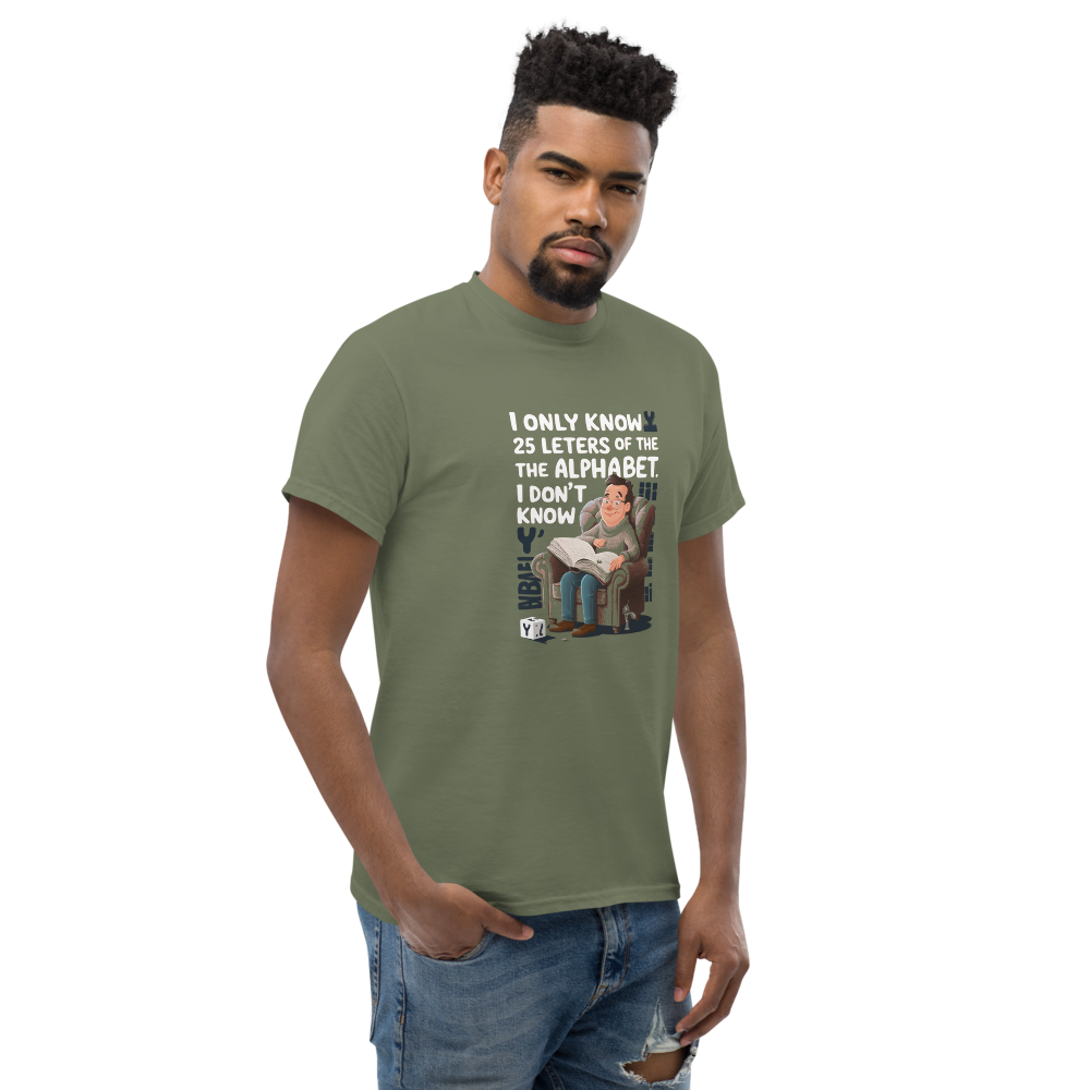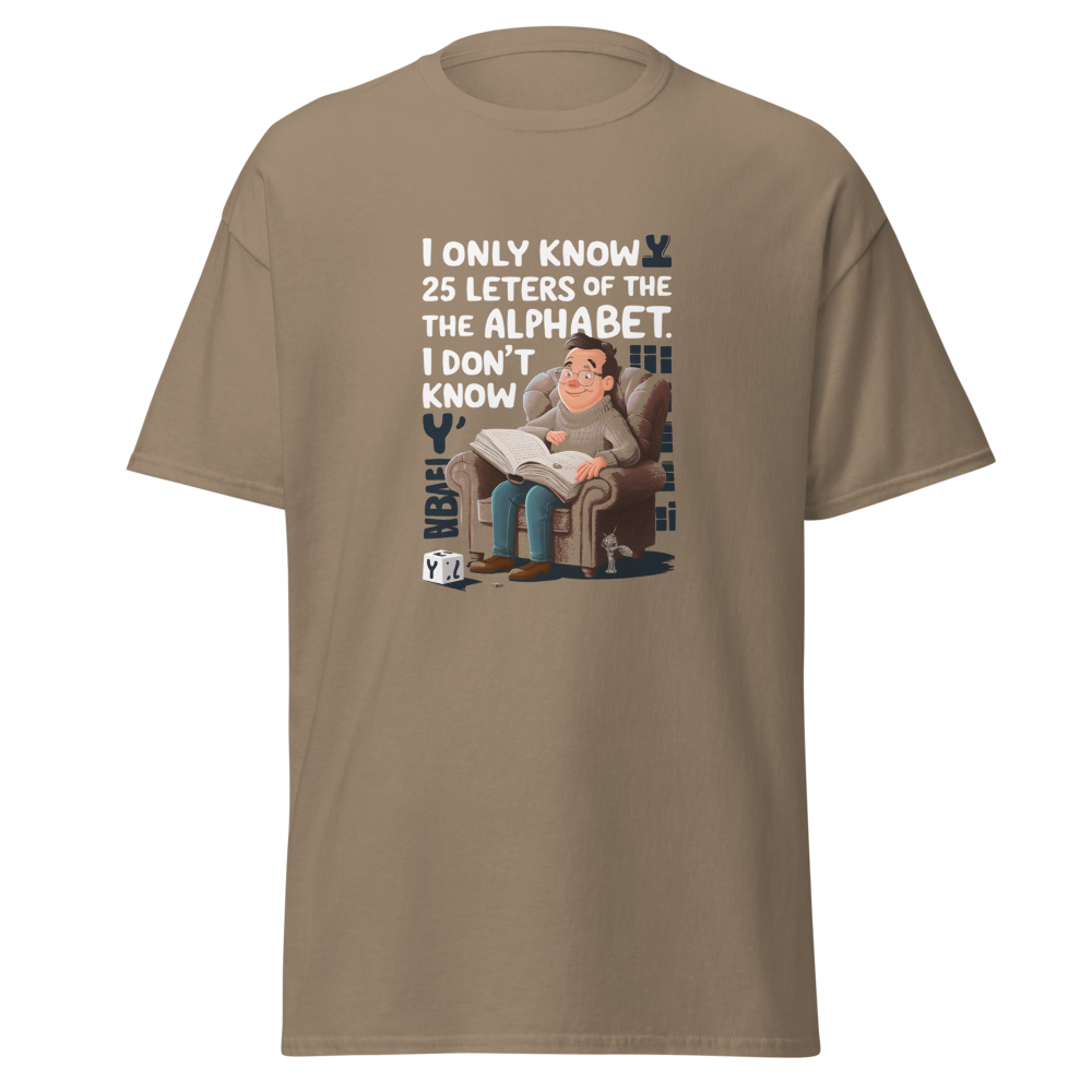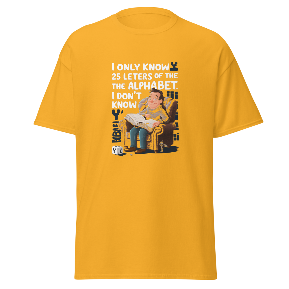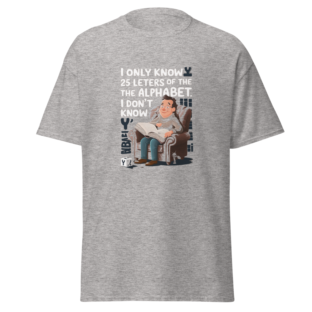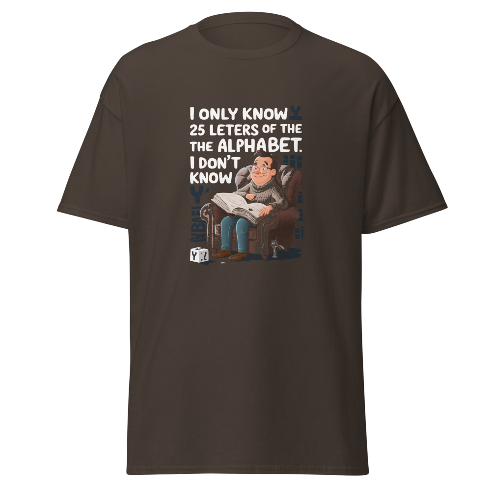 This playful tee features a quirky dad in a library, cleverly missing a “Y” alphabet block and a unique D20 bookmark. Perfect for teen tabletop gamers and anyone who loves a good pun.This t-shirt is everything you’ve dreamed of and more. It feels soft and lightweight, with the right amount of stretch. It’s comfortable and flattering for all. 100% combed and ring-spun cotton (Heather colors contain polyester) Fabric weight: 4.2 oz./yd.² (142 g/m²) Pre-shrunk fabric Side-seamed construction Shoulder-to-shoulder taping