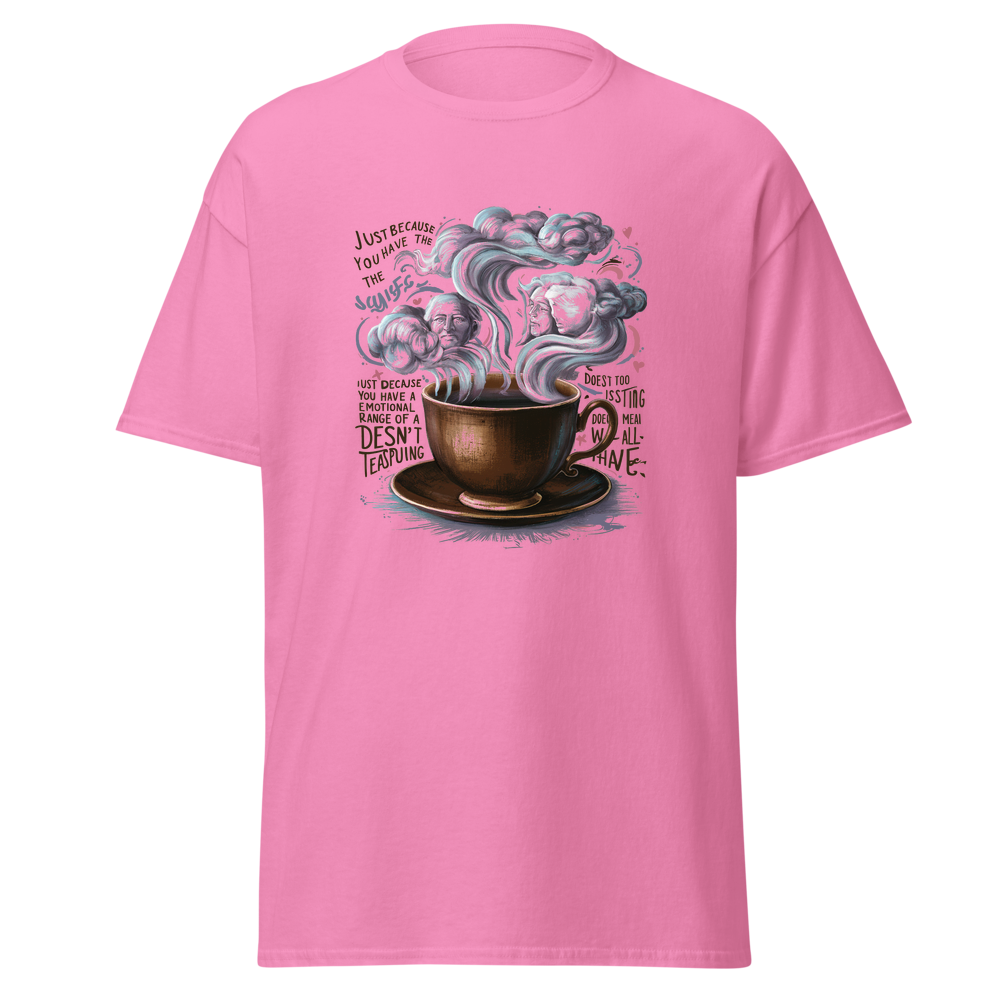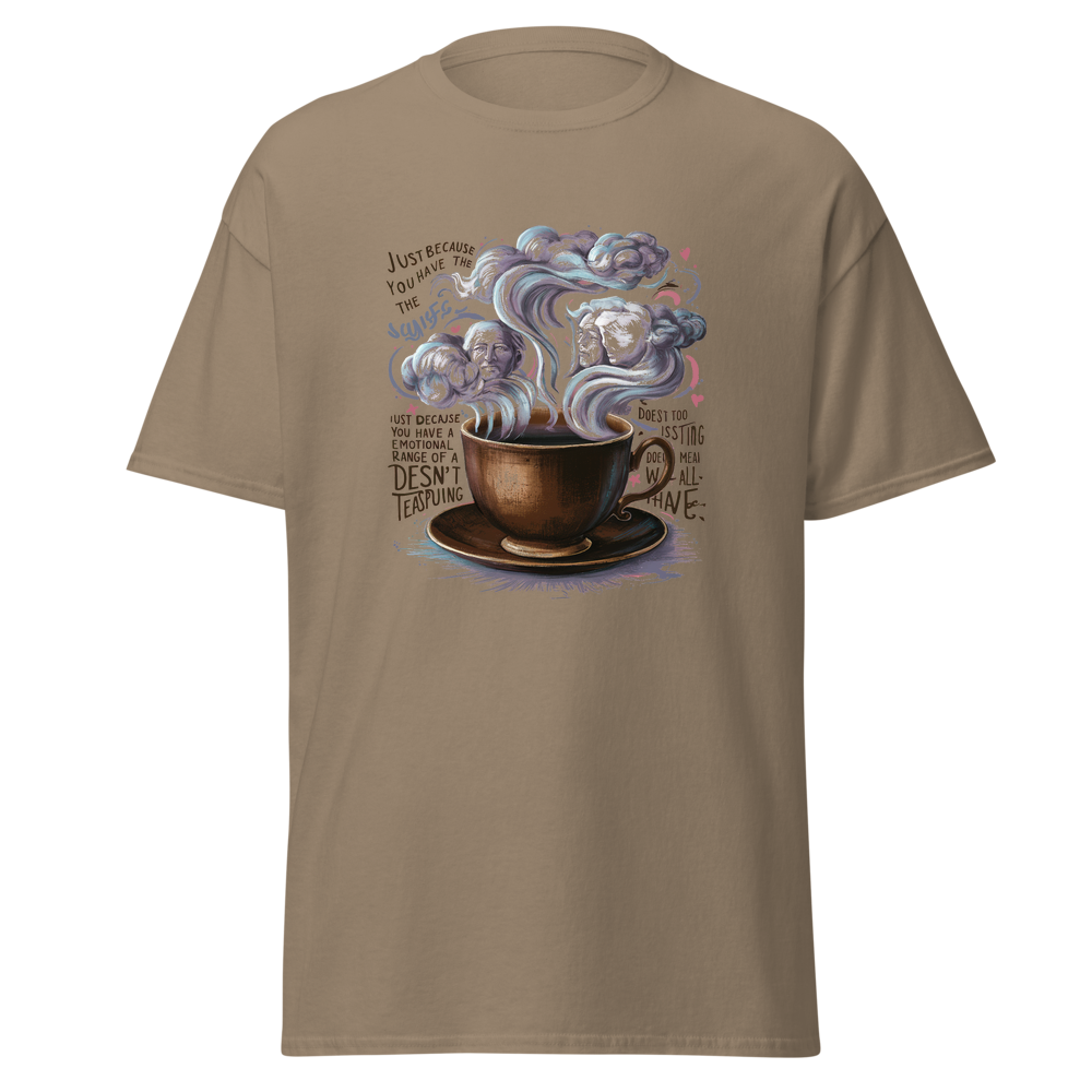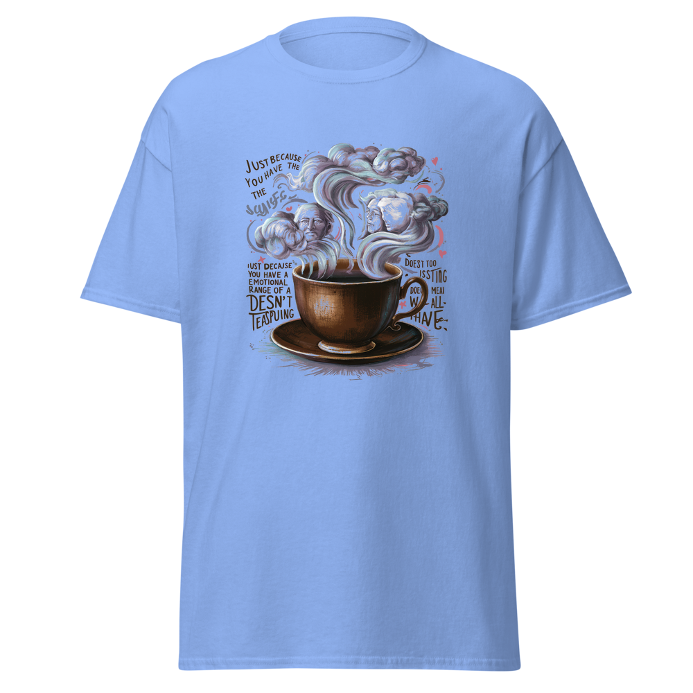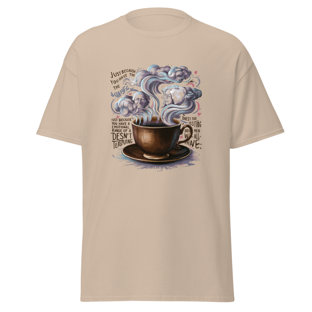A charming old-fashioned teacup with swirling steam forming abstract clouds and thoughtful faces. Detailed vintage patterns surround the teacup, adding a touch of nostalgia and elegance. Perfect for fans of classic literature and a unique style.This t-shirt is everything you’ve dreamed of and more. It feels soft and lightweight, with the right amount of stretch. It’s comfortable and flattering for all. 100% combed and ring-spun cotton (Heather colors contain polyester) Fabric weight: 4.2 oz./yd.² (142 g/m²) Pre-shrunk fabric Side-seamed construction Shoulder-to-shoulder taping