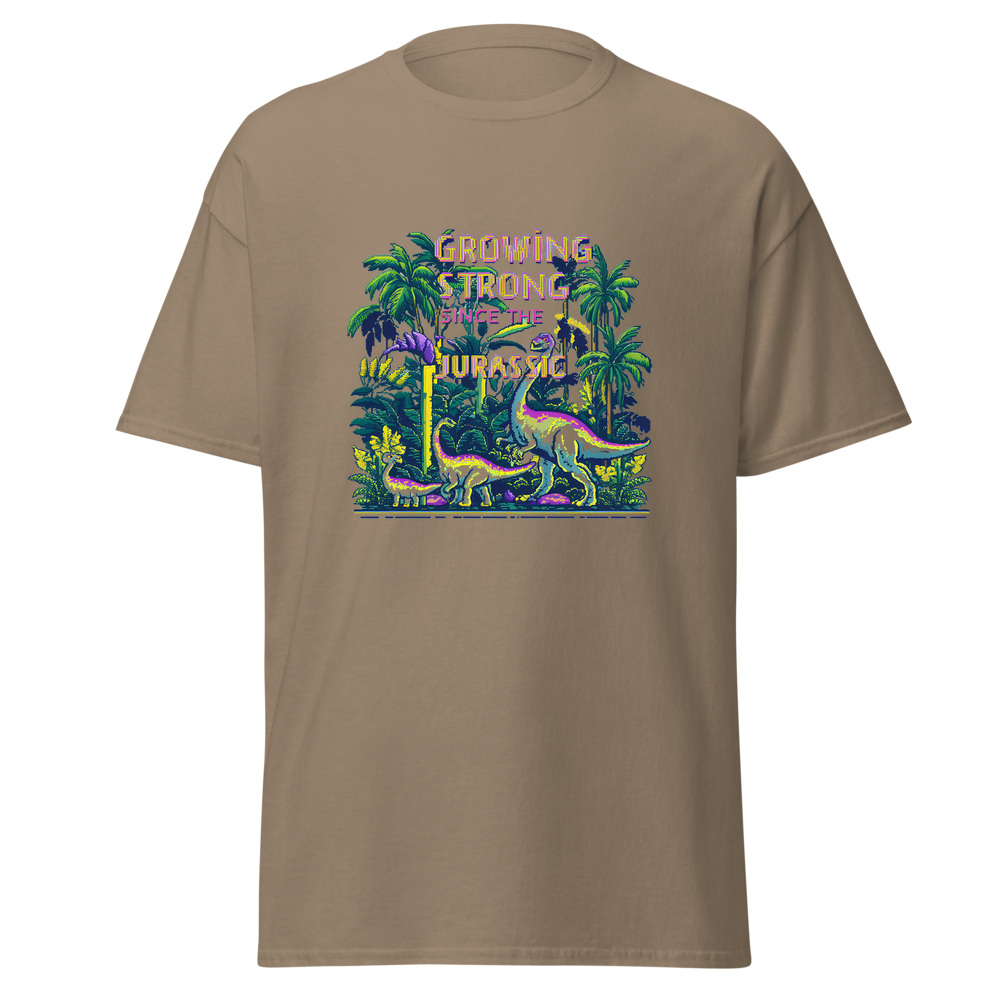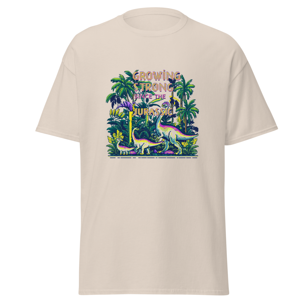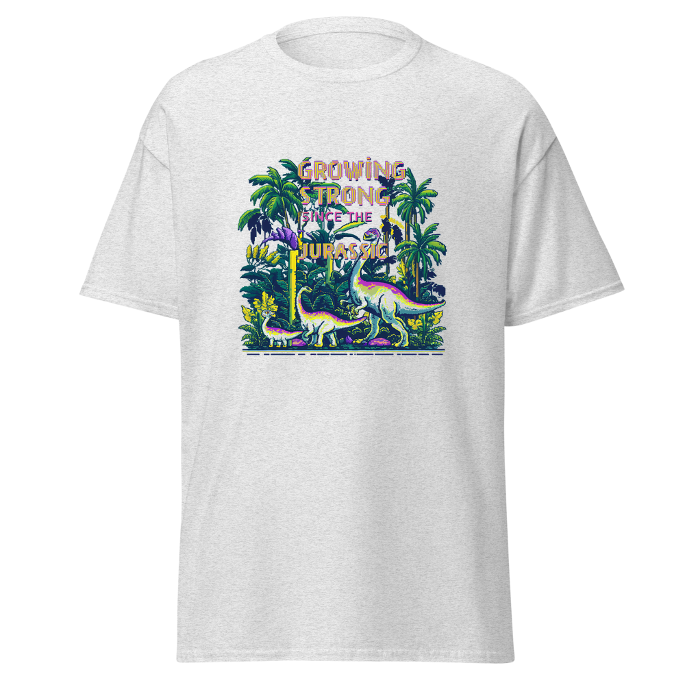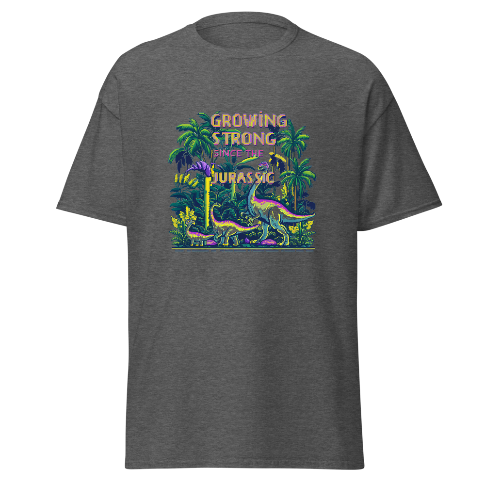 Step back in time with our Dino Garden t-shirt, featuring charming pixelated dinosaurs mingling with vibrant pixelated plants and flowers. Perfect for anyone with a love for gardening and a sense of nostalgia.This t-shirt is everything you’ve dreamed of and more. It feels soft and lightweight, with the right amount of stretch. It’s comfortable and flattering for all. 100% combed and ring-spun cotton (Heather colors contain polyester) Fabric weight: 4.2 oz./yd.² (142 g/m²) Pre-shrunk fabric Side-seamed construction Shoulder-to-shoulder taping