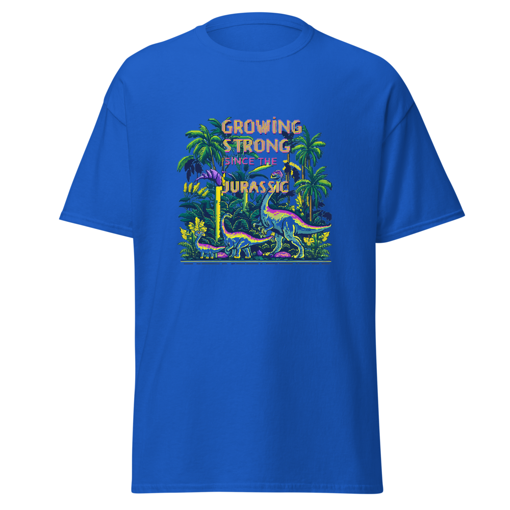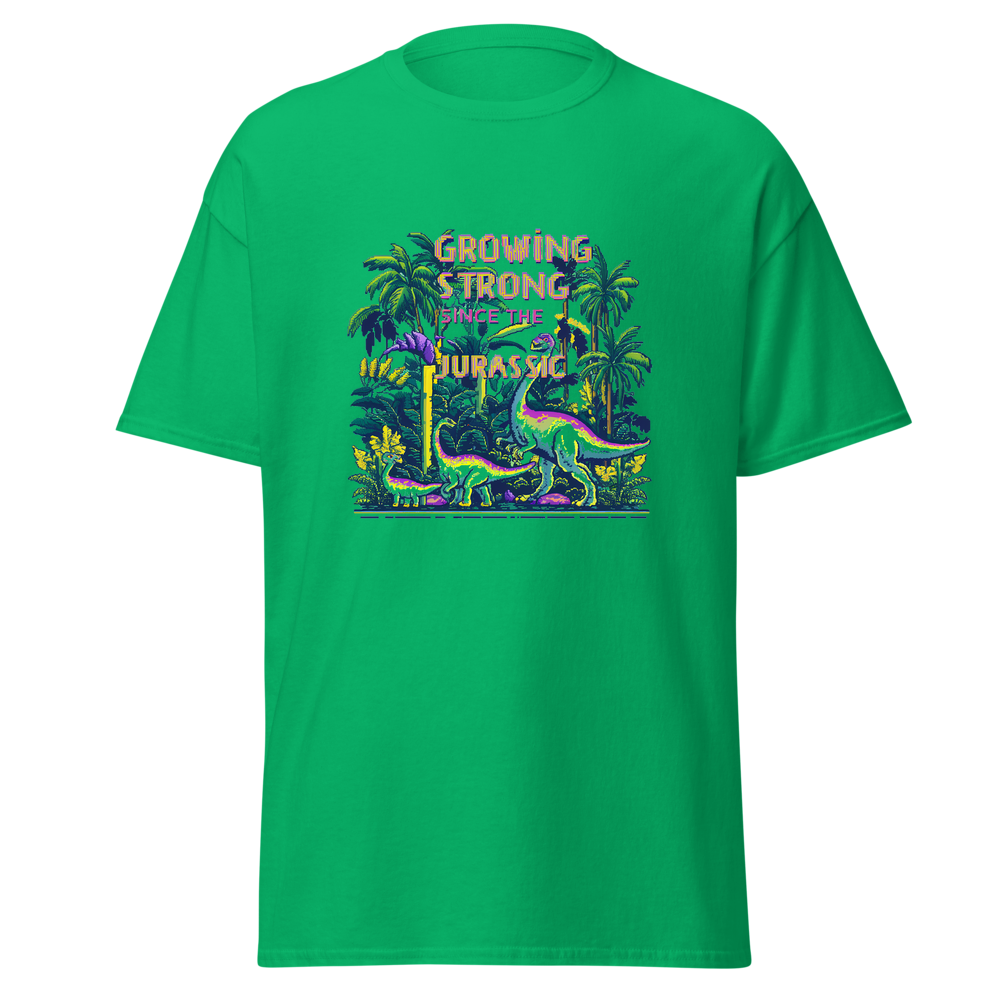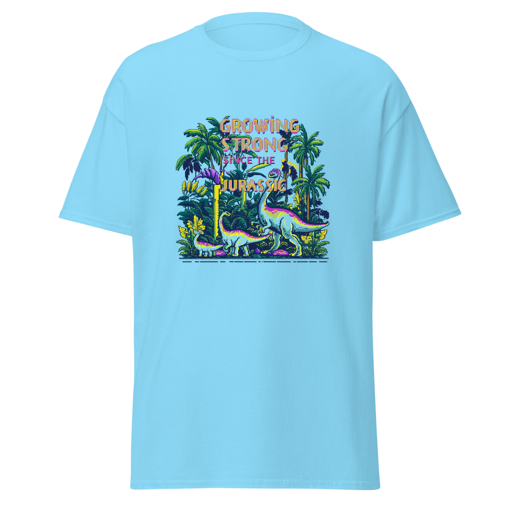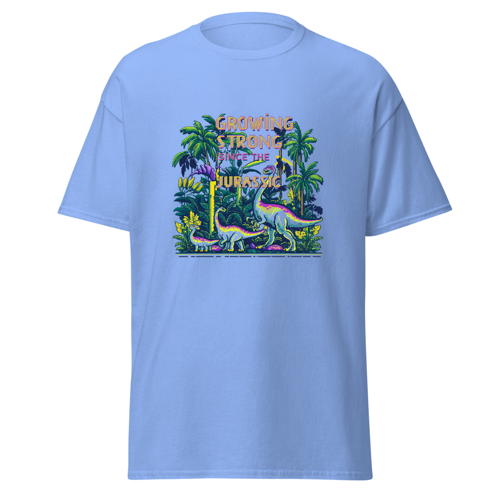 Step back in time with our Dino Garden t-shirt, featuring charming pixelated dinosaurs mingling with vibrant pixelated plants and flowers. Perfect for anyone with a love for gardening and a sense of nostalgia.This t-shirt is everything you’ve dreamed of and more. It feels soft and lightweight, with the right amount of stretch. It’s comfortable and flattering for all. 100% combed and ring-spun cotton (Heather colors contain polyester) Fabric weight: 4.2 oz./yd.² (142 g/m²) Pre-shrunk fabric Side-seamed construction Shoulder-to-shoulder taping