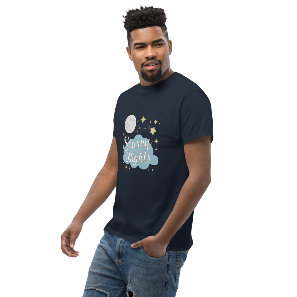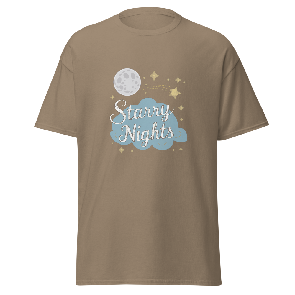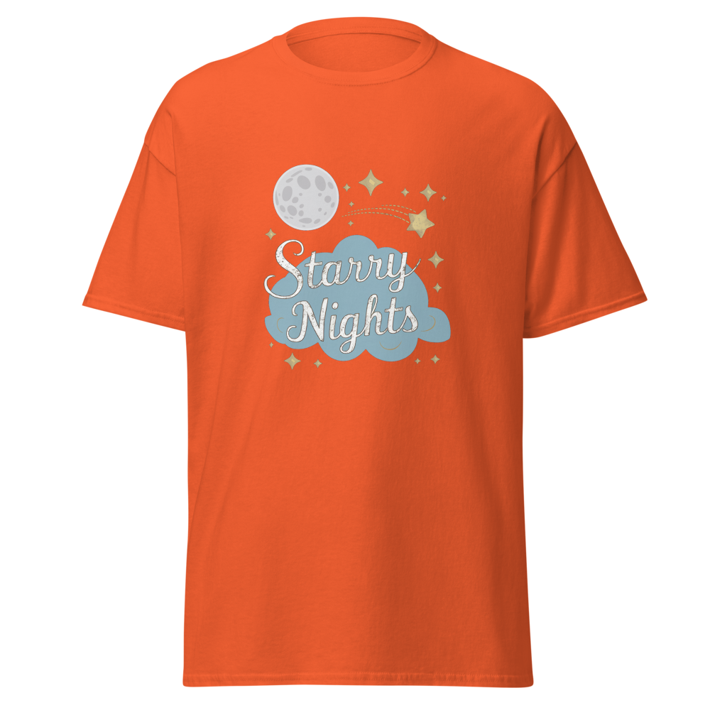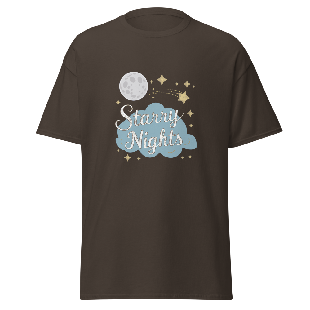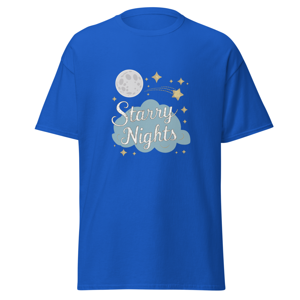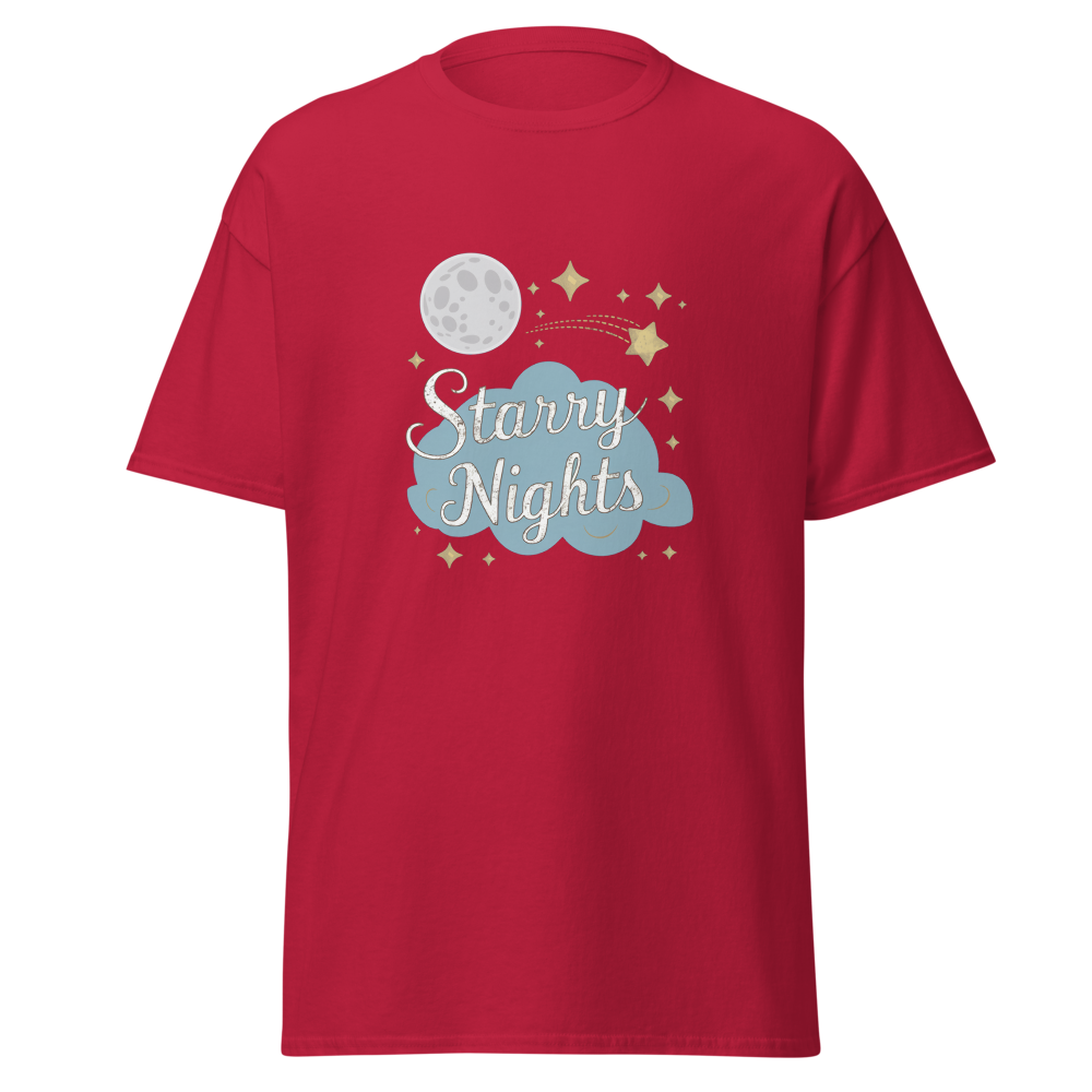 Immerse yourself in a whimsical night sky with enchanting moons, stars, and dreamy clouds. Perfect for those who cherish serene, starry nights.This t-shirt is everything you’ve dreamed of and more. It feels soft and lightweight, with the right amount of stretch. It’s comfortable and flattering for all. 100% combed and ring-spun cotton (Heather colors contain polyester) Fabric weight: 4.2 oz./yd.² (142 g/m²) Pre-shrunk fabric Side-seamed construction Shoulder-to-shoulder taping