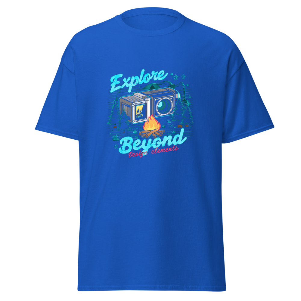 This t-shirt features a nostalgic classic video camcorder capturing a cozy camping scene. The design includes pixelated trees and a warm bonfire, perfect for those who love to explore the great outdoors. Ideal for adventurous spirits and nature enthusiasts.This t-shirt is everything you’ve dreamed of and more. It feels soft and lightweight, with the right amount of stretch. It’s comfortable and flattering for all. 100% combed and ring-spun cotton (Heather colors contain polyester) Fabric weight: 4.2 oz./yd.² (142 g/m²) Pre-shrunk fabric Side-seamed construction Shoulder-to-shoulder taping