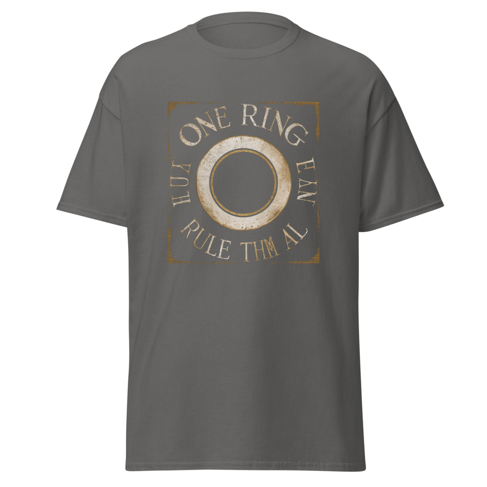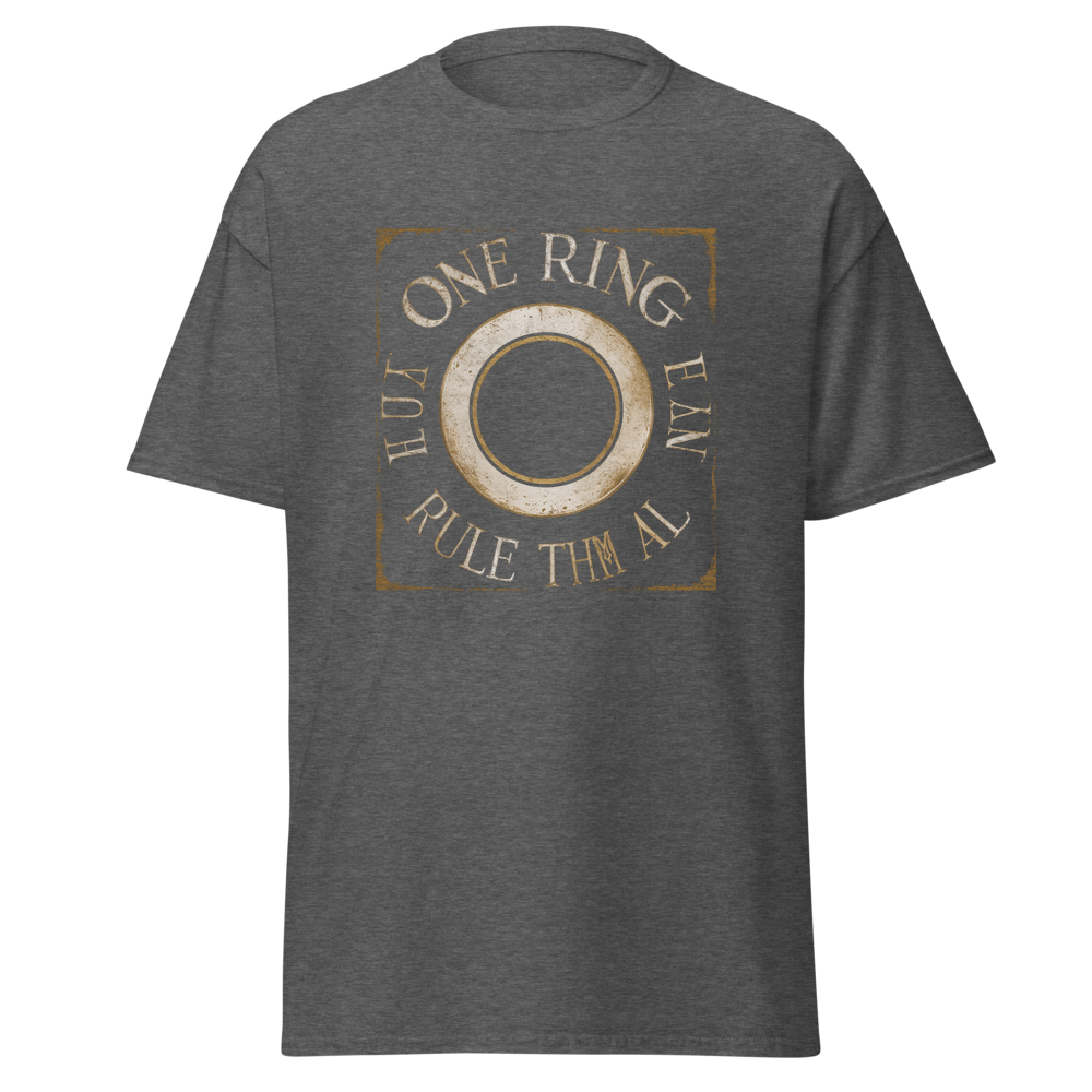 Step into the epic world of Middle-earth with this vintage-inspired Lord of the Rings poster tee. Featuring the iconic One Ring and a medieval-style font, it’s perfect for movie buffs and fans of timeless adventures.This t-shirt is everything you’ve dreamed of and more. It feels soft and lightweight, with the right amount of stretch. It’s comfortable and flattering for all. 100% combed and ring-spun cotton (Heather colors contain polyester) Fabric weight: 4.2 oz./yd.² (142 g/m²) Pre-shrunk fabric Side-seamed construction Shoulder-to-shoulder taping