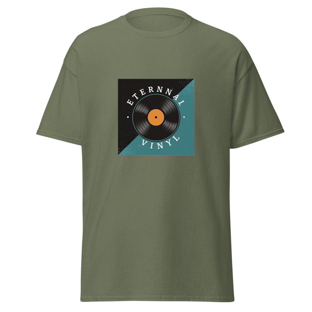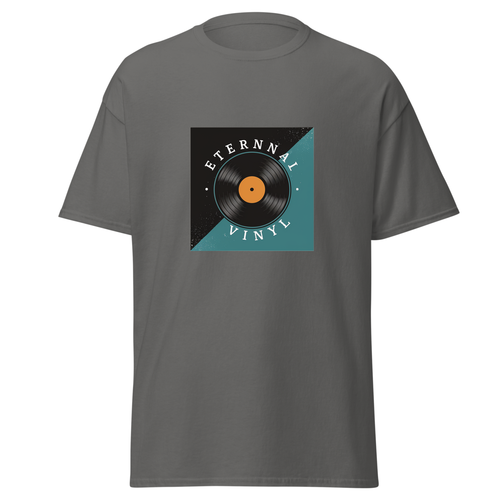 Journey through space and time with this eye-catching shirt, featuring a vinyl record spinning against a cosmic backdrop. Perfect for vinyl record lovers, especially our seasoned music enthusiasts.This t-shirt is everything you’ve dreamed of and more. It feels soft and lightweight, with the right amount of stretch. It’s comfortable and flattering for all. 100% combed and ring-spun cotton (Heather colors contain polyester) Fabric weight: 4.2 oz./yd.² (142 g/m²) Pre-shrunk fabric Side-seamed construction Shoulder-to-shoulder taping