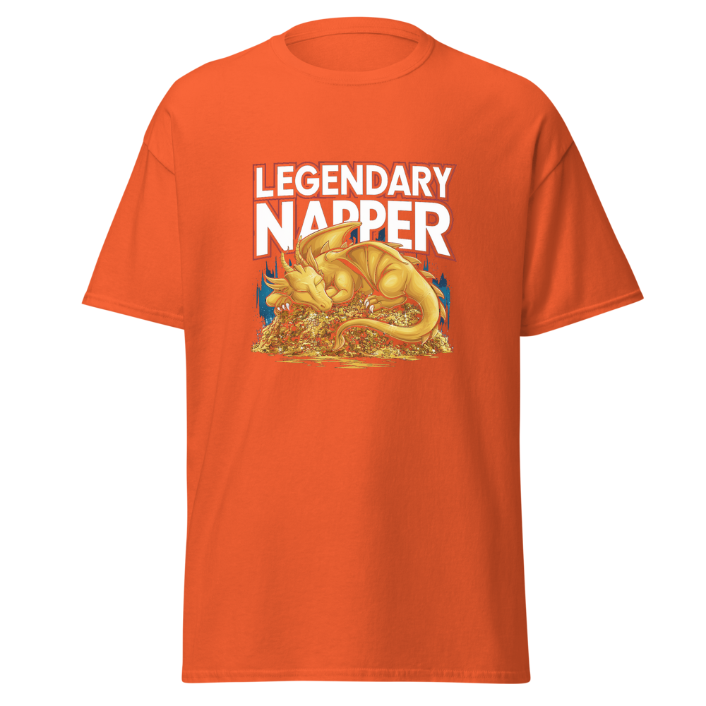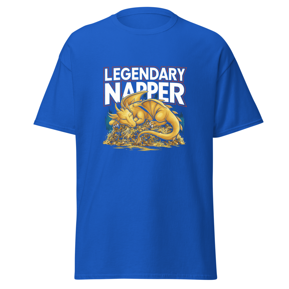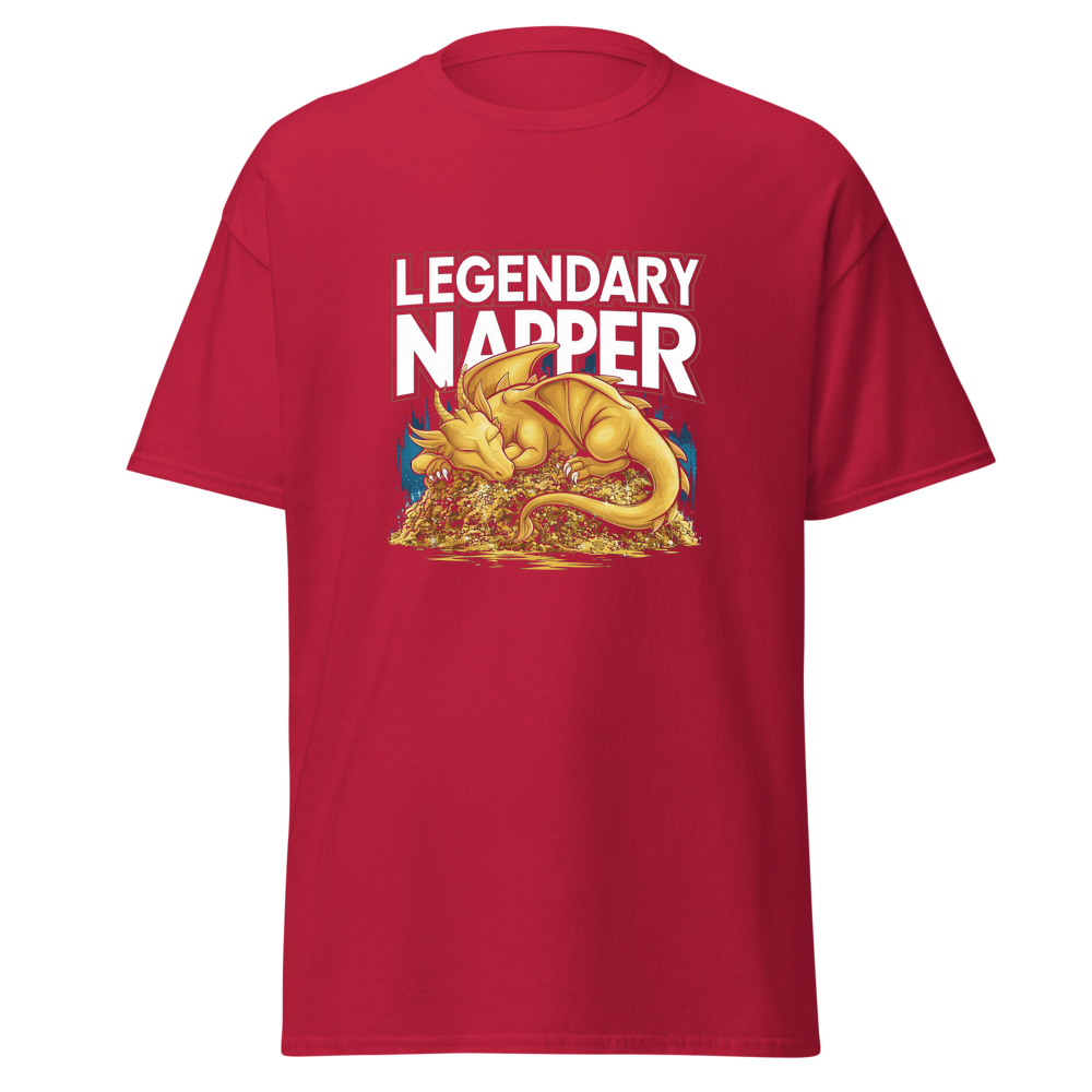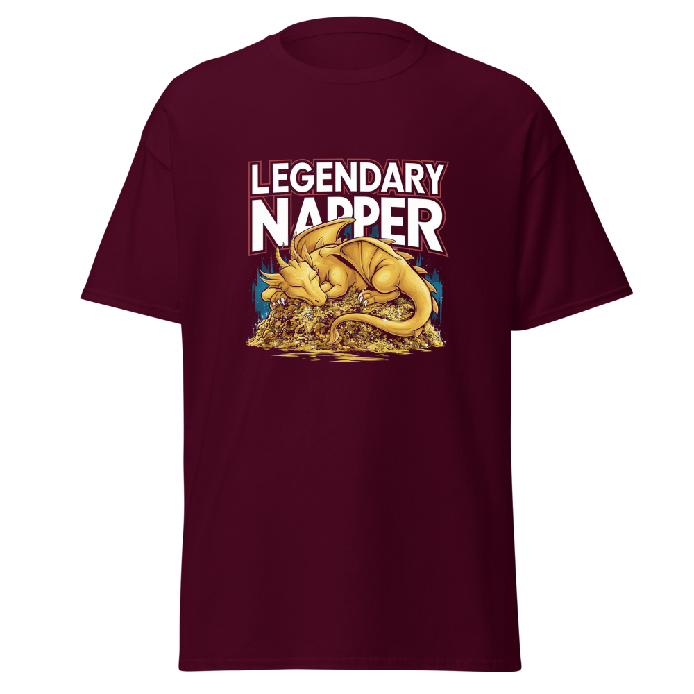 A sleepy dragon lounges on a treasure pile, taking a legendary nap. Perfect for teens and fantasy fans alike, this comfy tee offers a whimsical touch to any casual outfit.This t-shirt is everything you’ve dreamed of and more. It feels soft and lightweight, with the right amount of stretch. It’s comfortable and flattering for all. 100% combed and ring-spun cotton (Heather colors contain polyester) Fabric weight: 4.2 oz./yd.² (142 g/m²) Pre-shrunk fabric Side-seamed construction Shoulder-to-shoulder taping
