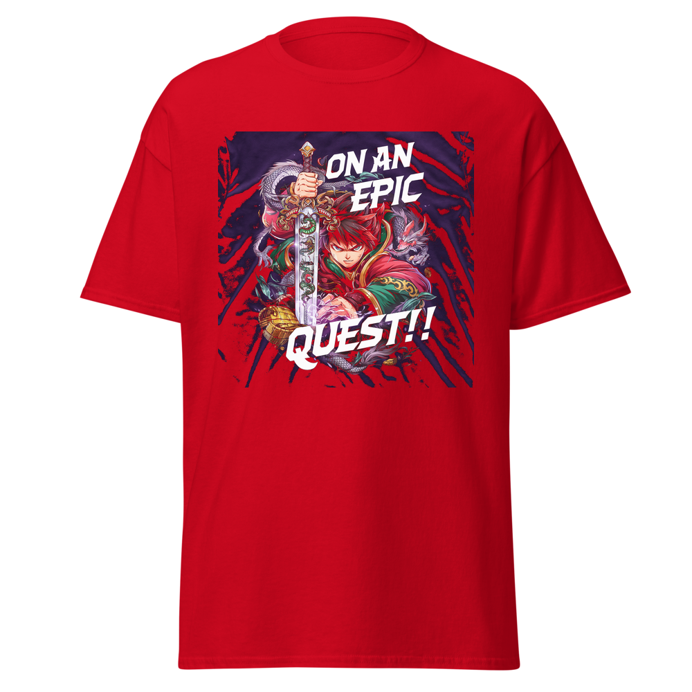 Dive into an epic adventure with this cool tee featuring an anime hero wielding a sword surrounded by a majestic dragon and hidden treasure. Perfect for teens and anime fans who love a good fantasy quest!This t-shirt is everything you’ve dreamed of and more. It feels soft and lightweight, with the right amount of stretch. It’s comfortable and flattering for all. 100% combed and ring-spun cotton (Heather colors contain polyester) Fabric weight: 4.2 oz./yd.² (142 g/m²) Pre-shrunk fabric Side-seamed construction Shoulder-to-shoulder taping