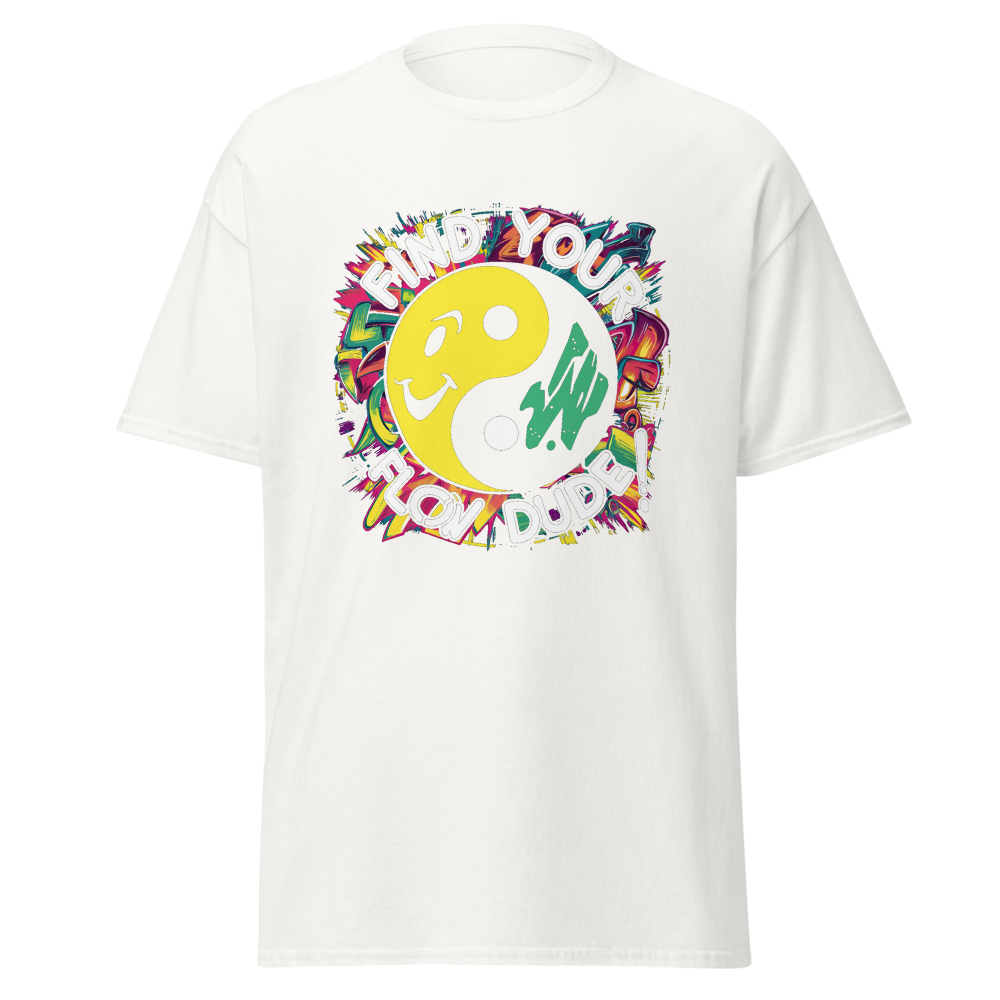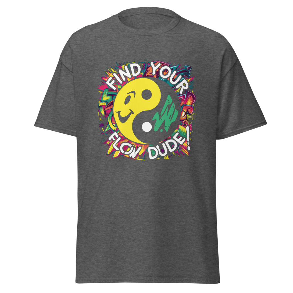 This tee features a cool, stylized yin-yang symbol with vibrant 90s graffiti art and a smiley face at the center. Perfect for those who love a relaxed, retro vibe and want to find their flow. Ideal for yoga practitioners and anyone who digs a chill style.This t-shirt is everything you’ve dreamed of and more. It feels soft and lightweight, with the right amount of stretch. It’s comfortable and flattering for all. 100% combed and ring-spun cotton (Heather colors contain polyester) Fabric weight: 4.2 oz./yd.² (142 g/m²) Pre-shrunk fabric Side-seamed construction Shoulder-to-shoulder taping
