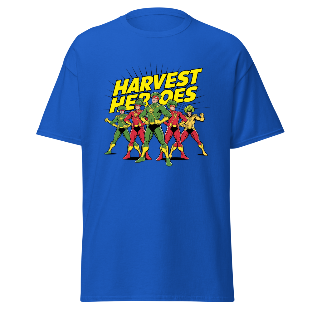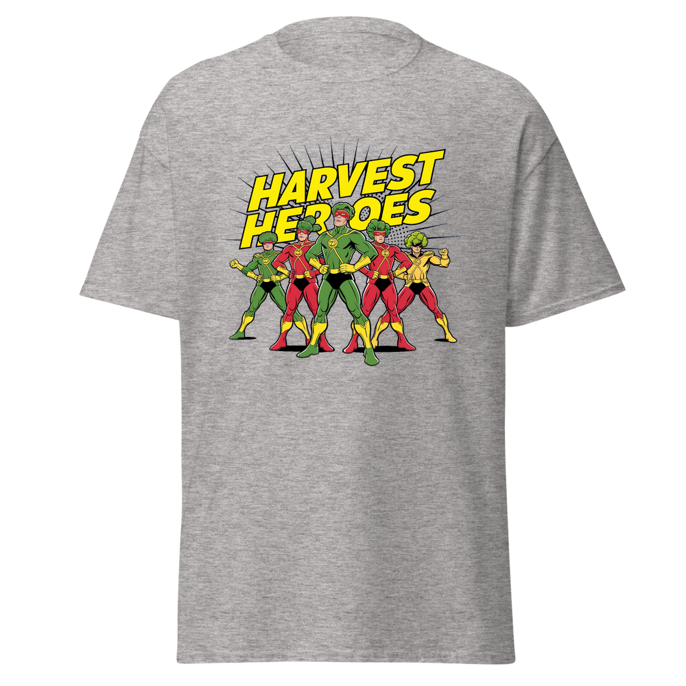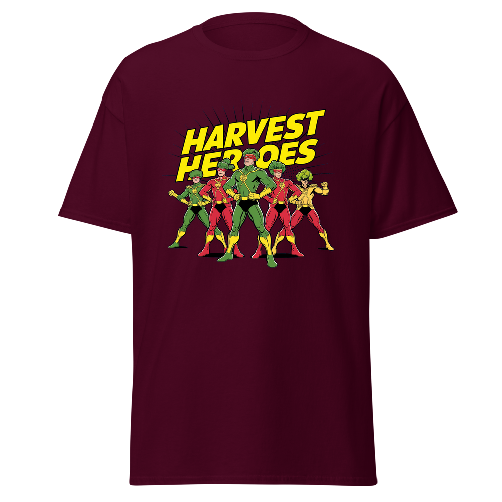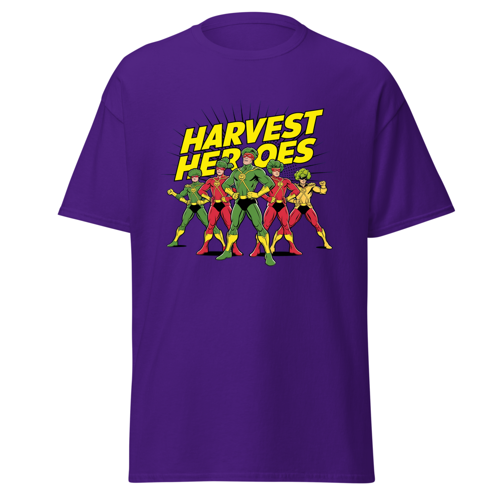 This fun and vibrant t-shirt features a retro comic book style with vegetable characters striking superhero poses. Perfect for adults and farmers’ market fans, it’s a playful and unique way to show off your love for fresh produce and heroics.This t-shirt is everything you’ve dreamed of and more. It feels soft and lightweight, with the right amount of stretch. It’s comfortable and flattering for all. 100% combed and ring-spun cotton (Heather colors contain polyester) Fabric weight: 4.2 oz./yd.² (142 g/m²) Pre-shrunk fabric Side-seamed construction Shoulder-to-shoulder taping