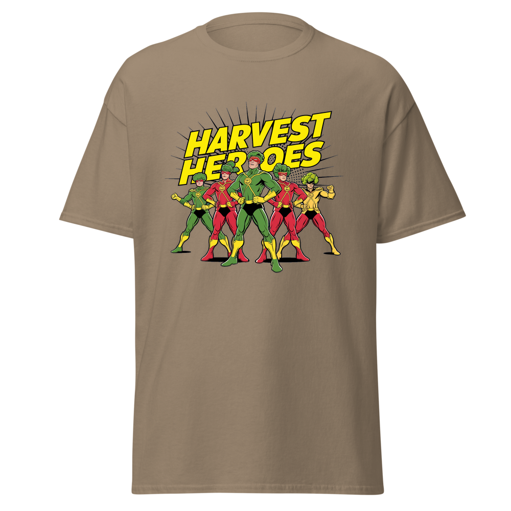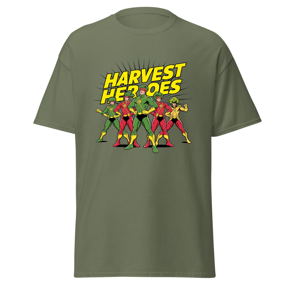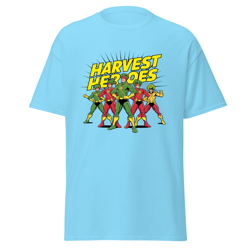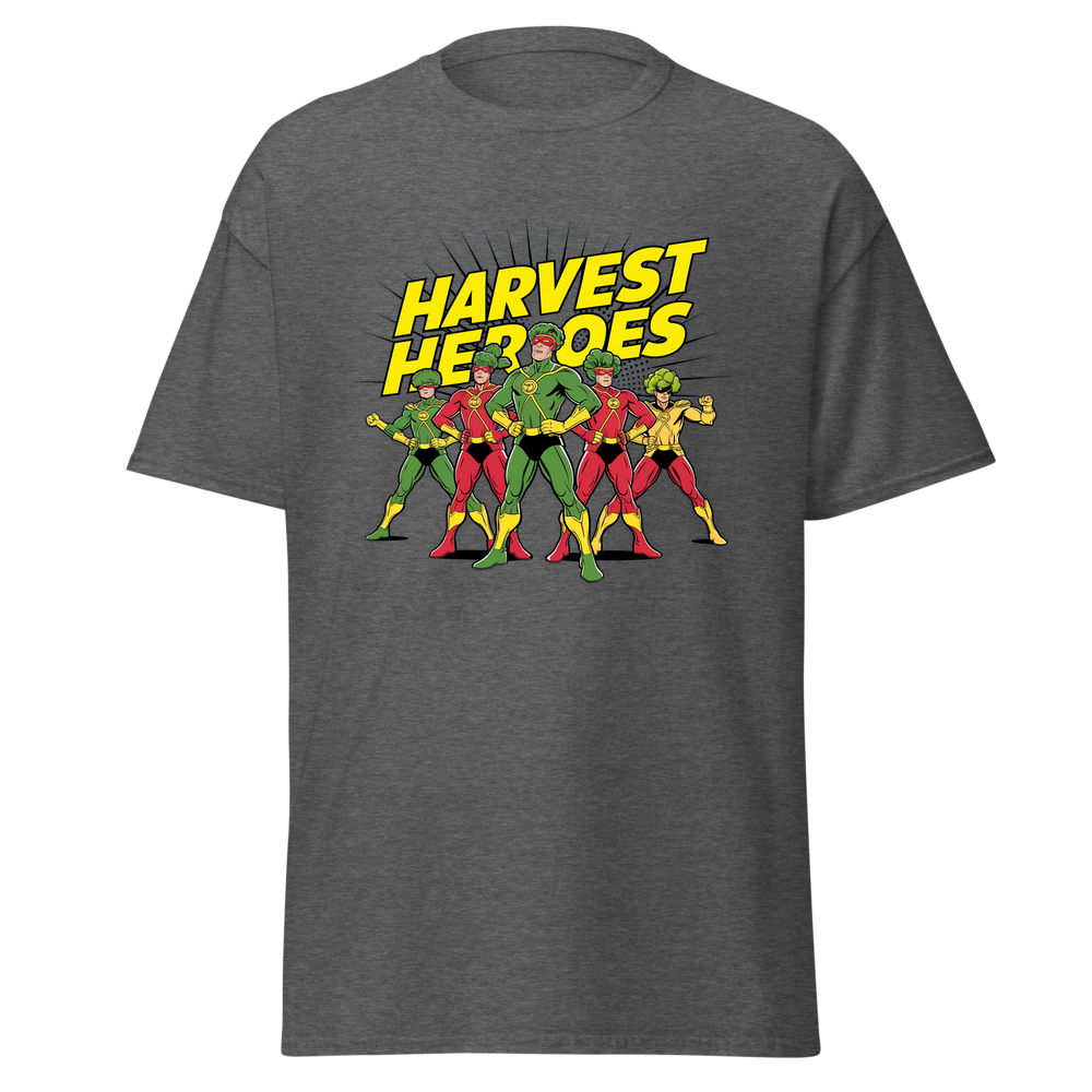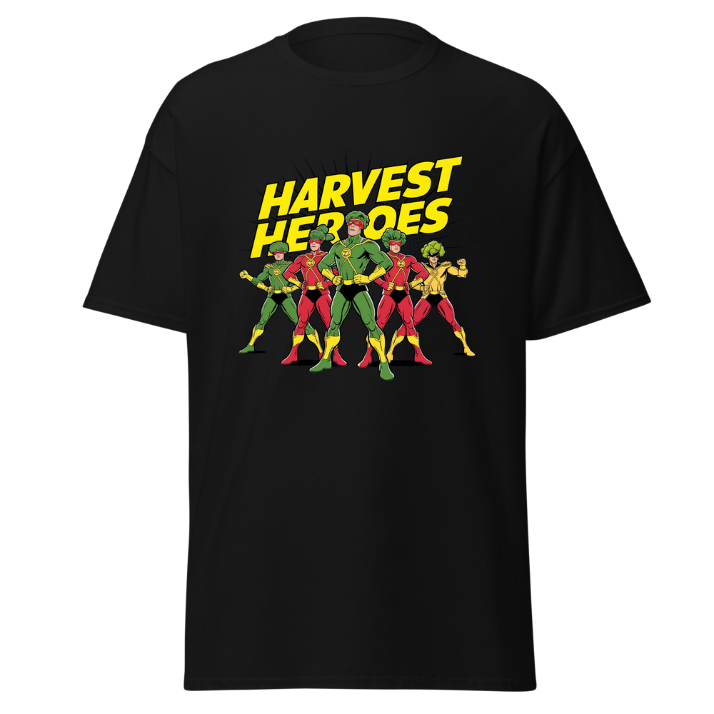 This fun and vibrant t-shirt features a retro comic book style with vegetable characters striking superhero poses. Perfect for adults and farmers’ market fans, it’s a playful and unique way to show off your love for fresh produce and heroics.This t-shirt is everything you’ve dreamed of and more. It feels soft and lightweight, with the right amount of stretch. It’s comfortable and flattering for all. 100% combed and ring-spun cotton (Heather colors contain polyester) Fabric weight: 4.2 oz./yd.² (142 g/m²) Pre-shrunk fabric Side-seamed construction Shoulder-to-shoulder taping