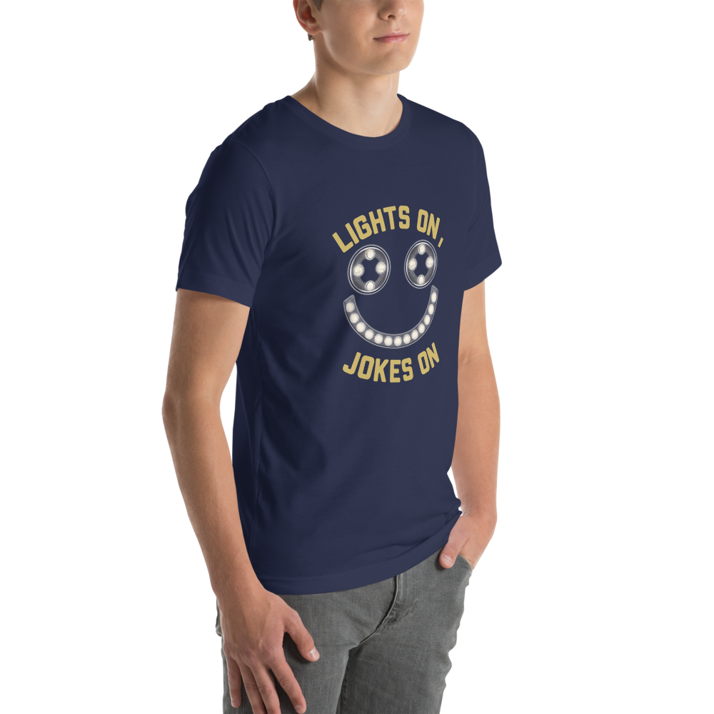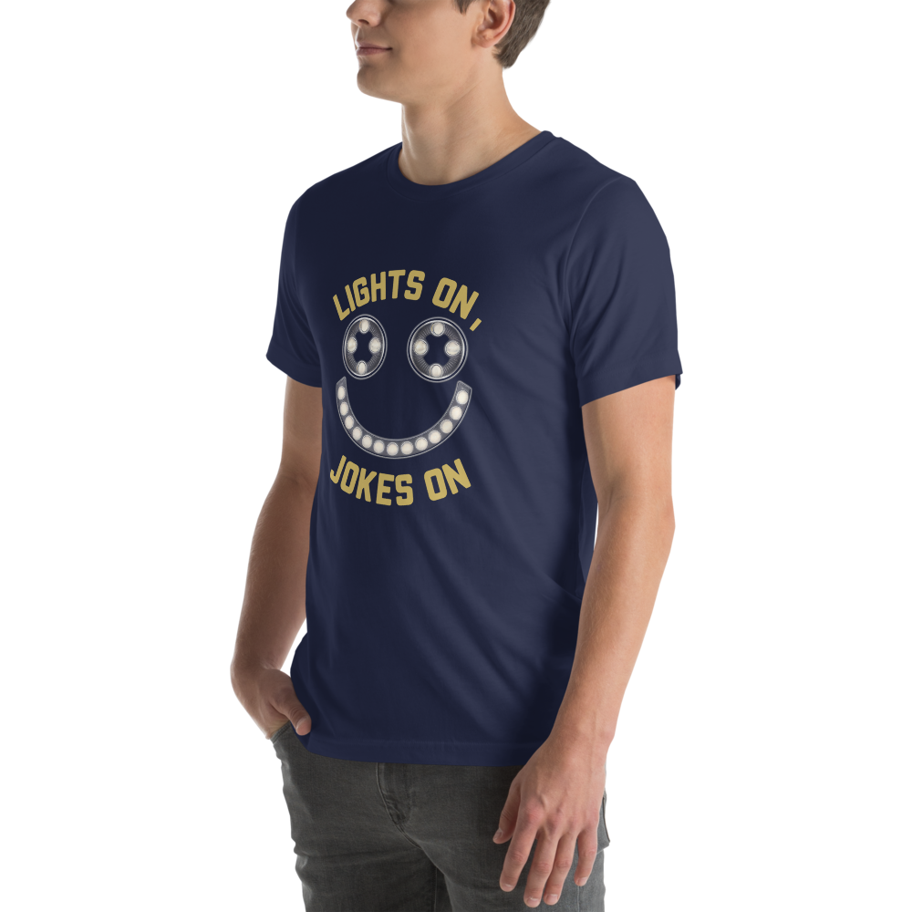 This fun t-shirt showcases car headlights creatively arranged to form a smiley face. Perfect for car enthusiasts who love a good laugh, this design adds a playful touch to your everyday look.This t-shirt is everything you’ve dreamed of and more. It feels soft and lightweight, with the right amount of stretch. It’s comfortable and flattering for all. 100% combed and ring-spun cotton (Heather colors contain polyester) Fabric weight: 4.2 oz./yd.² (142 g/m²) Pre-shrunk fabric Side-seamed construction Shoulder-to-shoulder taping