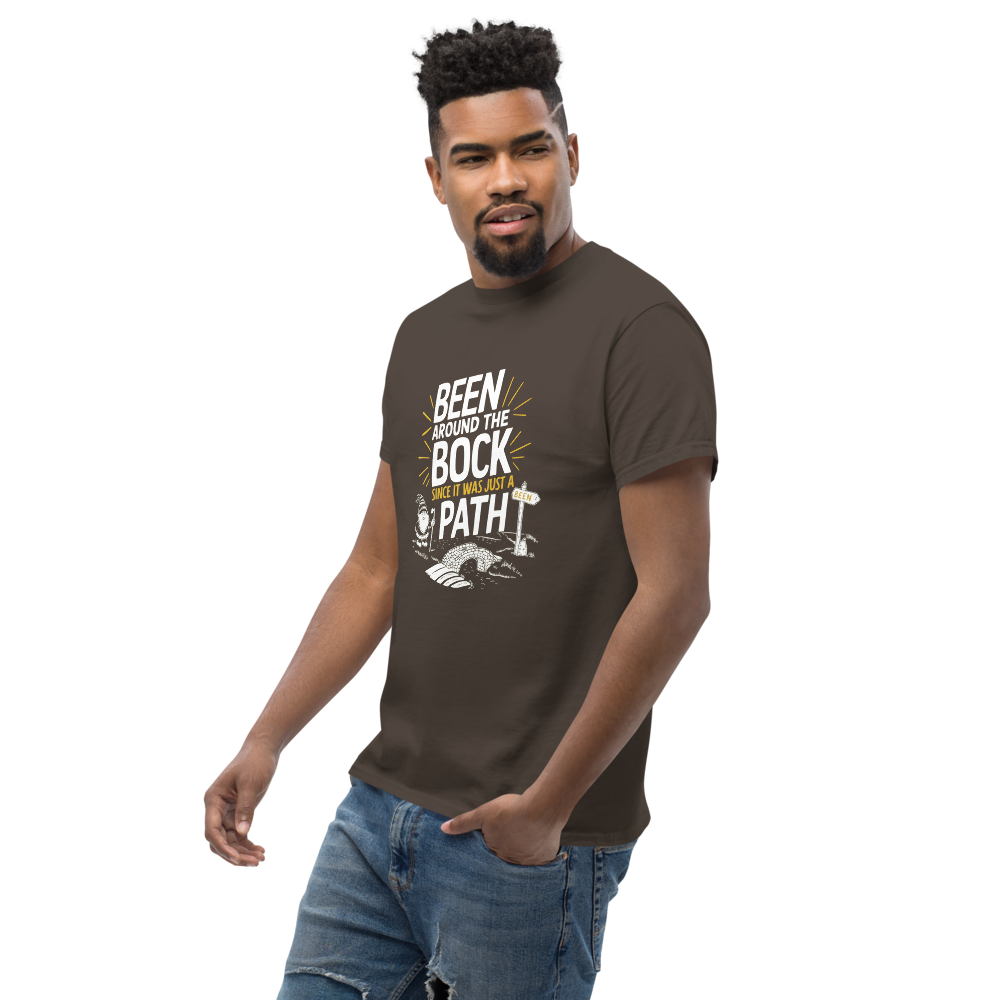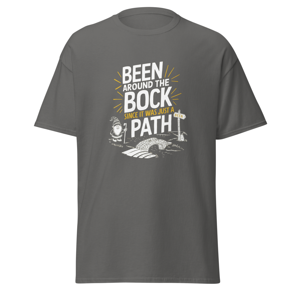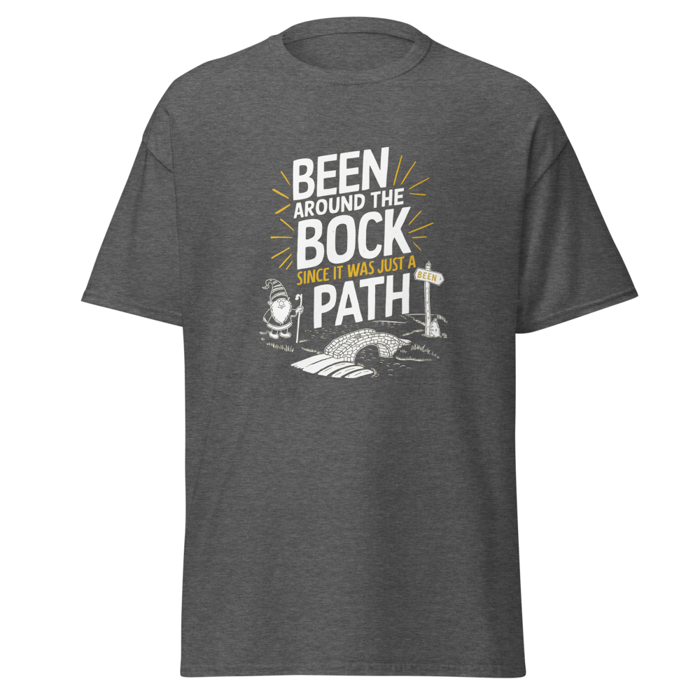 Take a trip through time with this playful tee featuring an ancient, winding path dotted with quirky, humor-filled landmarks. Perfect for history buffs and those who’ve seen it all.This t-shirt is everything you’ve dreamed of and more. It feels soft and lightweight, with the right amount of stretch. It’s comfortable and flattering for all. 100% combed and ring-spun cotton (Heather colors contain polyester) Fabric weight: 4.2 oz./yd.² (142 g/m²) Pre-shrunk fabric Side-seamed construction Shoulder-to-shoulder taping