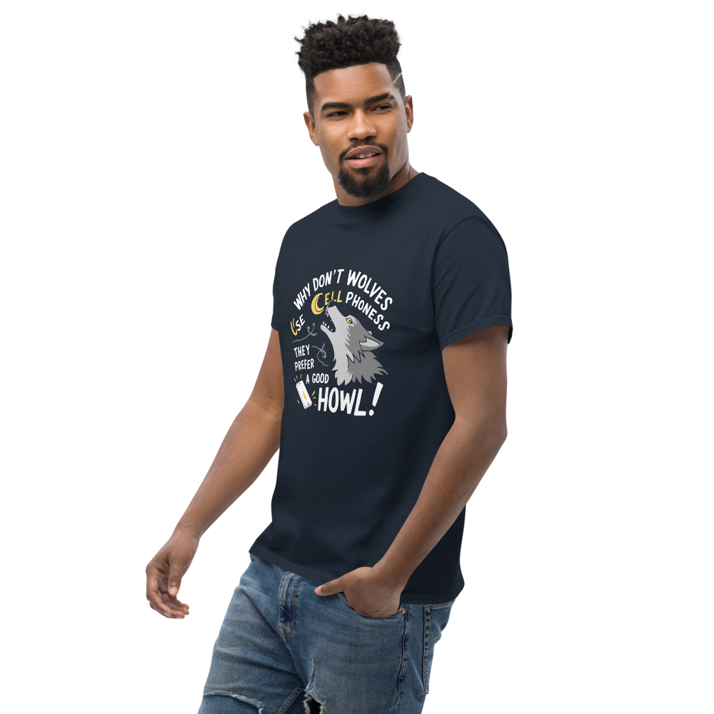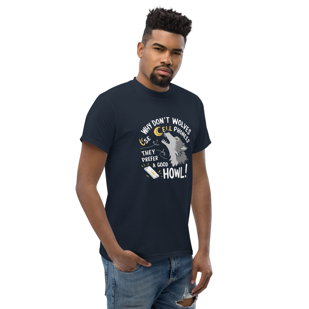 A playful cartoon wolf howls at the moon, having tossed a smartphone aside. Perfect for nature lovers with a sense of humor, this funny design captures the wild spirit in a relatable way.This t-shirt is everything you’ve dreamed of and more. It feels soft and lightweight, with the right amount of stretch. It’s comfortable and flattering for all. 100% combed and ring-spun cotton (Heather colors contain polyester) Fabric weight: 4.2 oz./yd.² (142 g/m²) Pre-shrunk fabric Side-seamed construction Shoulder-to-shoulder taping