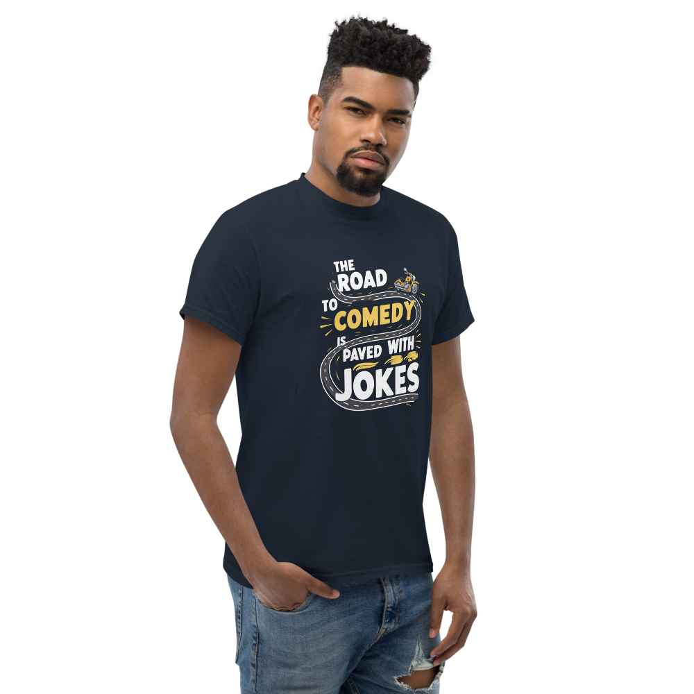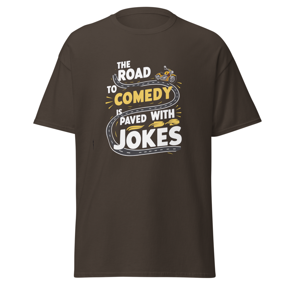 This shirt features a fun comic-style illustration of a winding road with a motorcycle cruising along, perfect for anyone who loves a good laugh and the open road. Ideal for adult male motorcycle enthusiasts who appreciate a touch of humor.This t-shirt is everything you’ve dreamed of and more. It feels soft and lightweight, with the right amount of stretch. It’s comfortable and flattering for all. 100% combed and ring-spun cotton (Heather colors contain polyester) Fabric weight: 4.2 oz./yd.² (142 g/m²) Pre-shrunk fabric Side-seamed construction Shoulder-to-shoulder taping