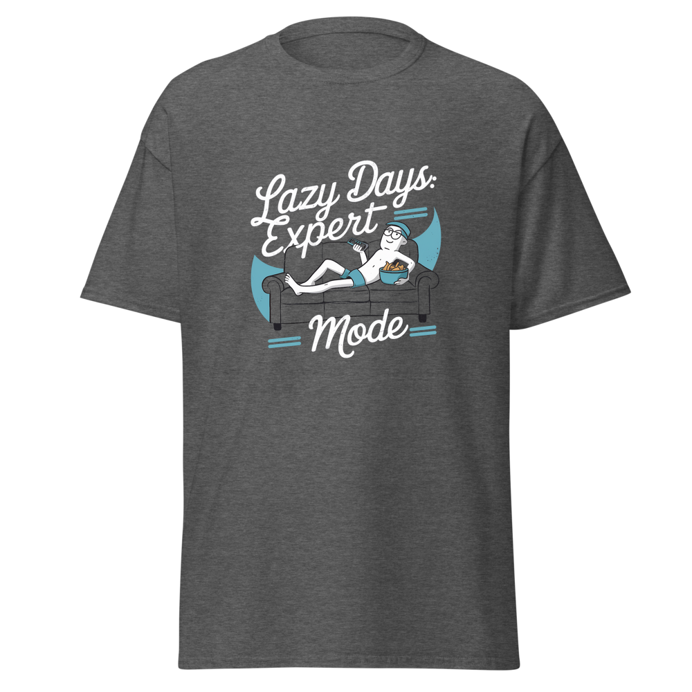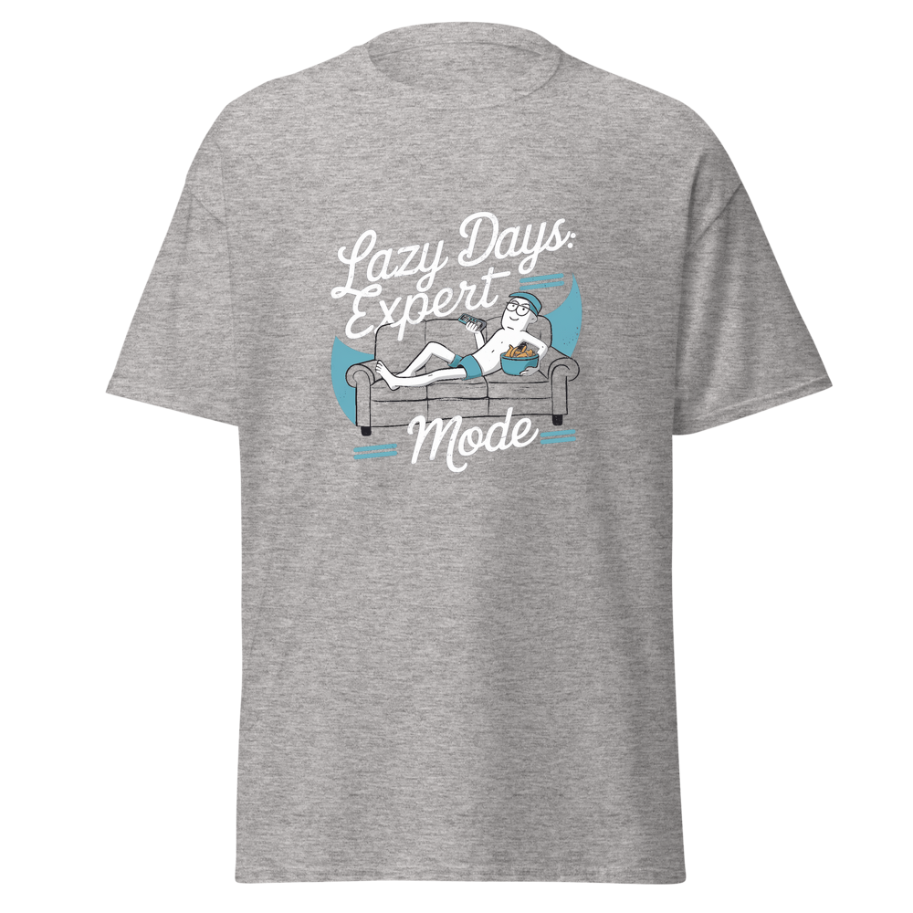 A fun and witty design featuring a character relaxing on a couch, with a remote in hand and snacks within reach. Perfect for those who love to unwind and chill in style.This t-shirt is everything you’ve dreamed of and more. It feels soft and lightweight, with the right amount of stretch. It’s comfortable and flattering for all. 100% combed and ring-spun cotton (Heather colors contain polyester) Fabric weight: 4.2 oz./yd.² (142 g/m²) Pre-shrunk fabric Side-seamed construction Shoulder-to-shoulder taping