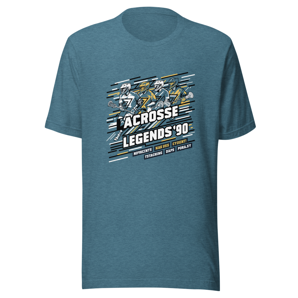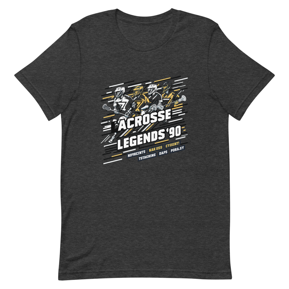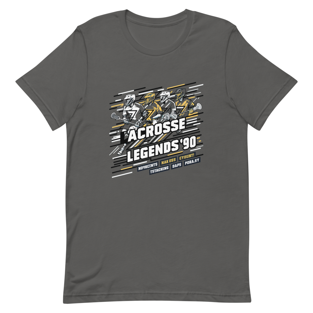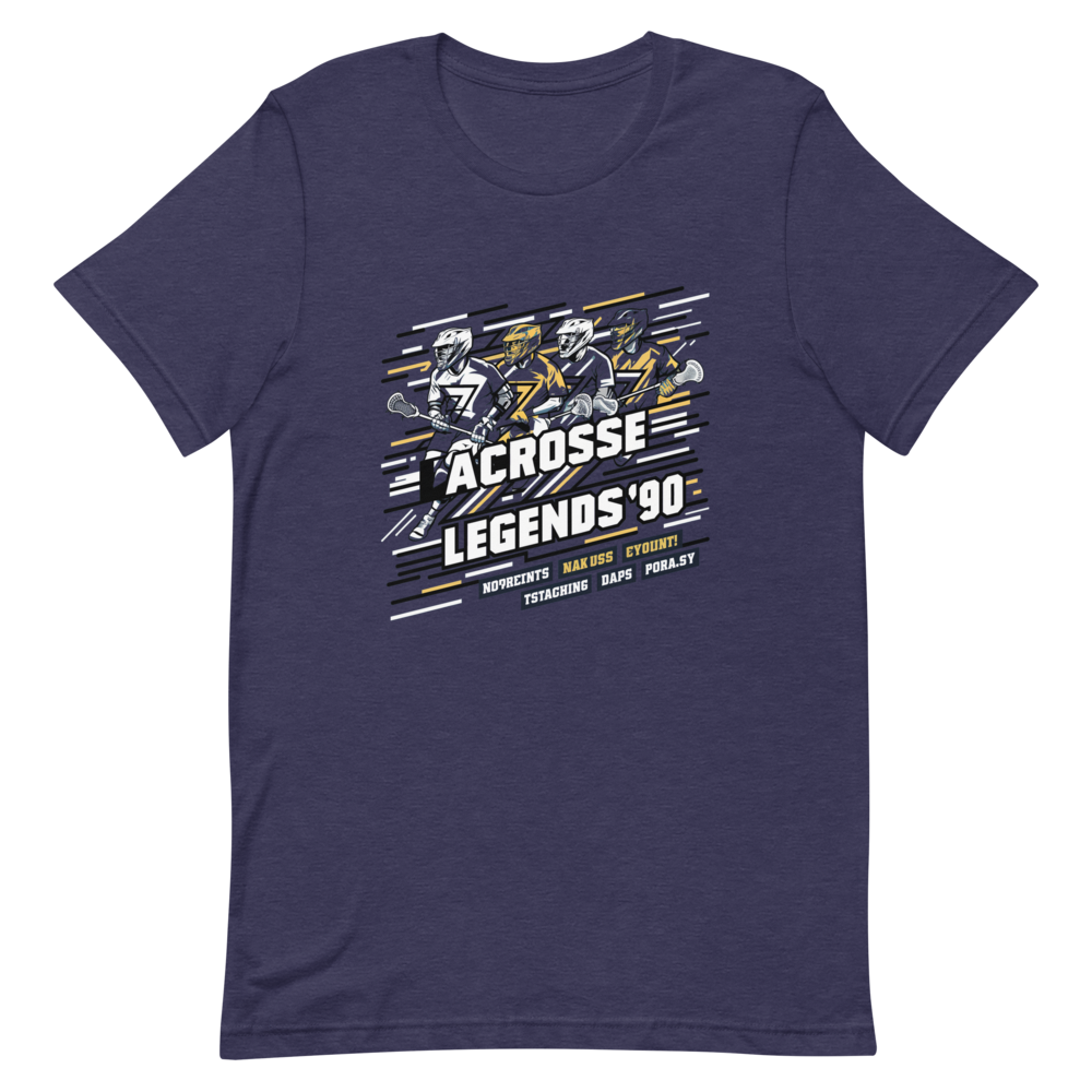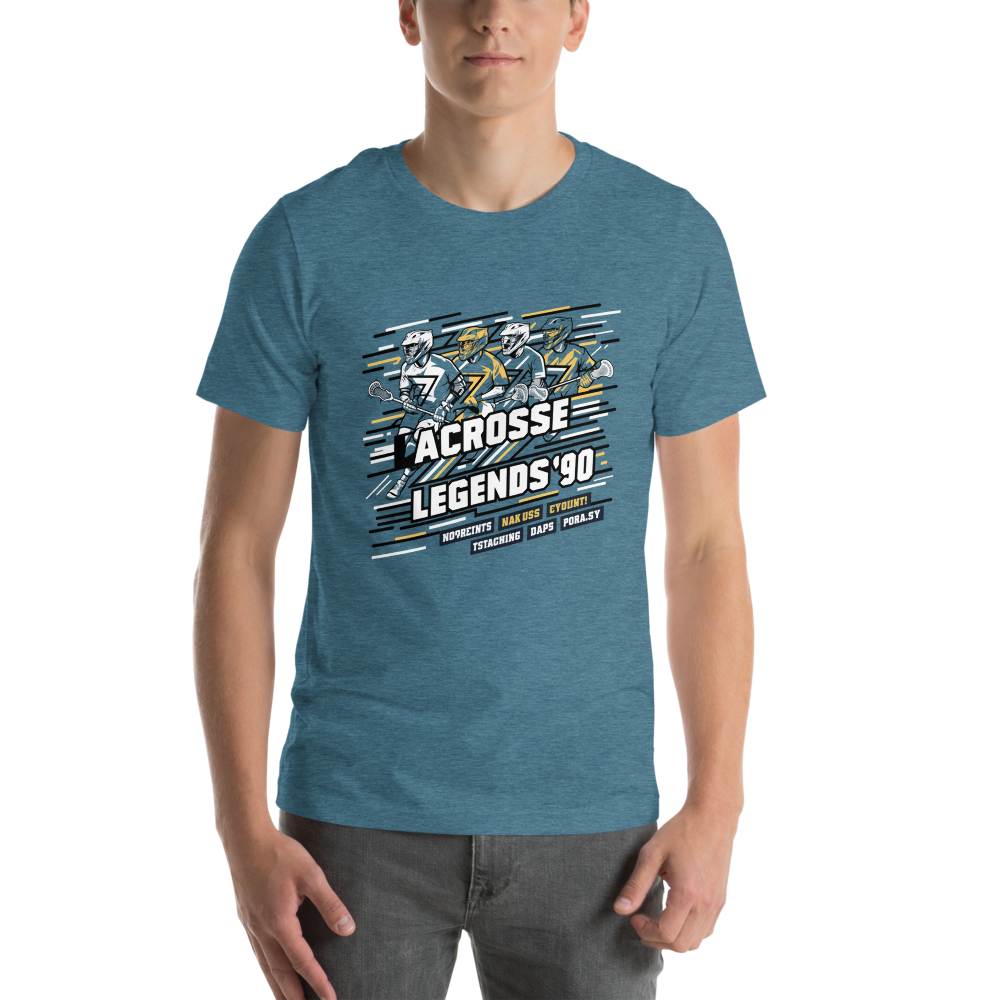 A lively and modern pop art design featuring dynamic lacrosse players intertwined with cool geometric patterns and abstract lines. Perfect for sports enthusiasts and fans of old school lacrosse teams.This t-shirt is everything you’ve dreamed of and more. It feels soft and lightweight, with the right amount of stretch. It’s comfortable and flattering for all. 100% combed and ring-spun cotton (Heather colors contain polyester) Fabric weight: 4.2 oz./yd.² (142 g/m²) Pre-shrunk fabric Side-seamed construction Shoulder-to-shoulder taping
