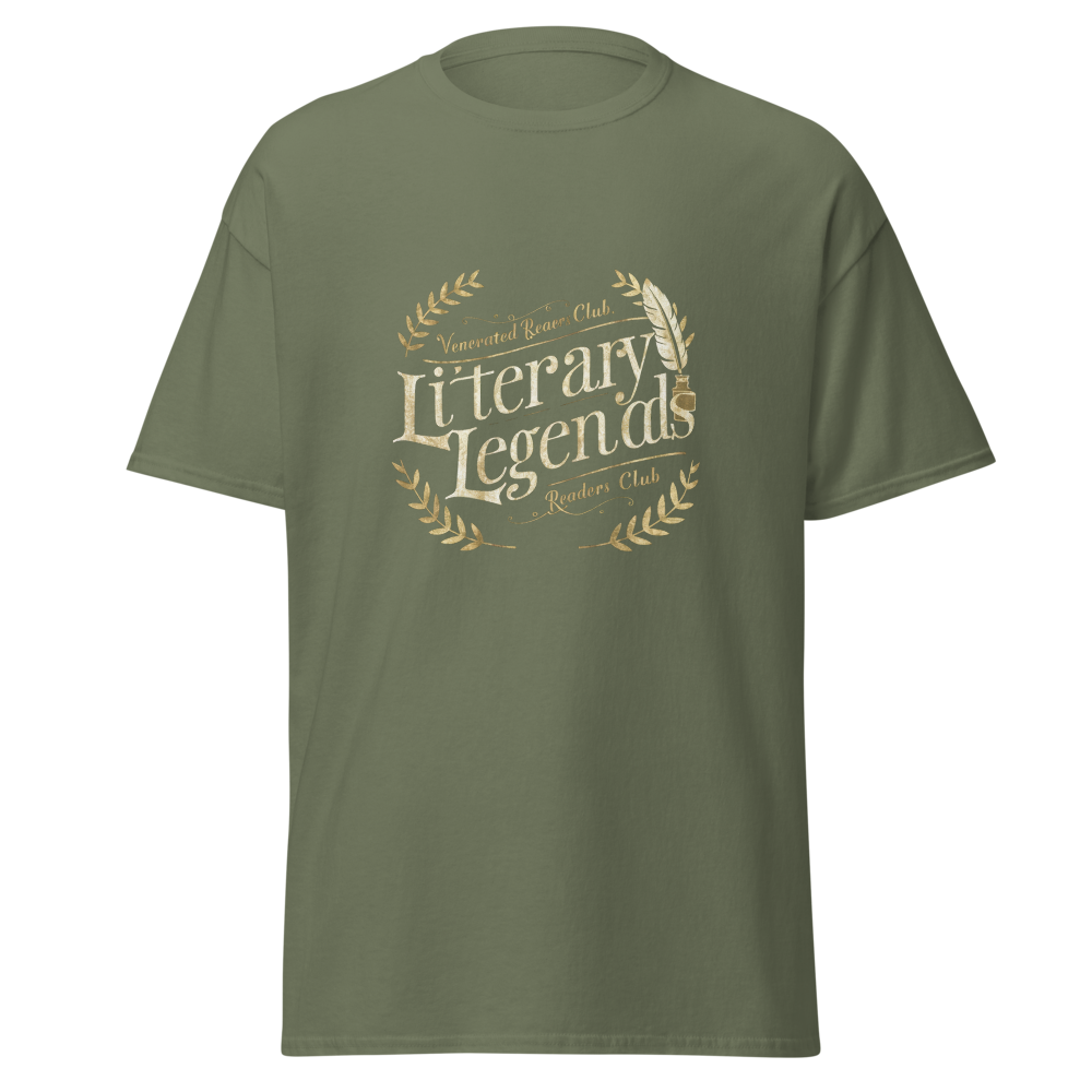Embrace your love for classic literature with this timeless design featuring a vintage quill and ink bottle next to an old scroll. Decorative laurel wreaths add an elegant touch, making it perfect for any literary enthusiast.This t-shirt is everything you’ve dreamed of and more. It feels soft and lightweight, with the right amount of stretch. It’s comfortable and flattering for all. 100% combed and ring-spun cotton (Heather colors contain polyester) Fabric weight: 4.2 oz./yd.² (142 g/m²) Pre-shrunk fabric Side-seamed construction Shoulder-to-shoulder taping