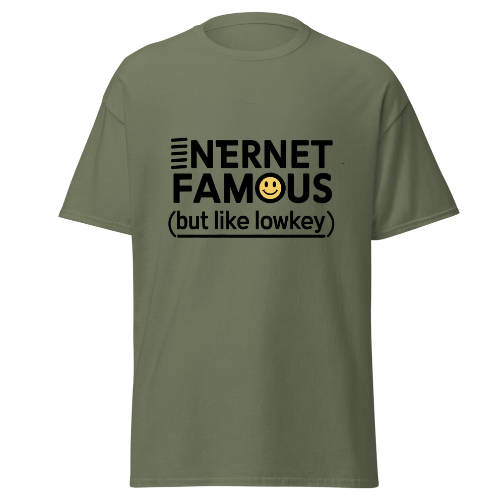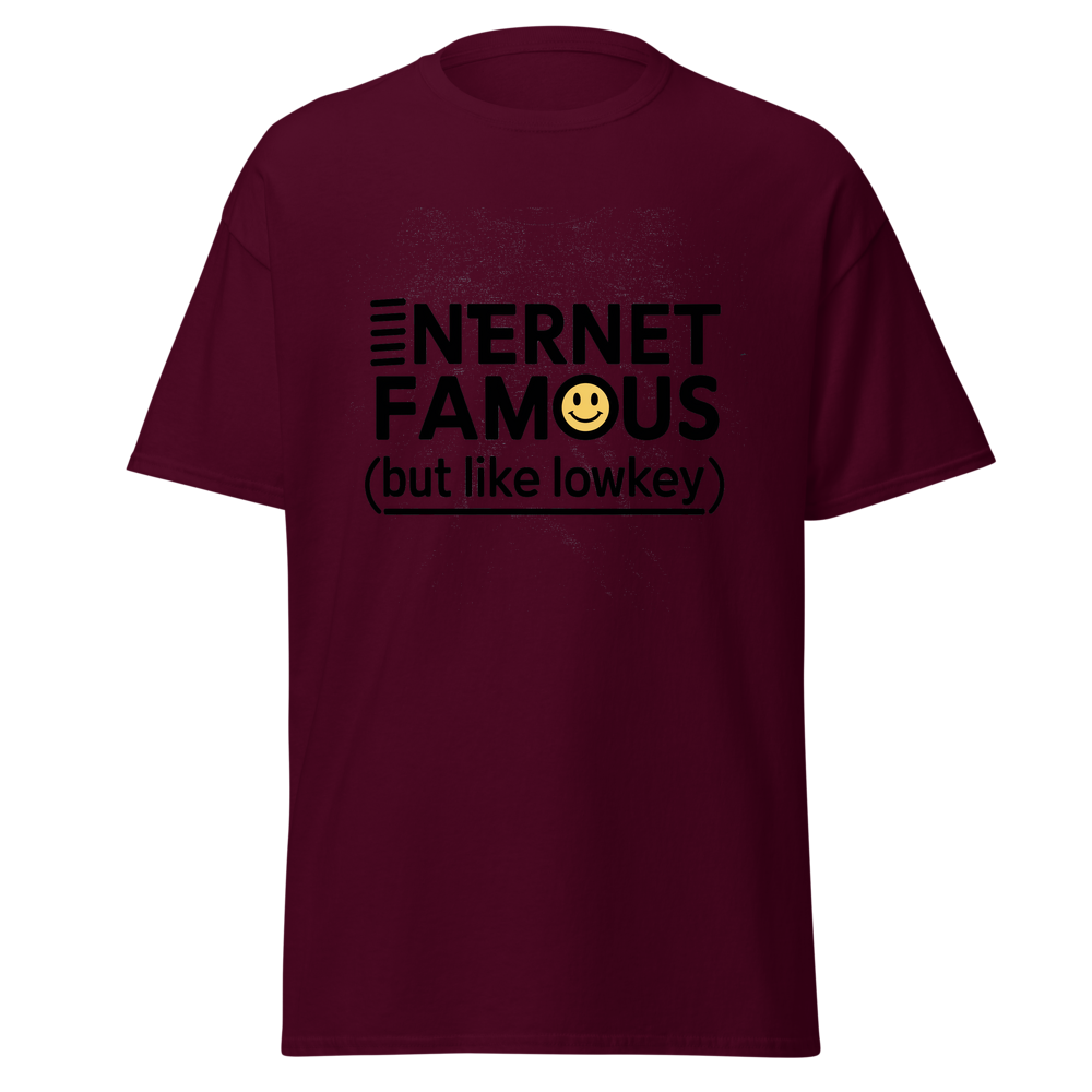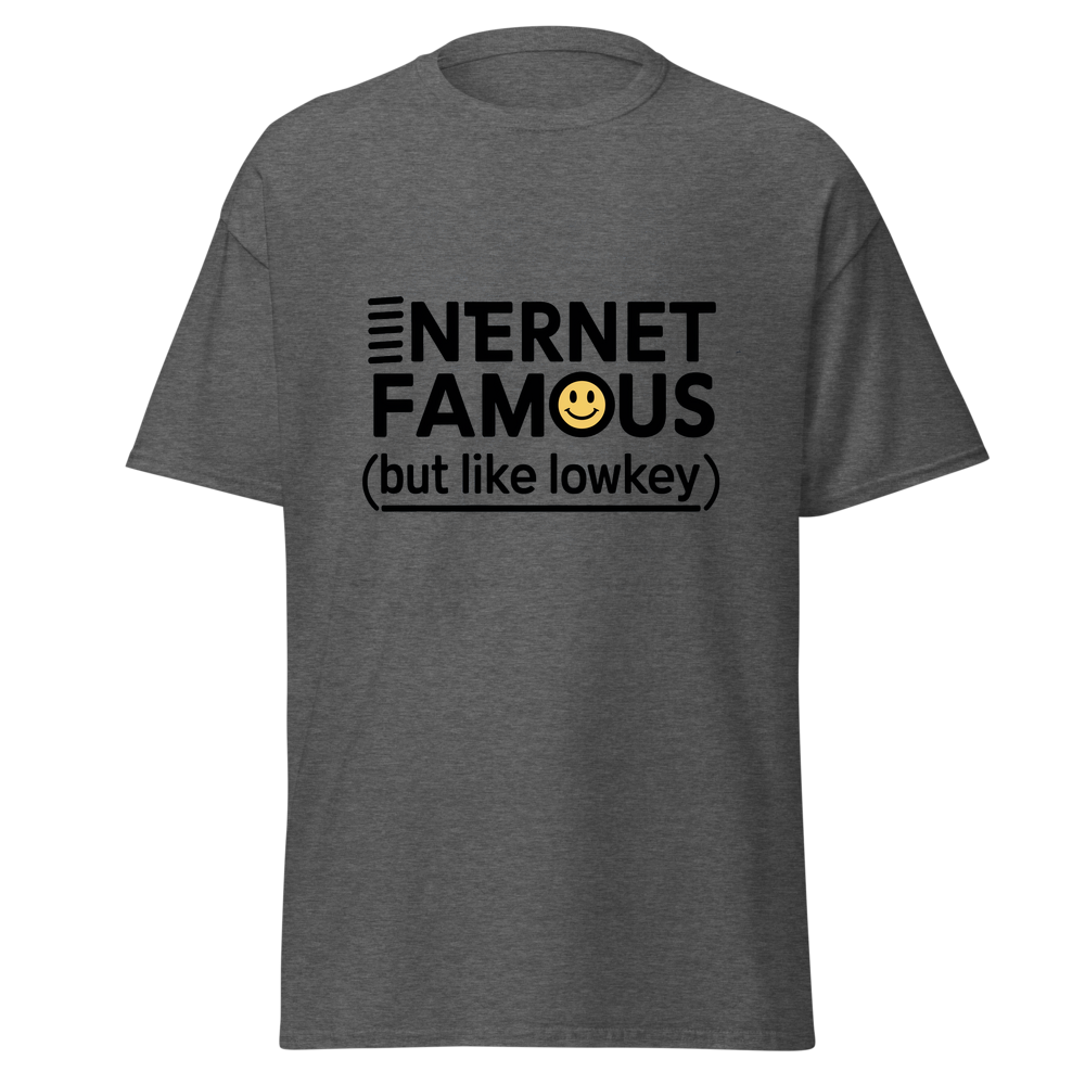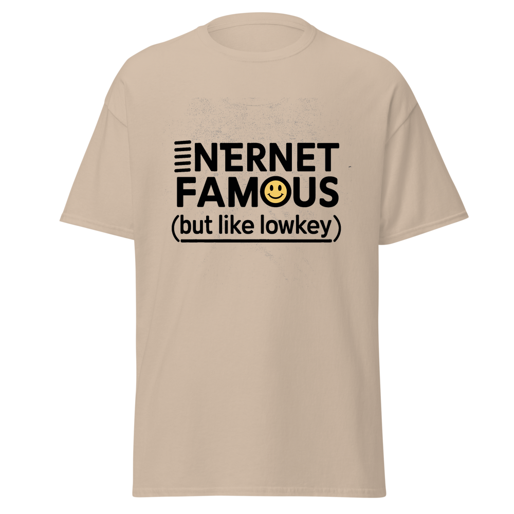 A stylish design featuring a half-hidden smiley face emoji and a WiFi signal icon. Perfect for teens who love a subtle nod to their online fame. Ideal for anyone who enjoys internet culture and wants to keep it low-key.This t-shirt is everything you’ve dreamed of and more. It feels soft and lightweight, with the right amount of stretch. It’s comfortable and flattering for all. 100% combed and ring-spun cotton (Heather colors contain polyester) Fabric weight: 4.2 oz./yd.² (142 g/m²) Pre-shrunk fabric Side-seamed construction Shoulder-to-shoulder taping
