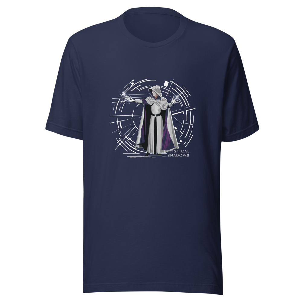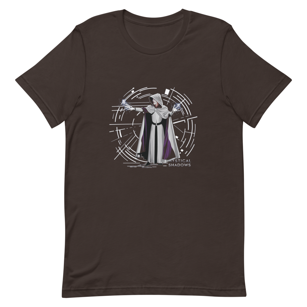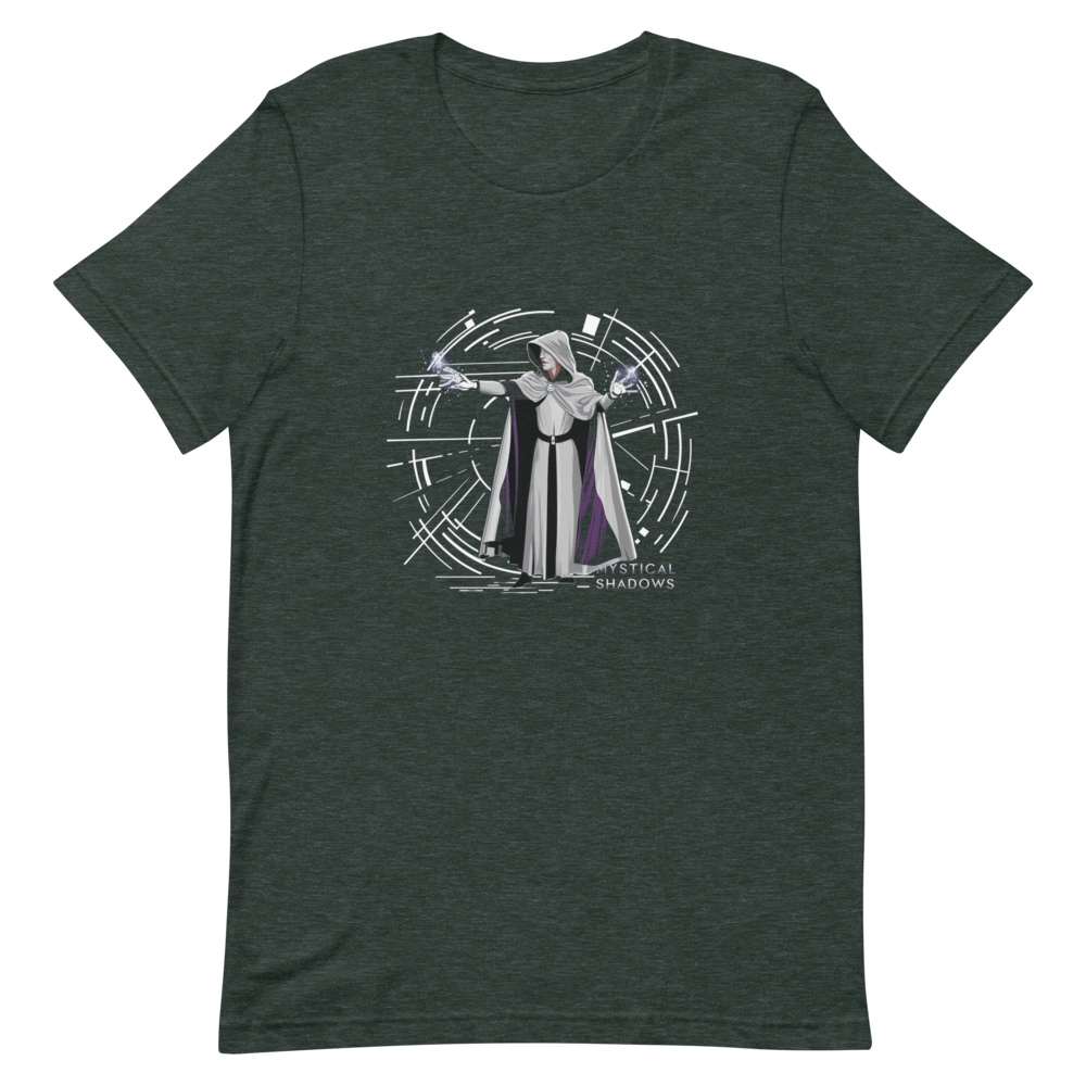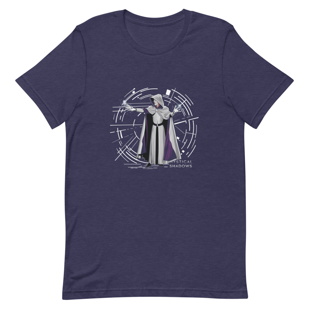 Dive into the mystical world with this captivating design featuring a medieval enchanter in action. Abstract geometric patterns suggest swirling magic and arcane power. Perfect for history buffs and those who appreciate a touch of ancient mysticism in their wardrobe.This t-shirt is everything you’ve dreamed of and more. It feels soft and lightweight, with the right amount of stretch. It’s comfortable and flattering for all. 100% combed and ring-spun cotton (Heather colors contain polyester) Fabric weight: 4.2 oz./yd.² (142 g/m²) Pre-shrunk fabric Side-seamed construction Shoulder-to-shoulder taping
