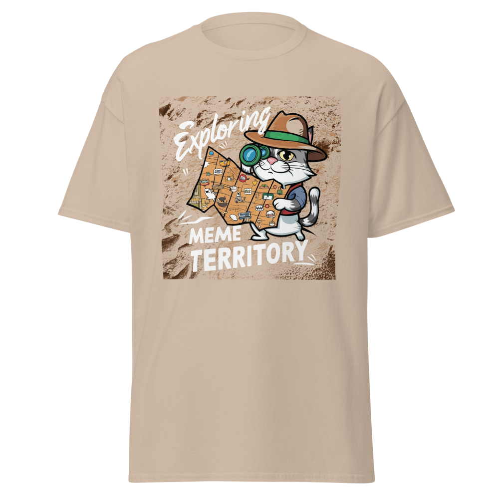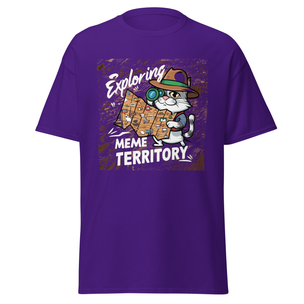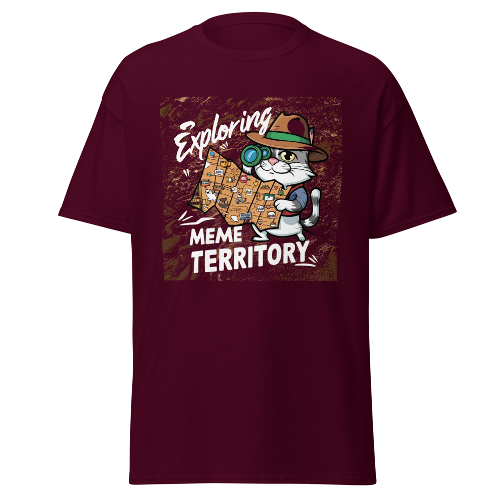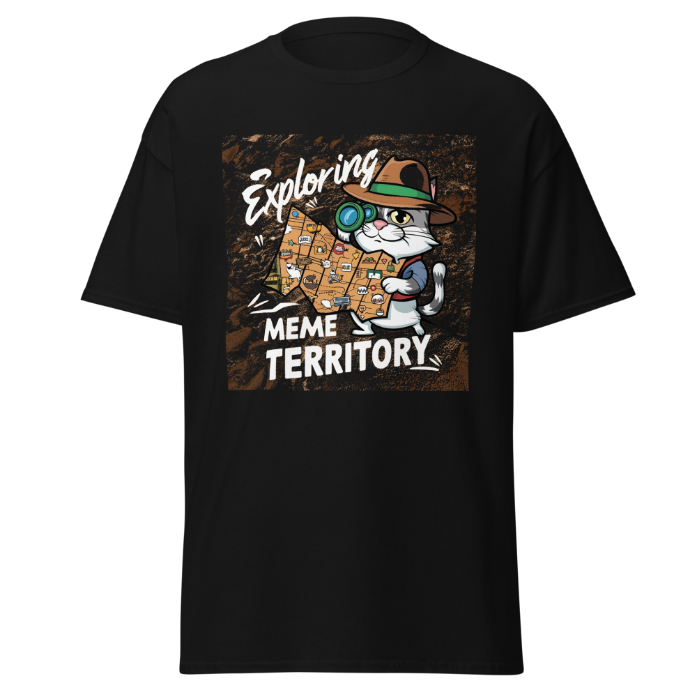 This fun t-shirt features a cartoon cat decked out in explorer gear, equipped with a map full of meme icons and peering through binoculars. Perfect for young adults and cat meme fans.This t-shirt is everything you’ve dreamed of and more. It feels soft and lightweight, with the right amount of stretch. It’s comfortable and flattering for all. 100% combed and ring-spun cotton (Heather colors contain polyester) Fabric weight: 4.2 oz./yd.² (142 g/m²) Pre-shrunk fabric Side-seamed construction Shoulder-to-shoulder taping