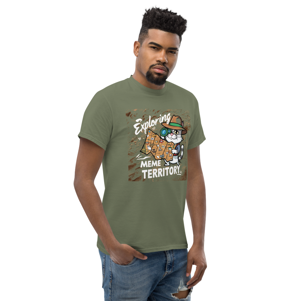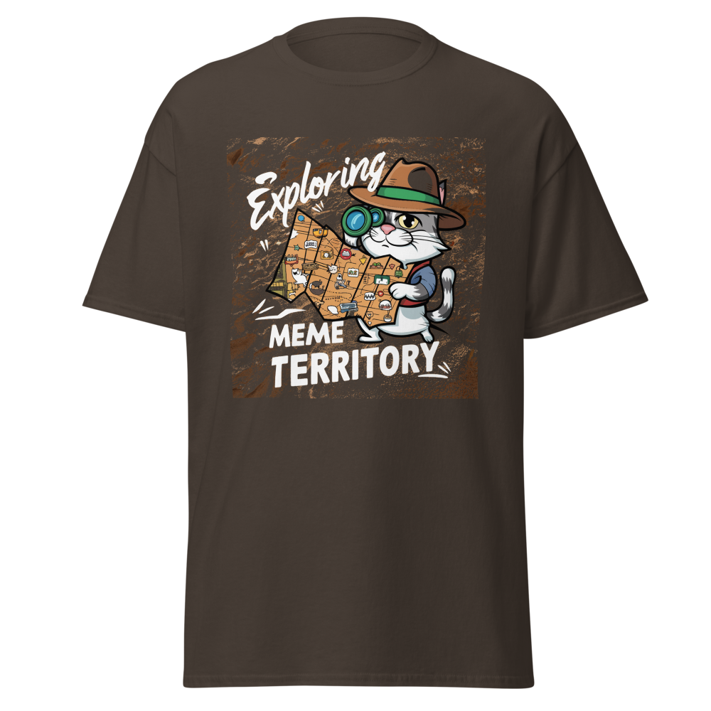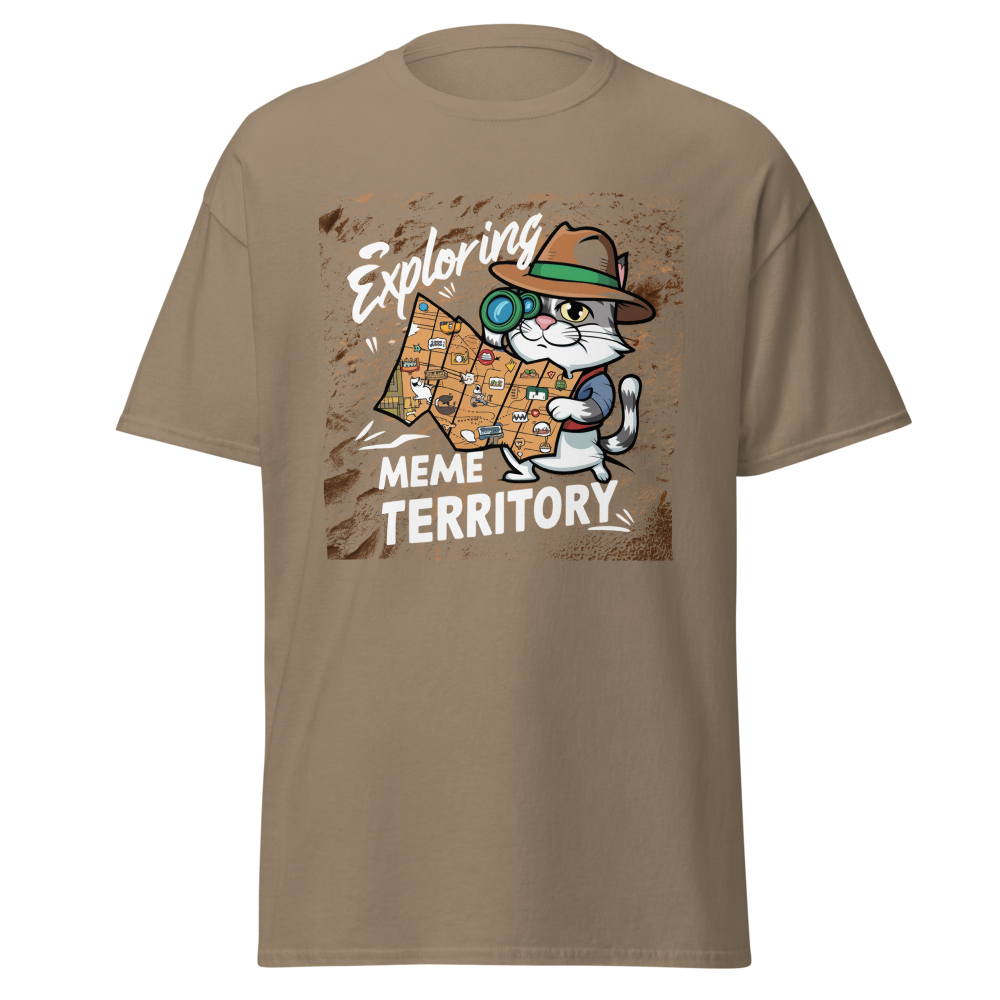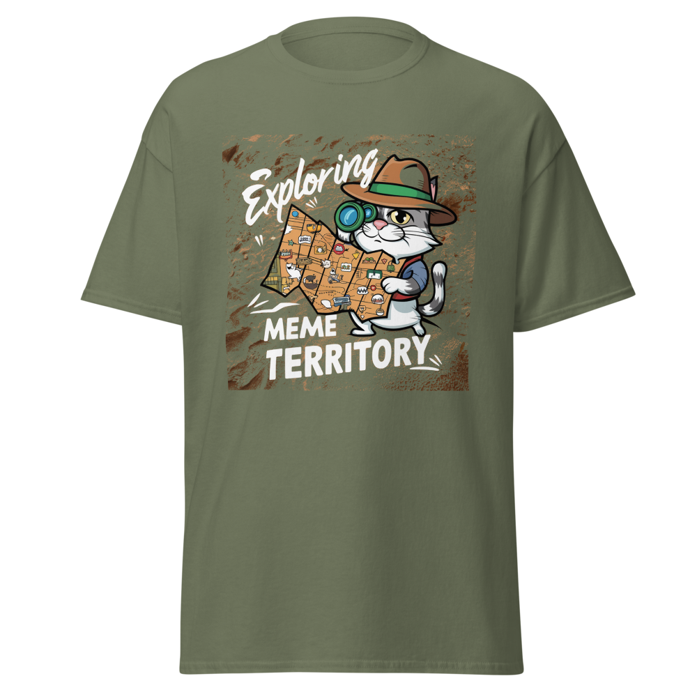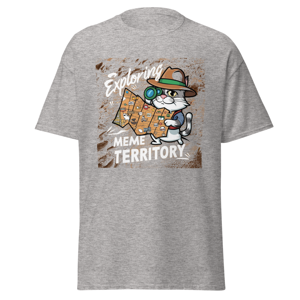 This fun t-shirt features a cartoon cat decked out in explorer gear, equipped with a map full of meme icons and peering through binoculars. Perfect for young adults and cat meme fans.This t-shirt is everything you’ve dreamed of and more. It feels soft and lightweight, with the right amount of stretch. It’s comfortable and flattering for all. 100% combed and ring-spun cotton (Heather colors contain polyester) Fabric weight: 4.2 oz./yd.² (142 g/m²) Pre-shrunk fabric Side-seamed construction Shoulder-to-shoulder taping