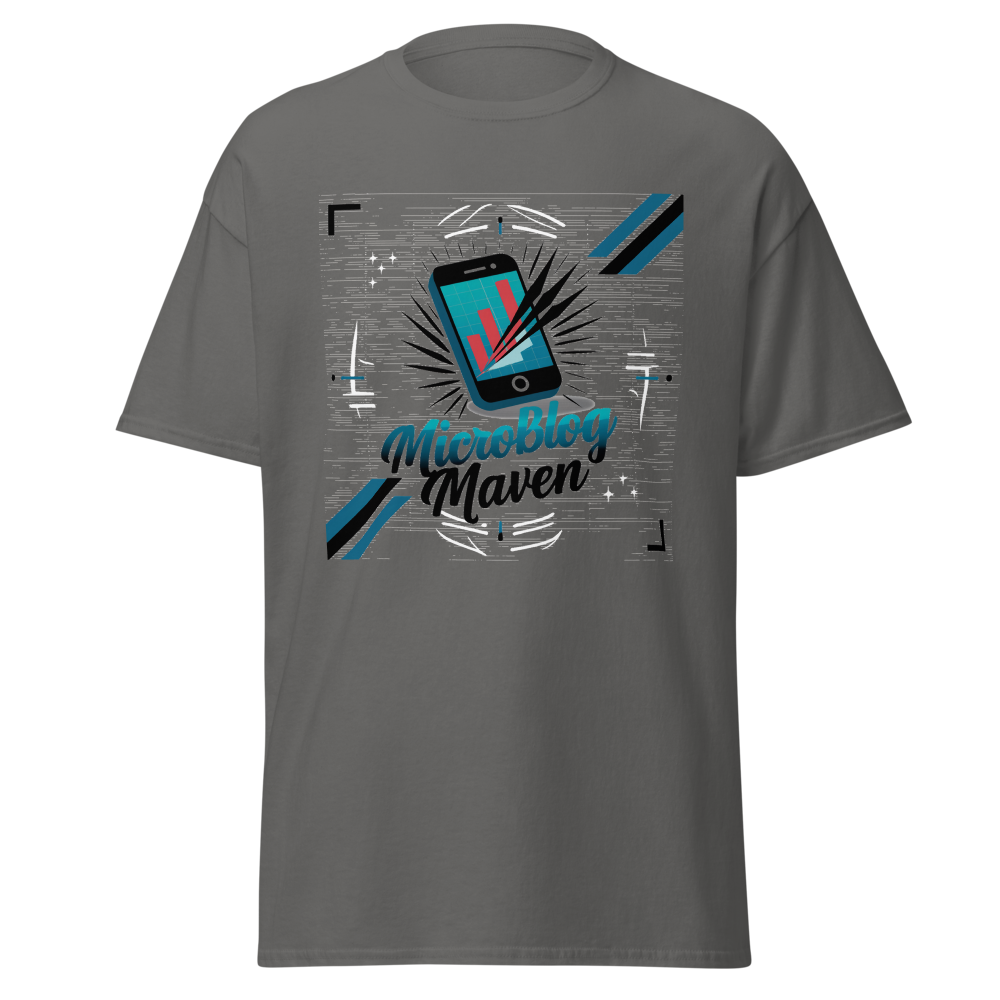 A sleek design featuring a stylized smartphone with dynamic graphs and sharp, abstract lines radiating out. Ideal for those who live for microblogging and the digital lifestyle. Perfect for young adults, bloggers, and anyone with a passion for staying connected.This t-shirt is everything you’ve dreamed of and more. It feels soft and lightweight, with the right amount of stretch. It’s comfortable and flattering for all. 100% combed and ring-spun cotton (Heather colors contain polyester) Fabric weight: 4.2 oz./yd.² (142 g/m²) Pre-shrunk fabric Side-seamed construction Shoulder-to-shoulder taping