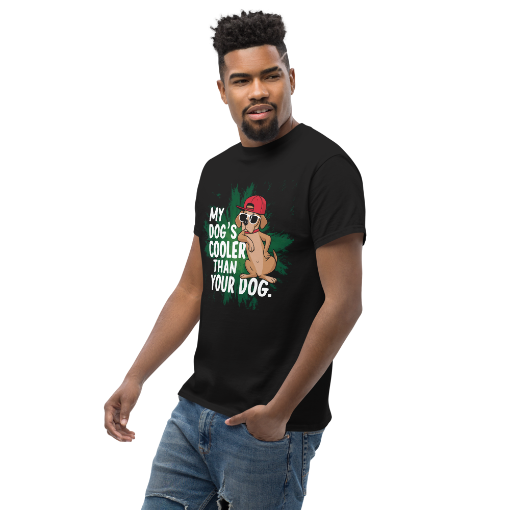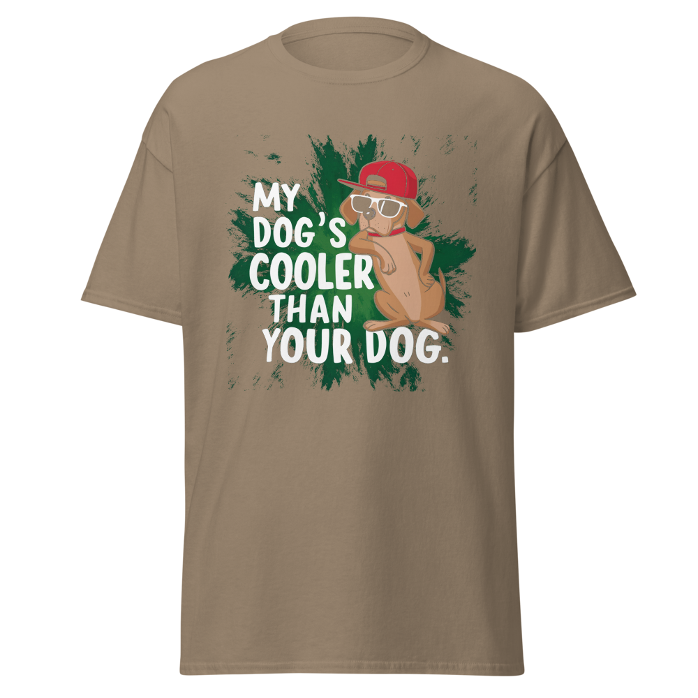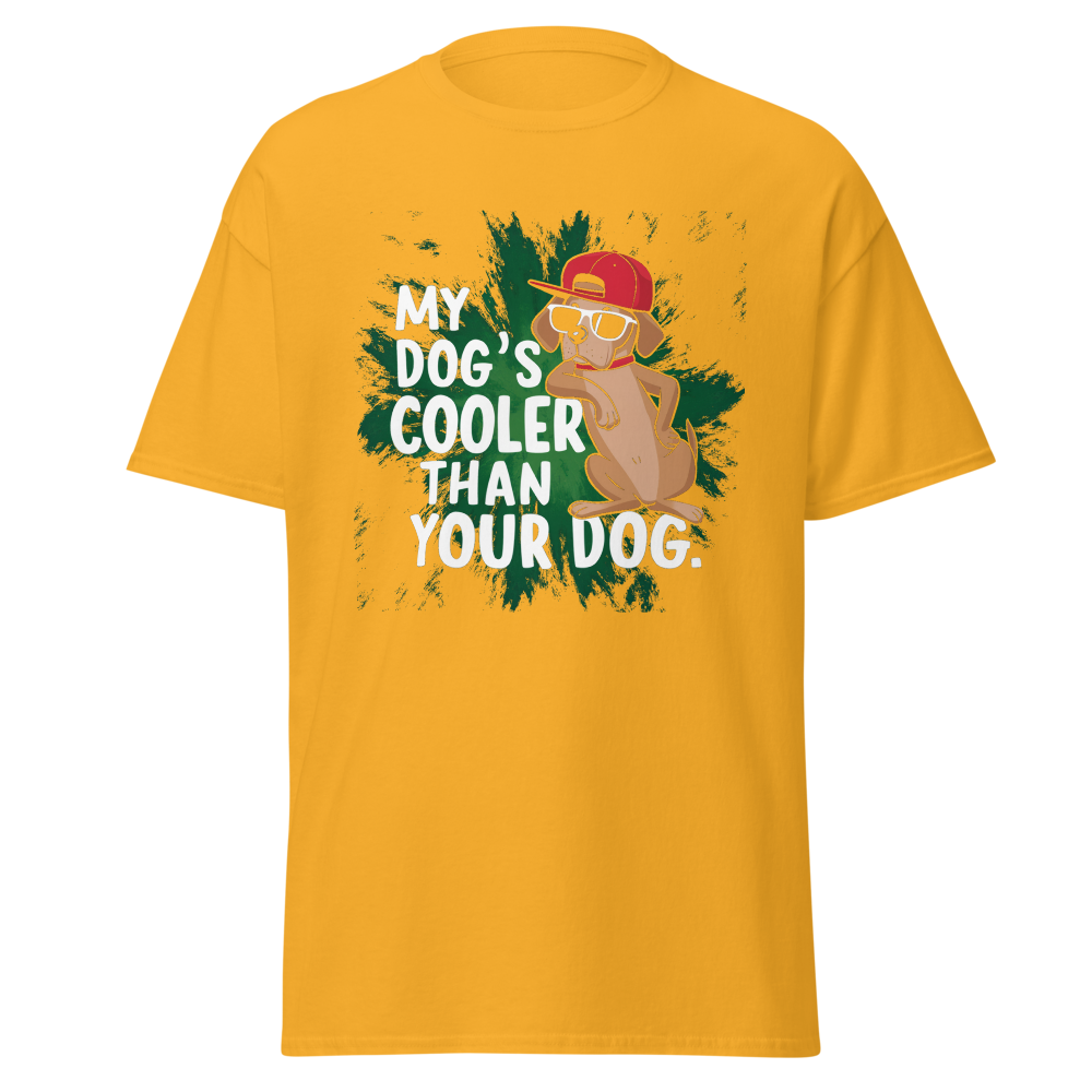 This fun t-shirt features a cartoon dog sporting a cap and sunglasses, leaning casually against the design. Perfect for adults who are proud pet owners and love a bit of humor in their wardrobe.This t-shirt is everything you’ve dreamed of and more. It feels soft and lightweight, with the right amount of stretch. It’s comfortable and flattering for all. 100% combed and ring-spun cotton (Heather colors contain polyester) Fabric weight: 4.2 oz./yd.² (142 g/m²) Pre-shrunk fabric Side-seamed construction Shoulder-to-shoulder taping