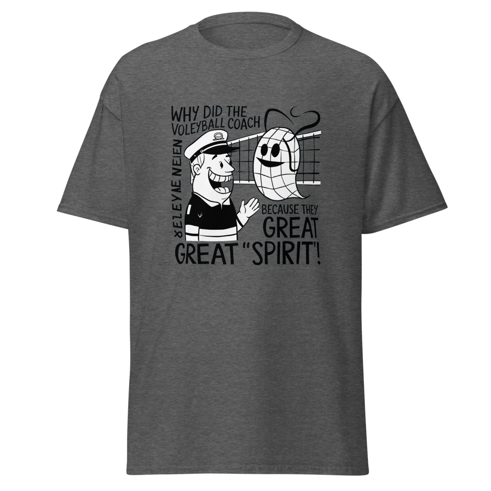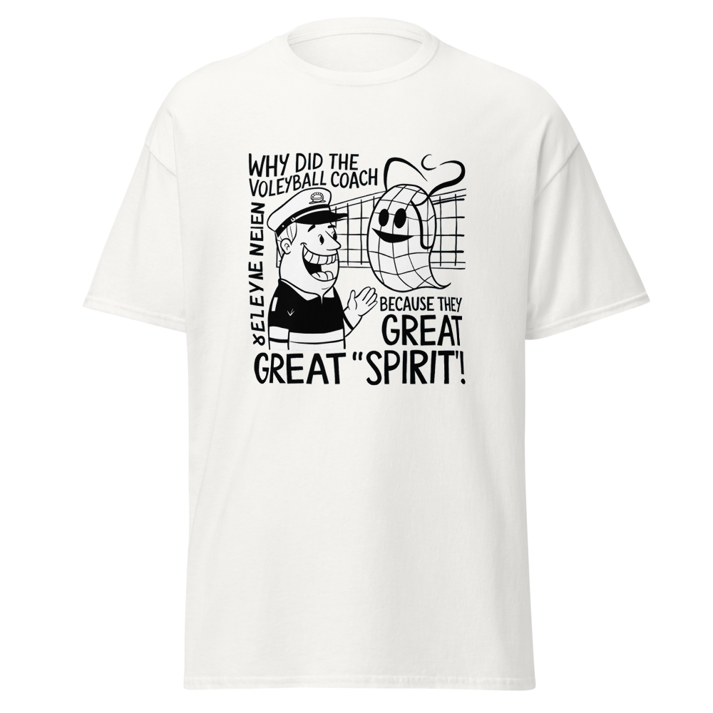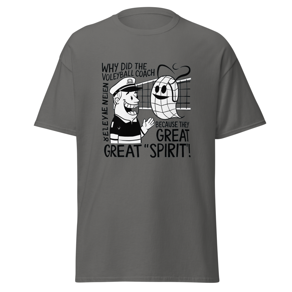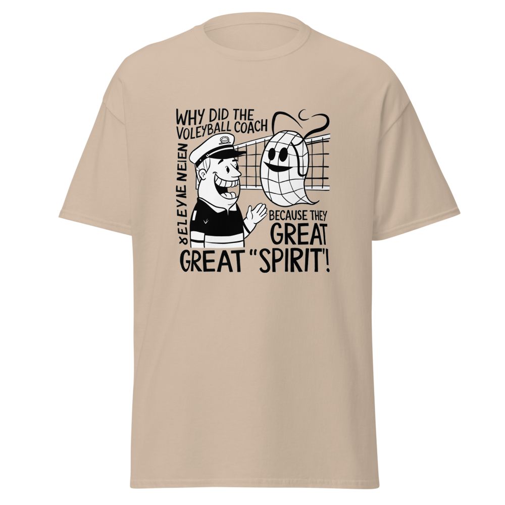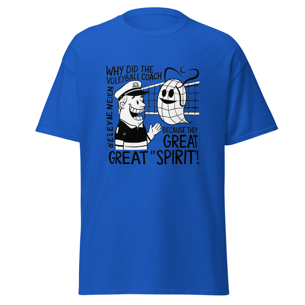 A fun and spooky twist for young volleyball fans! This t-shirt features a playful cartoon of a volleyball coach chatting with a ghost on the net. Perfect for kids who love sports and a good laugh.This t-shirt is everything you’ve dreamed of and more. It feels soft and lightweight, with the right amount of stretch. It’s comfortable and flattering for all. 100% combed and ring-spun cotton (Heather colors contain polyester) Fabric weight: 4.2 oz./yd.² (142 g/m²) Pre-shrunk fabric Side-seamed construction Shoulder-to-shoulder taping