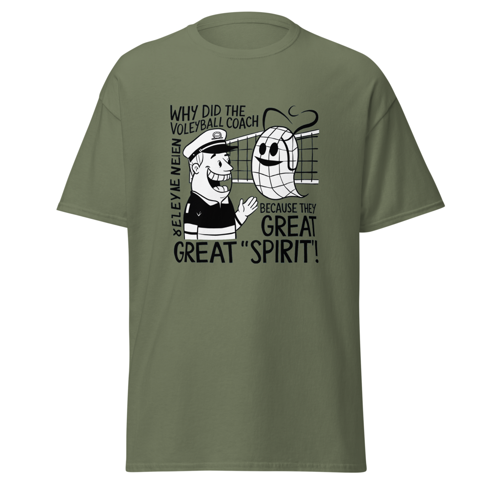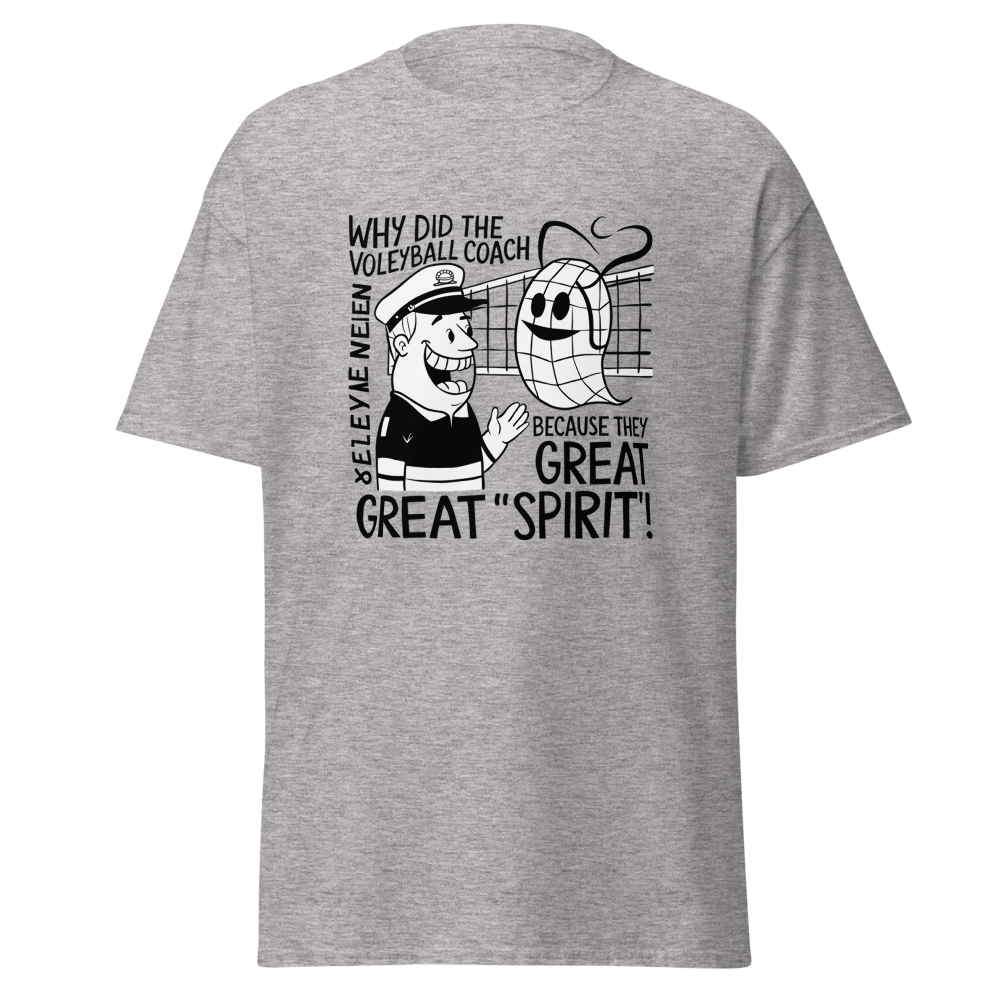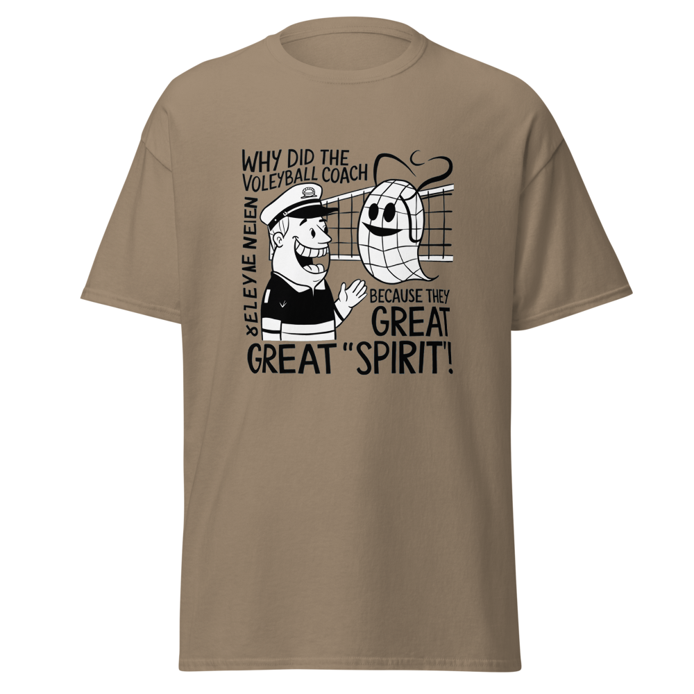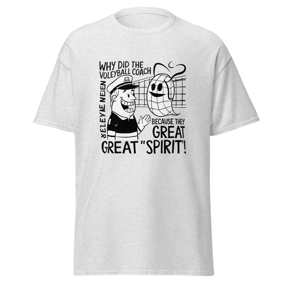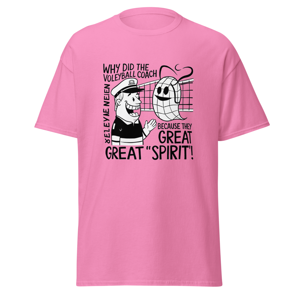 A fun and spooky twist for young volleyball fans! This t-shirt features a playful cartoon of a volleyball coach chatting with a ghost on the net. Perfect for kids who love sports and a good laugh.This t-shirt is everything you’ve dreamed of and more. It feels soft and lightweight, with the right amount of stretch. It’s comfortable and flattering for all. 100% combed and ring-spun cotton (Heather colors contain polyester) Fabric weight: 4.2 oz./yd.² (142 g/m²) Pre-shrunk fabric Side-seamed construction Shoulder-to-shoulder taping