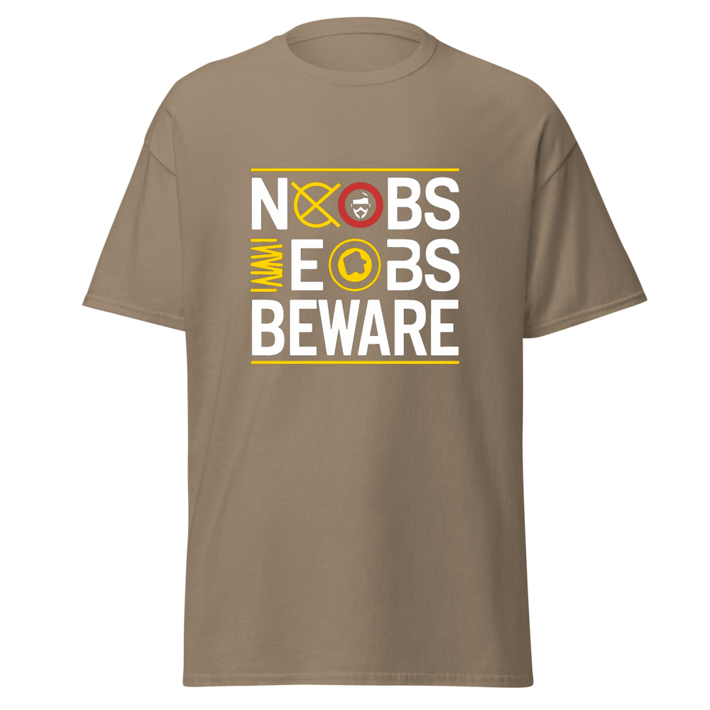 This t-shirt features a bold warning sign with a noob symbol crossed out alongside a confident pro player avatar. Ideal for teens and video gamers who want to show off their skills in style.This t-shirt is everything you’ve dreamed of and more. It feels soft and lightweight, with the right amount of stretch. It’s comfortable and flattering for all. 100% combed and ring-spun cotton (Heather colors contain polyester) Fabric weight: 4.2 oz./yd.² (142 g/m²) Pre-shrunk fabric Side-seamed construction Shoulder-to-shoulder taping