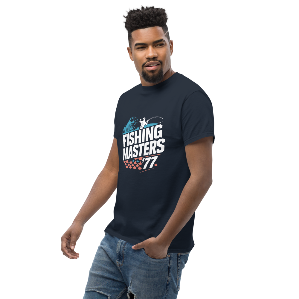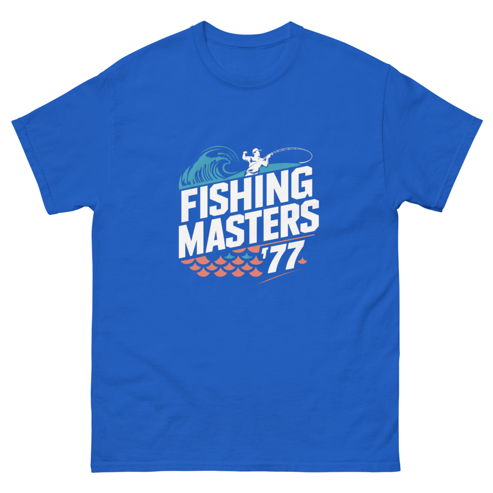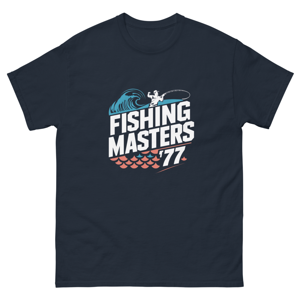 This vintage-inspired tee showcases an angler reeling in a catch, framed by abstract waves and geometric fish scales. Perfect for fishing enthusiasts or anyone who loves a retro sports vibe.This t-shirt is everything you’ve dreamed of and more. It feels soft and lightweight, with the right amount of stretch. It’s comfortable and flattering for all. 100% combed and ring-spun cotton (Heather colors contain polyester) Fabric weight: 4.2 oz./yd.² (142 g/m²) Pre-shrunk fabric Side-seamed construction Shoulder-to-shoulder taping