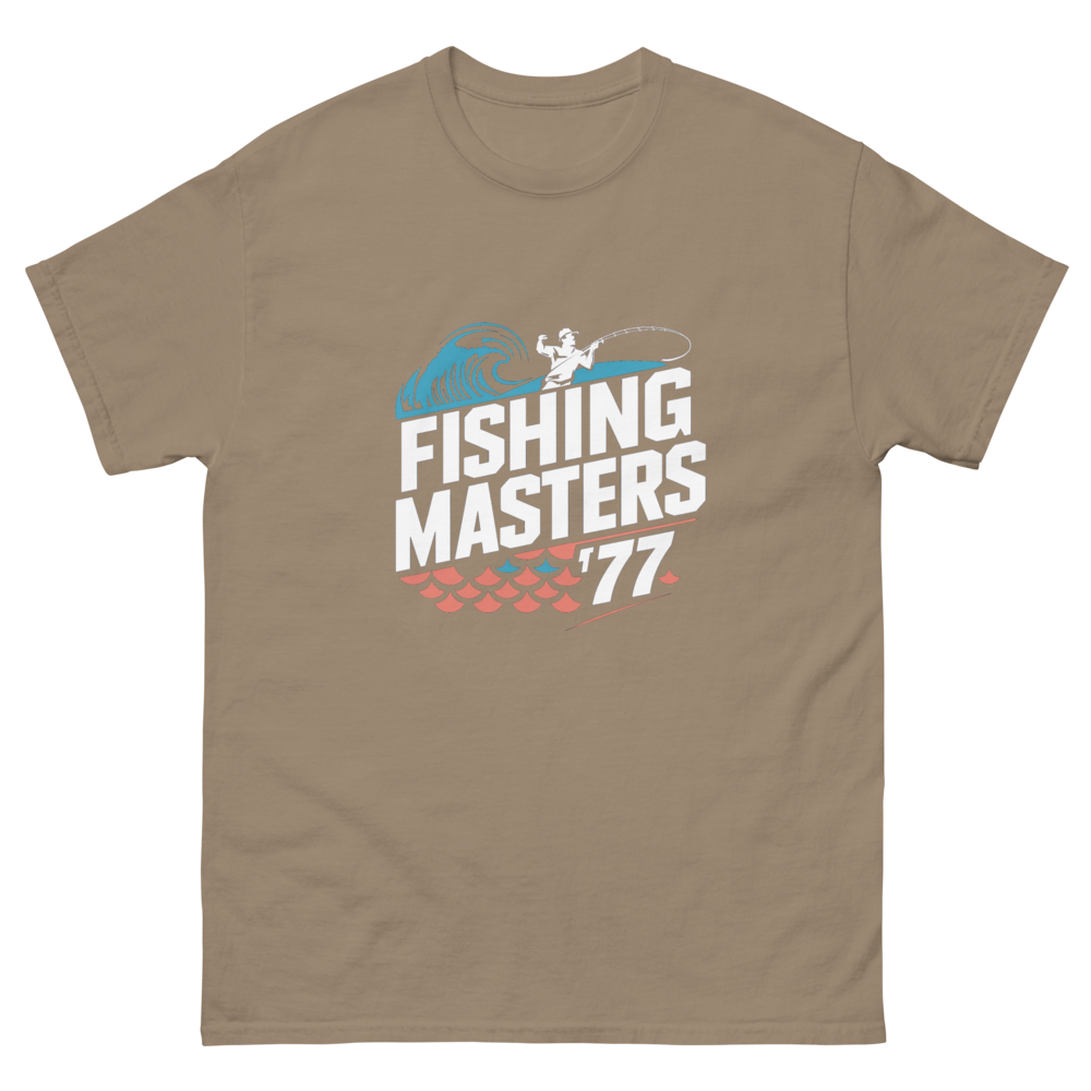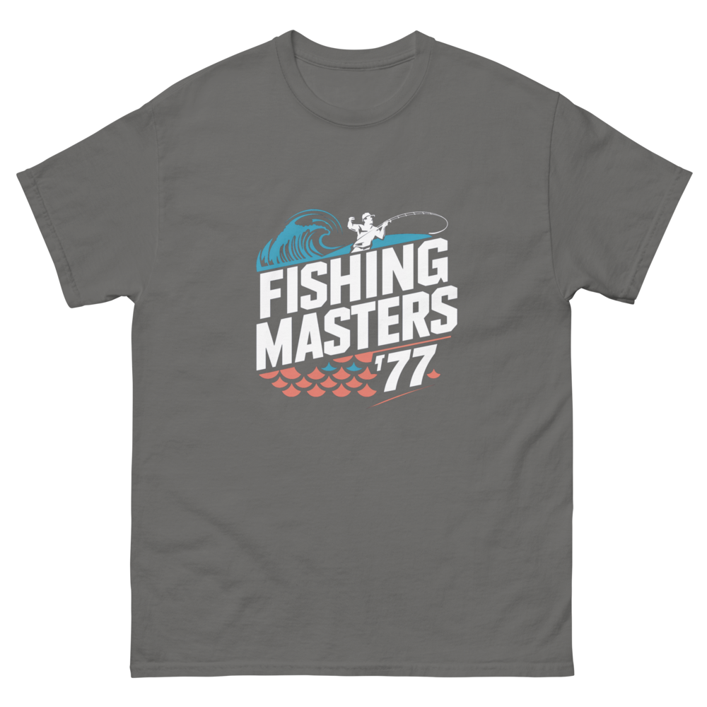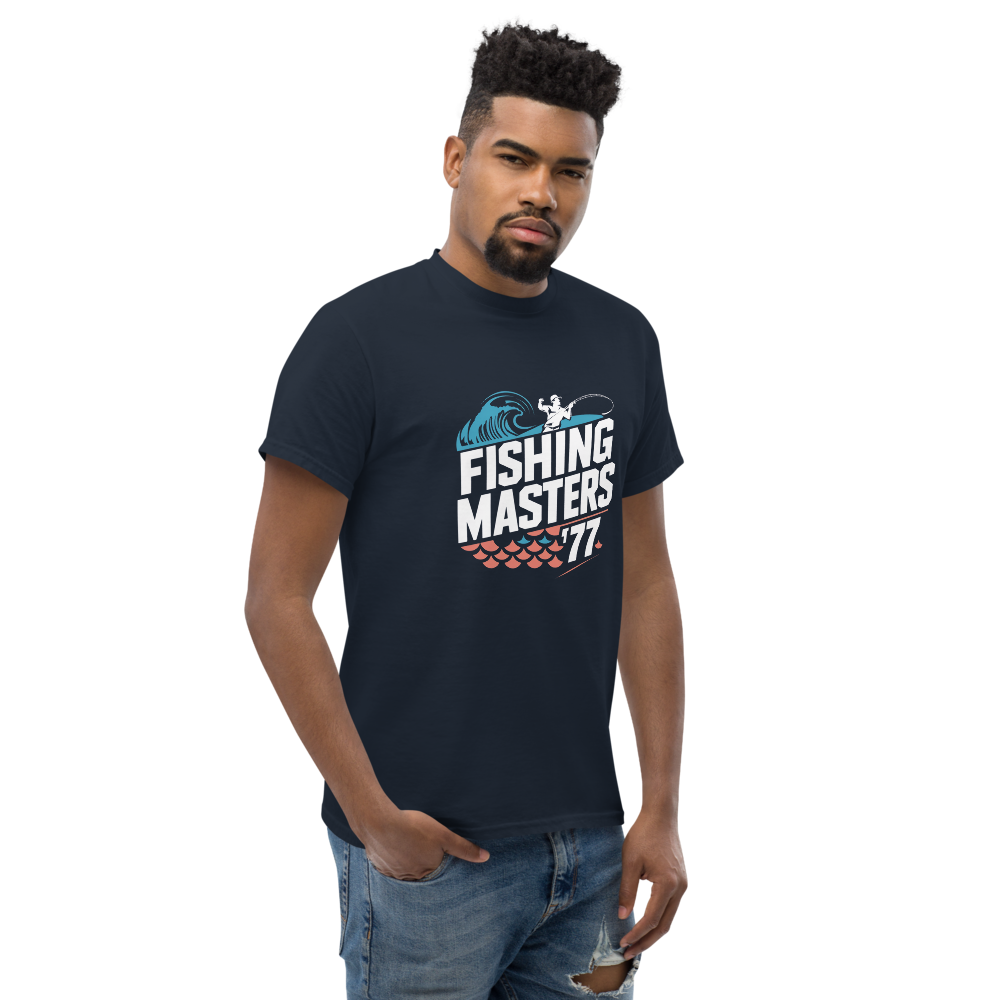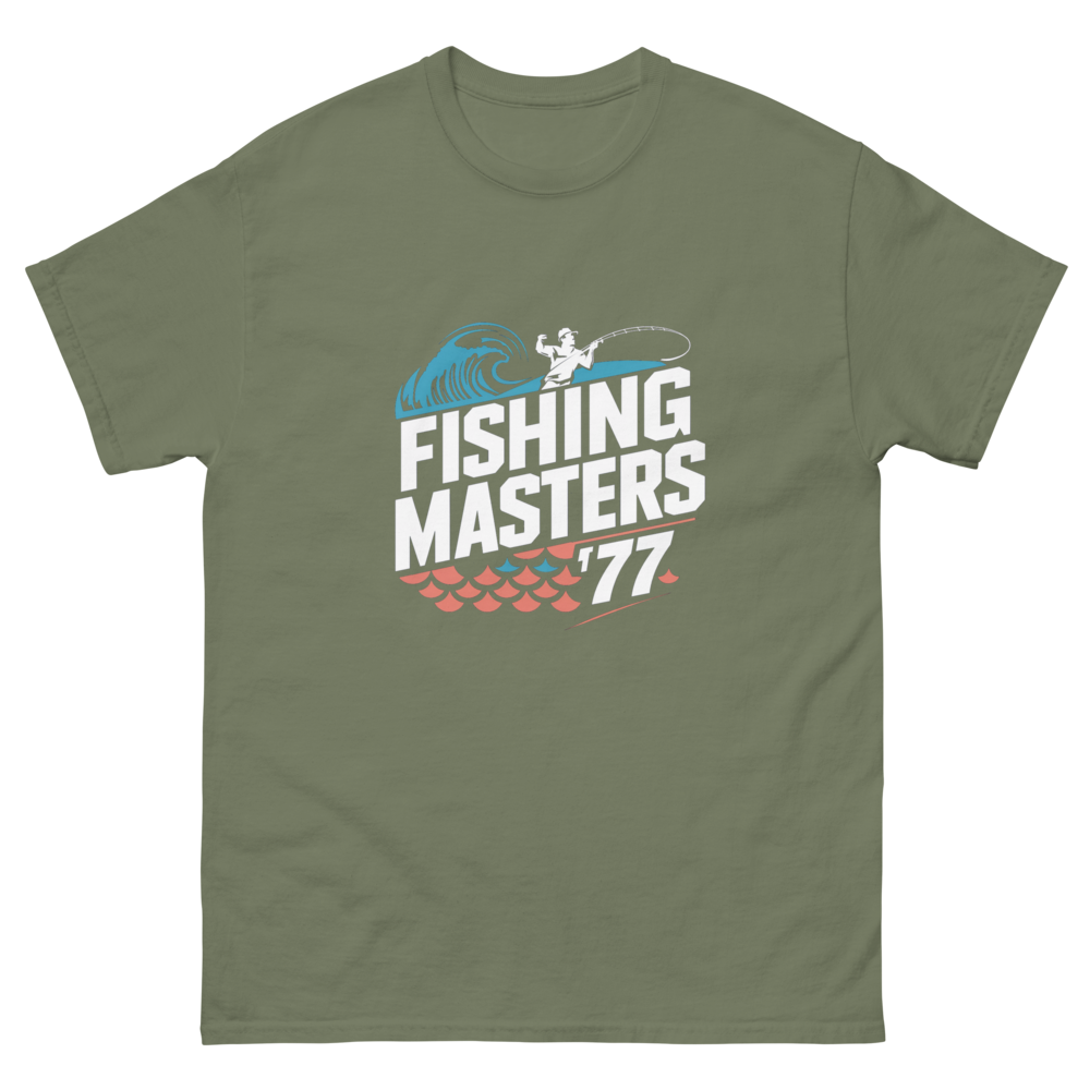 This vintage-inspired tee showcases an angler reeling in a catch, framed by abstract waves and geometric fish scales. Perfect for fishing enthusiasts or anyone who loves a retro sports vibe.This t-shirt is everything you’ve dreamed of and more. It feels soft and lightweight, with the right amount of stretch. It’s comfortable and flattering for all. 100% combed and ring-spun cotton (Heather colors contain polyester) Fabric weight: 4.2 oz./yd.² (142 g/m²) Pre-shrunk fabric Side-seamed construction Shoulder-to-shoulder taping