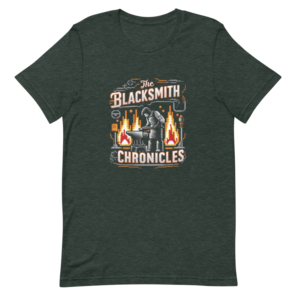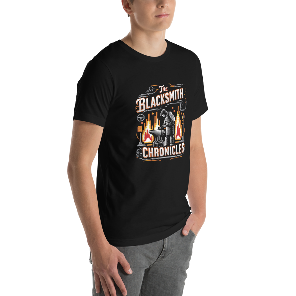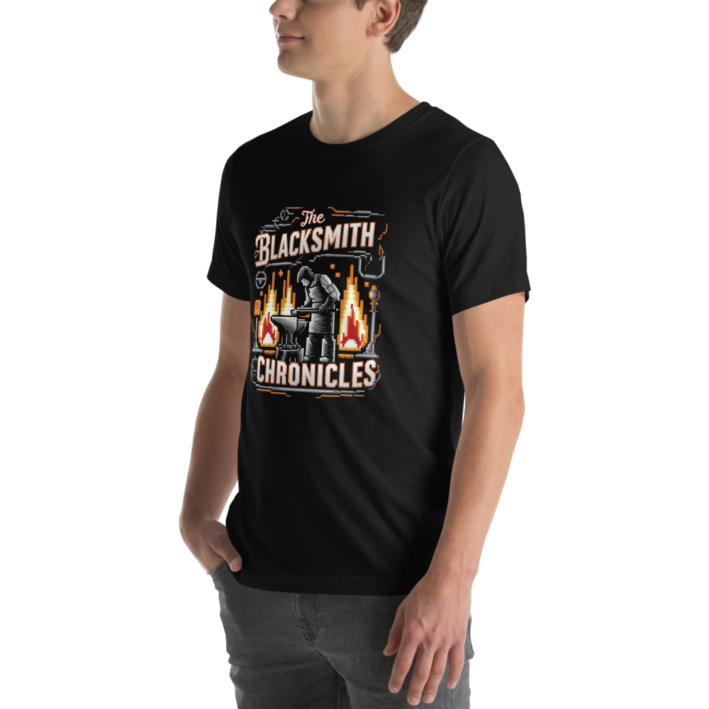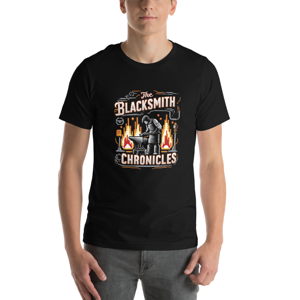 Embrace the art of craftsmanship with this unique design featuring a pixelated blacksmith hard at work. Set against the glow of pixel fires and an anvil, it’s a nod to historical traditions with a modern, pixel-inspired twist. Perfect for historical reenactment fans and anyone who appreciates the timeless trade of blacksmithing.This t-shirt is everything you’ve dreamed of and more. It feels soft and lightweight, with the right amount of stretch. It’s comfortable and flattering for all. 100% combed and ring-spun cotton (Heather colors contain polyester) Fabric weight: 4.2 oz./yd.² (142 g/m²) Pre-shrunk fabric Side-seamed construction Shoulder-to-shoulder taping