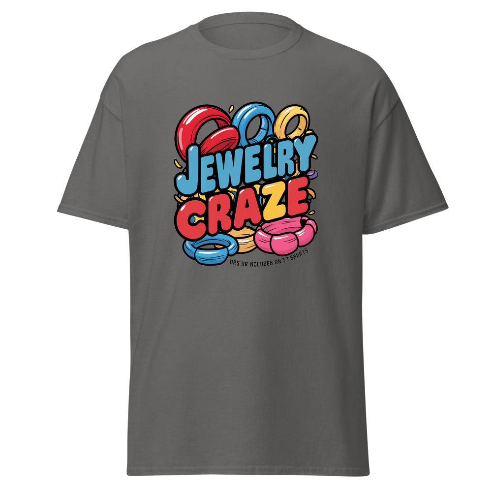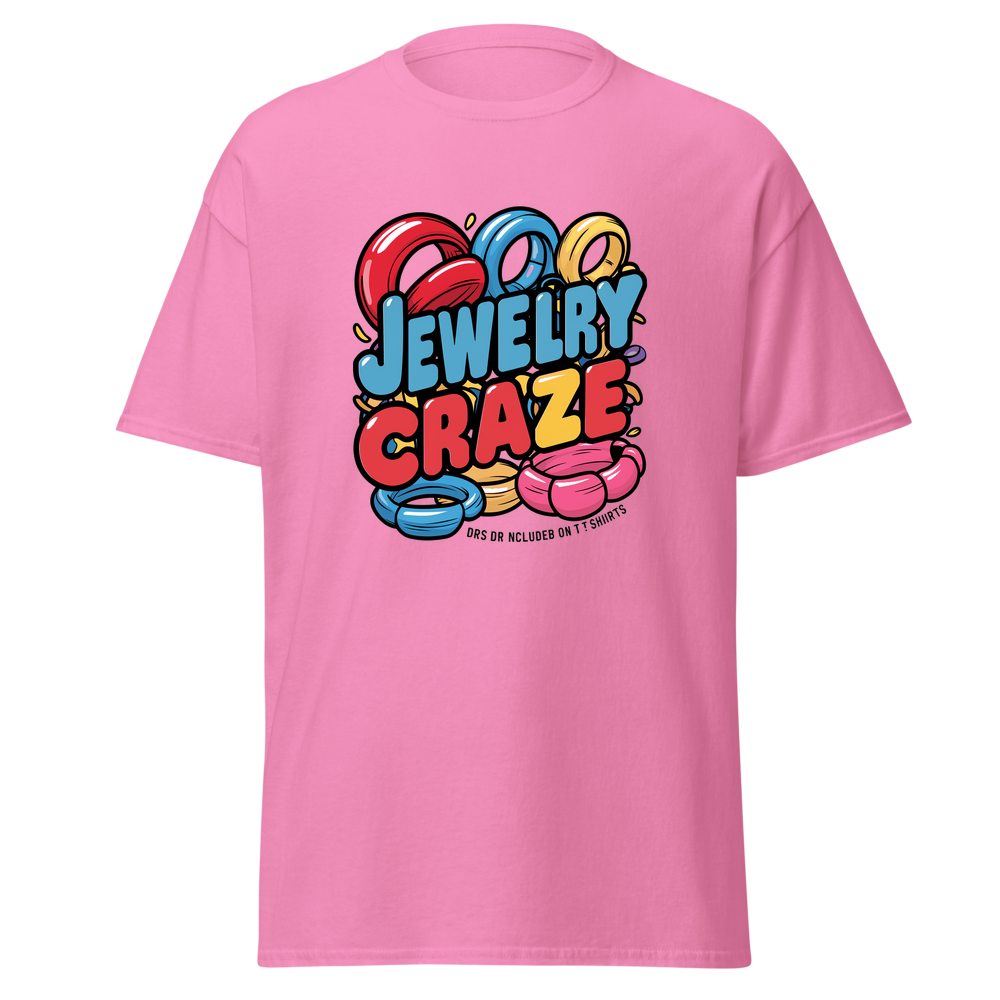Bright and whimsical illustration of colorful plastic jewelry pieces, including rings and necklaces. Perfect for sparking nostalgia and adding a fun, playful vibe to any outfit.This t-shirt is everything you’ve dreamed of and more. It feels soft and lightweight, with the right amount of stretch. It’s comfortable and flattering for all. 100% combed and ring-spun cotton (Heather colors contain polyester) Fabric weight: 4.2 oz./yd.² (142 g/m²) Pre-shrunk fabric Side-seamed construction Shoulder-to-shoulder taping